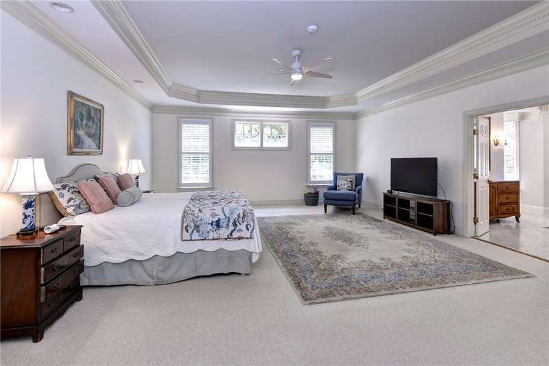Live and enjoy the good life in this stately golf-front, brick home in wonderful Governor's Land. Fine craftsmanship, generous room sizes, soaring ceilings and luxurious materials will impress the most discriminating buyers. The kitchen is the heart of the home and can only be described as MAGNIFICENT! It is a gourmand's dream and has ample marble counter space, farm sink, walnut-topped island, breakfast bar, eat-in area, luxury appliances (Cove, Wolf, Sub Zero), pantry w 2nd Sub Zero and is open to a keeping room w fireplace. Main floor primary bedroom is the perfect retreat. Primary bath equipped with soaking tub, frameless glass shower, water closet with bidet, heated floors and towel bar. Butlers pantry, wet bar with wine cooler, temperature-controlled wine storage in lower level, plus flex spaces and 4 additional bedrooms upstairs. Stand-by generator, golf cart storage, encapsulated crawlspace, Navien hot water heater, whole house surge protector, security system and more.