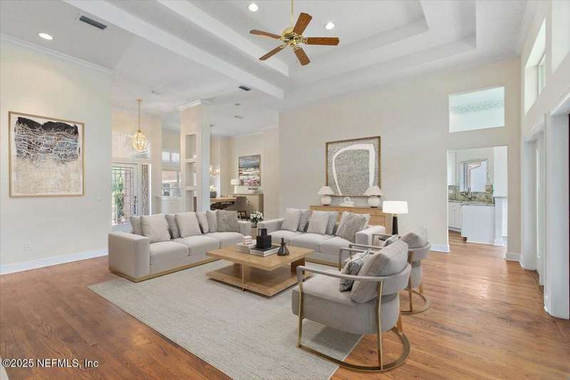 Wow! Beautiful brick home in Deercreek Country Club. Sensational view of lake and golf course upon entering the Living Room with its high vaulted ceiling, wood floors & fireplace. Dining Room offers a touch of elegance with its chandelier and architectural details. Kitchen has 42'' white cabinets, a center island w/ prep sink, & eat-in Breakfast Nook with bay window. Primary Bedroom has 3 large walk-in closets, a spacious Bath, and a huge Flex space overlooking the lake and golf course. Oversized 3 car garage (seller converted single car to a workroom yet convert easily converted back). Two Bedrooms share Jack & Jill Bath with new shower. The 4th Bedroom is the perfect place for an Office and/or a Guest Room with its built-in Murphy Bed. New A/C, garage door motor, gutter guards, shower in hall bath. $5,000 credit towards membership initiation fee in Deercreek County Club included. Convenient location to downtown, Mayo Clinic,, the Beaches and so much more.