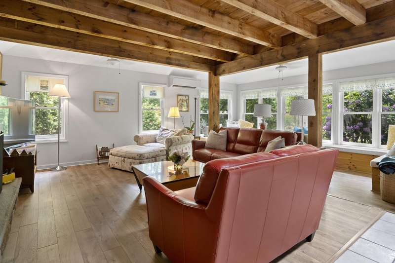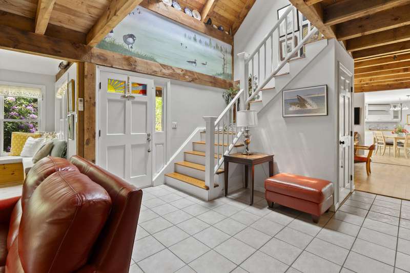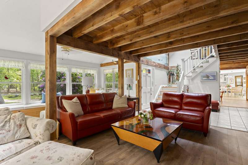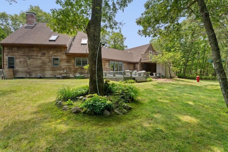 Thoughtfully designed post-and-beam home that blends character with modern comfort and flexible living in Tower Ridge. The open-concept main floor features spacious gathering areas, while the finished basement offers a quiet retreat for work, relaxation, or play. The outdoor living space is just as inviting, with an oversized deck overlooking mature plantings and a generous side yard-perfect for lawn games or the future addition of a pool. The attached two-car garage provides convenience and ample storage space. Located just off the bike path, this home offers easy access to downtown Oak Bluffs, Farm Neck -with its picturesque golf course, tennis courts, and on-site cafand all Down Island amenities, making it perfectly suited for both seasonal getaways and year-round living.