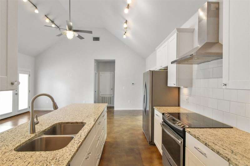 This beautiful 2 bed/2 bath home boasts beautiful stained concrete flooring throughout, with no carpet in sight. It offers a spacious covered porch and walkway, brilliant lighting, and high ceilings with unique storage options. The kitchen is equipped with stainless steel appliances and granite countertops that complement the elegant cabinetry. A washer/dryer unit is included. Located within walking distance to Lake Austin community park, this home is surrounded by stunning scenery. The Apache Shores community provides outstanding amenities, including Lake Austin access, and hiking/biking trails. For a small yearly fee, you also have access to a boat ramp, community swimming pool, and multiple sports courts including a soccer field, 18-hole disc golf course, volleyball, basketball, and tennis courts. The home is conveniently close to Lakeway’s many shops and restaurants, and it falls within the prestigious Lake Travis Independent School District.