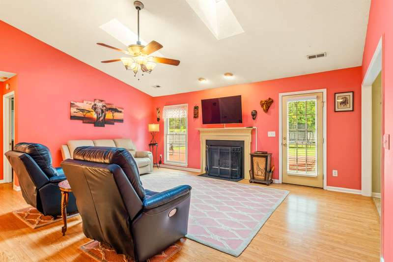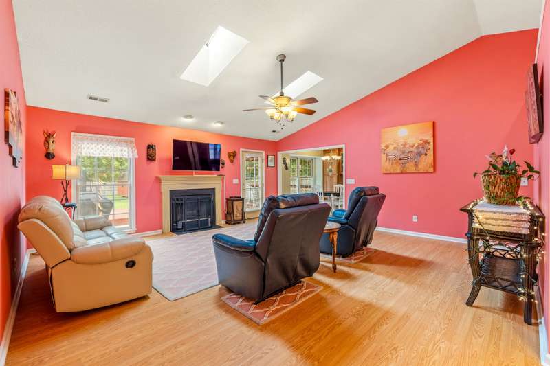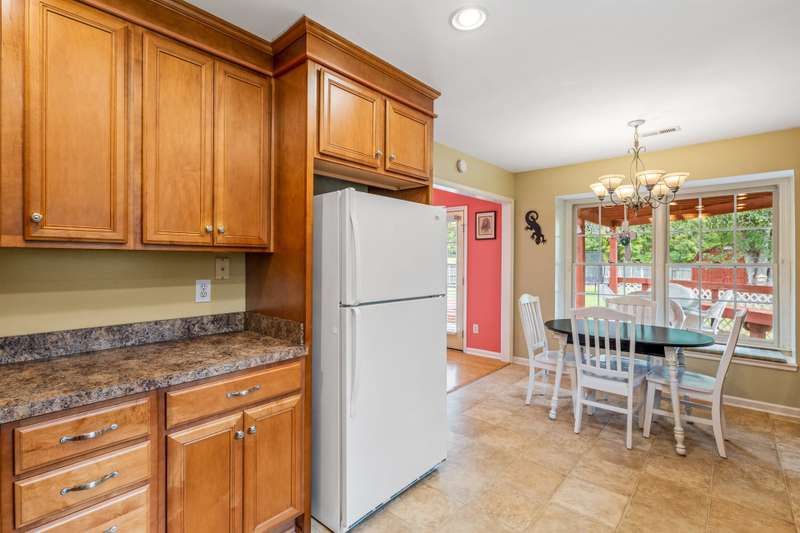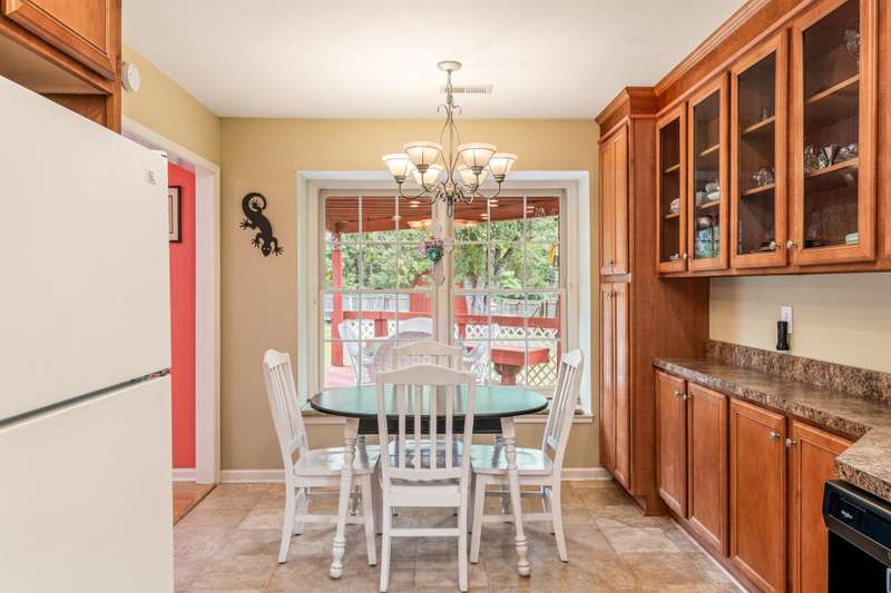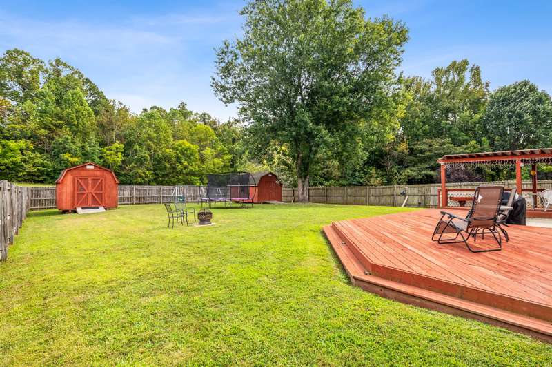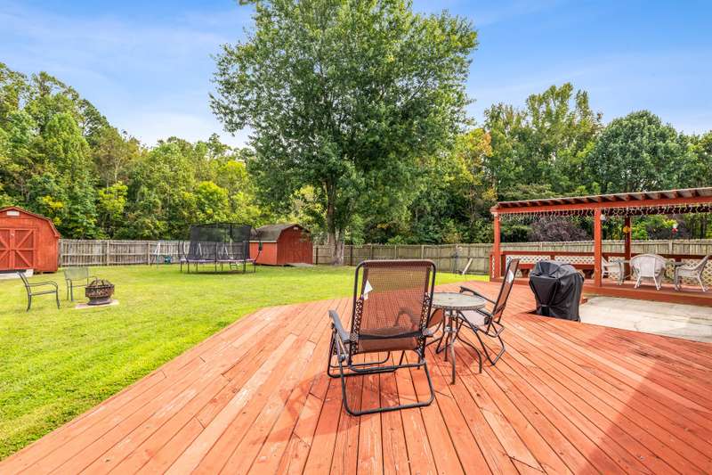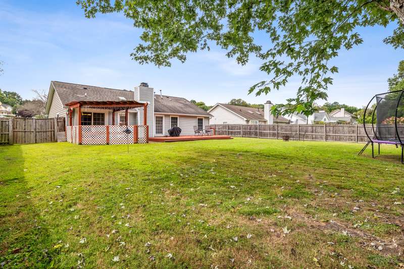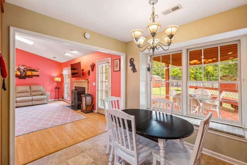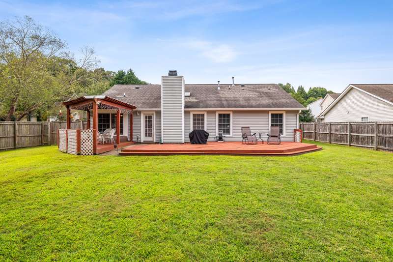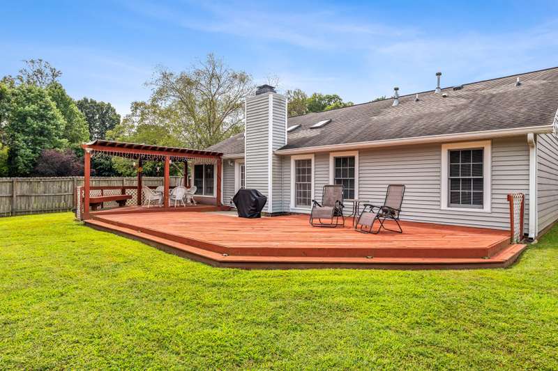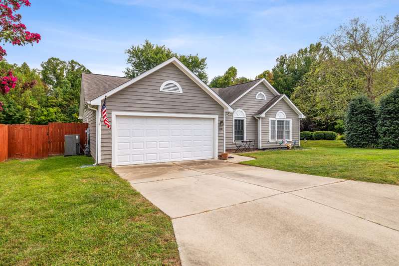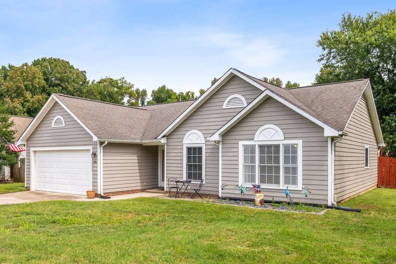 Here's the 3 bedroom, 2 bath ranch WITH a GARAGE for UNDER $300k that you've been looking for with so many terrific features! Amazing location near popular New Garden and Battleground shopping with a level backyard that backs up to woods. Central great room with vaulted ceiling and skylights, and a remodeled cook's kitchen with tons of cabinets and countertop space. Charming window seat in dining area with view of covered porch. Split bedroom plan offers privacy for owners and a primary suite with vaulted ceiling, double closets, double sink vanity and walk in shower. The backyard is perfect for fun and outdoor living with ample covered and open deck space overlooking the fenced backyard. 2022 AC, 2023 gas water heater. Two storage sheds and play equipment convey, and refrigerator, washer & dryer convey with acceptable offer. Zoned for new Claxton Elementary School. Pre-inspected and priced to SELL for new owners to give this great home their own personal touch.