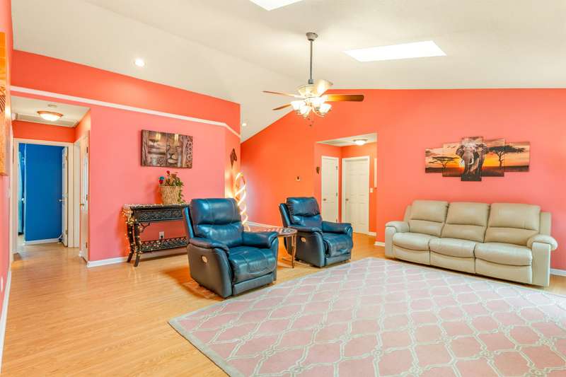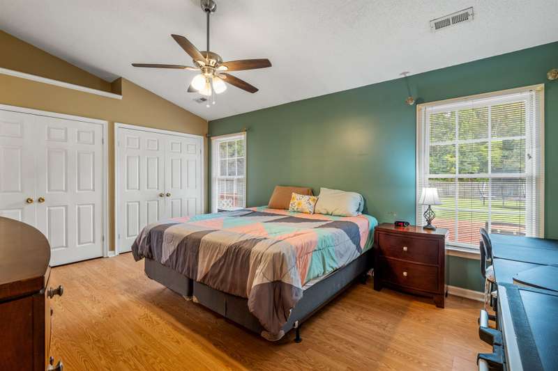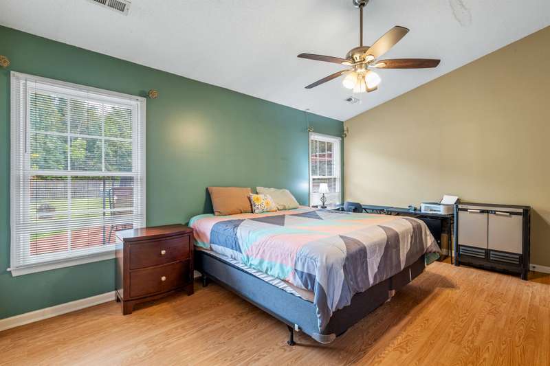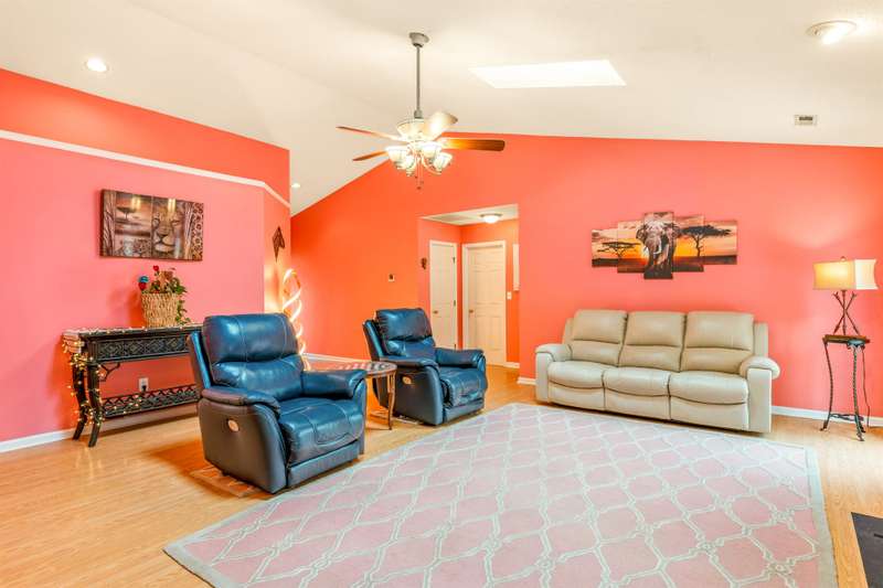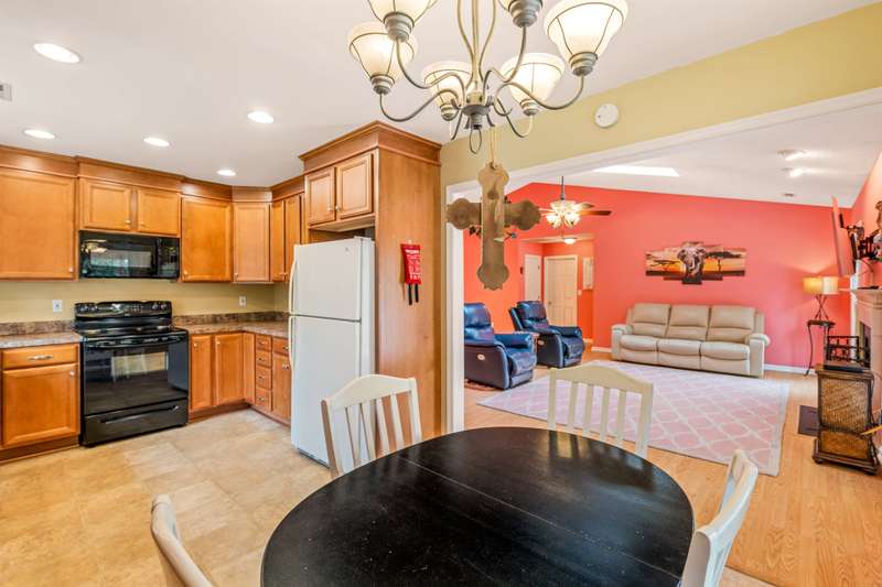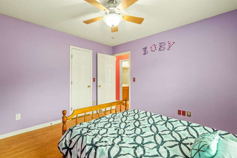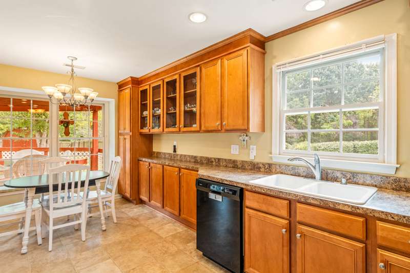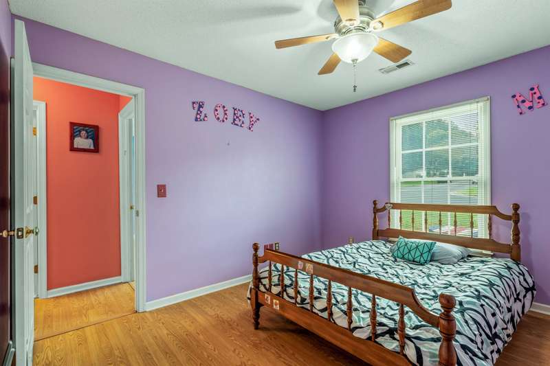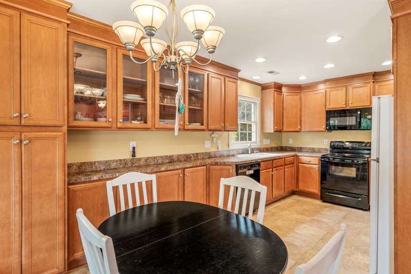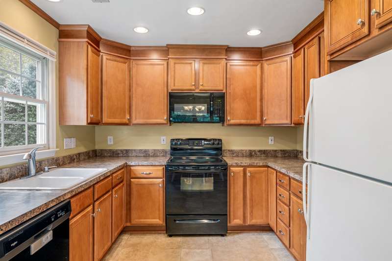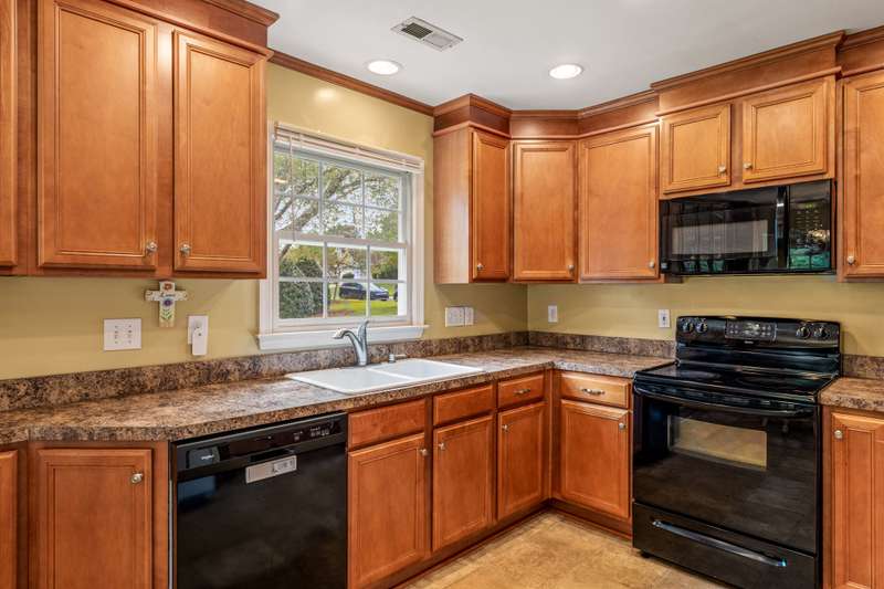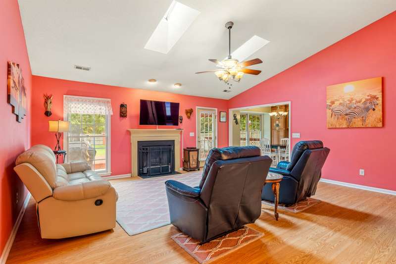 Here's the 3 bedroom, 2 bath ranch WITH a GARAGE for UNDER $300k that you've been looking for with so many terrific features! Amazing location near popular New Garden and Battleground shopping with a level backyard that backs up to woods. Central great room with vaulted ceiling and skylights, and a remodeled cook's kitchen with tons of cabinets and countertop space. Charming window seat in dining area with view of covered porch. Split bedroom plan offers privacy for owners and a primary suite with vaulted ceiling, double closets, double sink vanity and walk in shower. The backyard is perfect for fun and outdoor living with ample covered and open deck space overlooking the fenced backyard. 2022 AC, 2023 gas water heater. Two storage sheds and play equipment convey, and refrigerator, washer & dryer convey with acceptable offer. Zoned for new Claxton Elementary School. Pre-inspected and priced to SELL for new owners to give this great home their own personal touch.