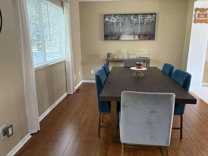 This appealing 3 bedroom, 1.5 bath two story with an open floor plan and a first floor laundry sits on a spacious corner lot. The kitchen and dining room offer solid wood flooring and double doors lead to the deck and treed fenced yard. You will also appreciate the chance to spread out in the finished basement.