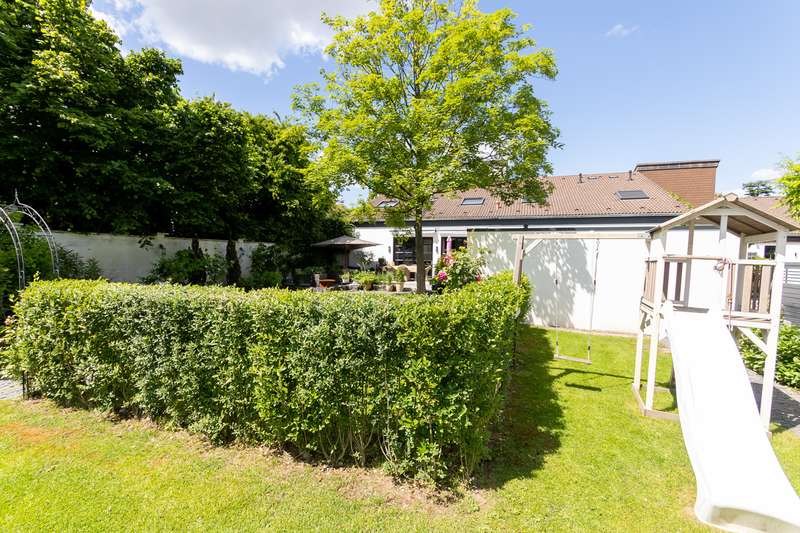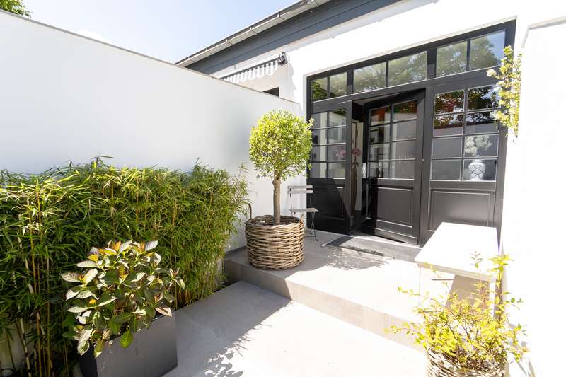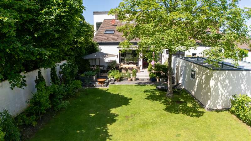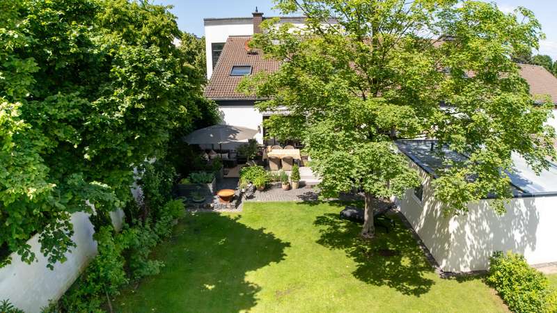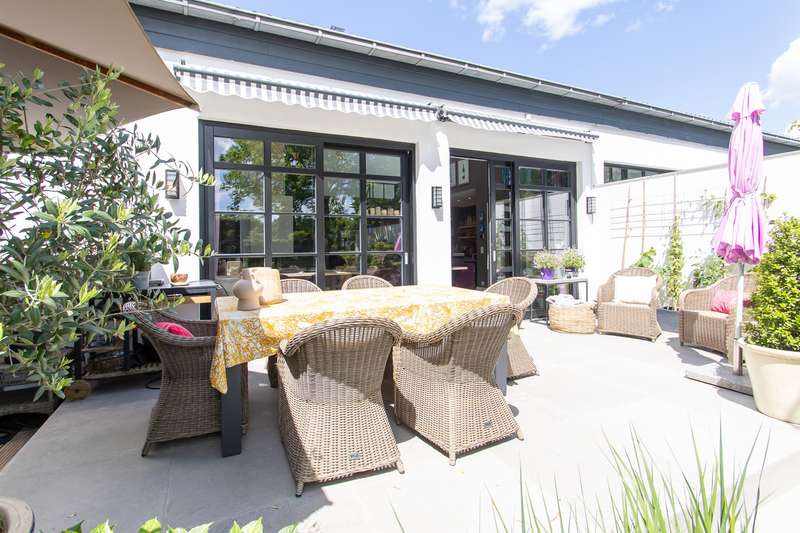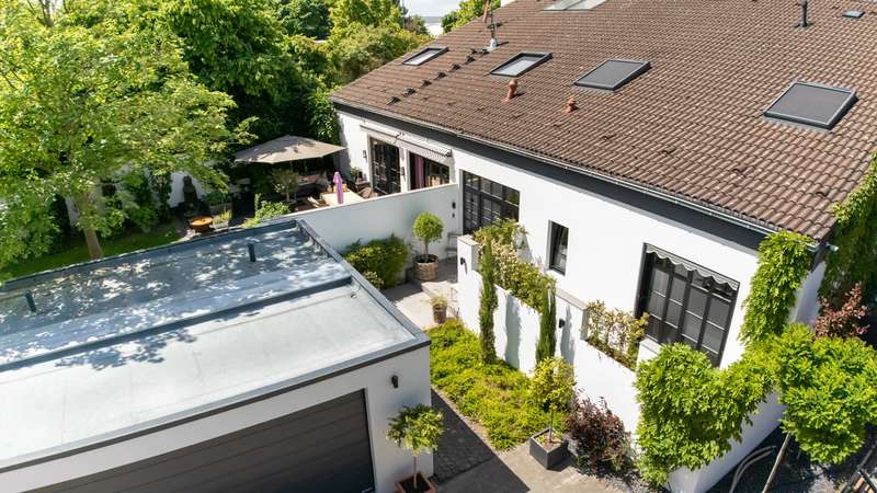 A unique detached house is for sale, which was created in 2021 from the conversion of a commercial space and has since combined modern living comfort with stylish furnishings. The property is situated on a spacious plot of approx. 1,165 m² and offers numerous advantages that make living a special experience. The house is one of a total of three residential units on the plot, but is completely self-sufficient and independent in terms of access, heating and driveway. The private entrance emphasizes the privacy and individual character of this property. The living space extends over generously dimensioned and loft-like rooms, which create an extraordinary feeling of space thanks to their high ceilings. With a room layout of three rooms, including two bedrooms and two bathrooms, the house offers enough space for individual living concepts. The open kitchen in industrial style is a visual highlight and is ideal for culinary evenings and social gatherings. The integrated 3-sided gas fireplace with illuminated heating programs further enhances living comfort and ensures a cozy atmosphere at any time of year. Both bathrooms are equipped with high-quality sanitary facilities and have been designed with a particular focus on functionality and design. This area is complemented by a modern steam sauna for relaxation and wellness in your own home. The spacious south-east-facing terrace invites you to linger and provides access to the spacious garden, which offers numerous possibilities for use, whether for leisure activities or garden projects. The as-new double garage with electric sectional door and additional parking spaces for vehicles underline the well thought-out character of the property and offer sufficient space for several vehicles. The property is heated by a modern central and underfloor heating system, which ensures even and efficient heat distribution. The gas condensing boiler is part of the property's own heating technology and therefore guarantees full control over energy consumption, independently of the other residential units. This detached house represents an optimal combination of modernity and comfort and offers a modern living environment characterized by functionality and style. Interested parties are invited to view this property for themselves and learn more about the details and possibilities of this property. This house is waiting to make your dream home a reality.