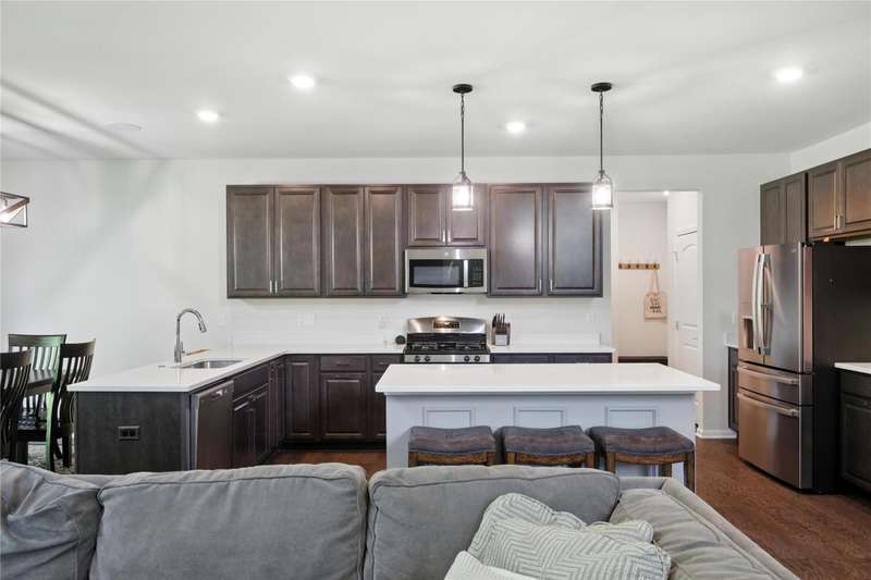 Priced below original purchase price!! Embrace the essence of a new construction home without the wait. Discover the epitome of luxury and modern convenience in this exceptional residence, tailored for discerning executives, those in the midst of relocation, or growing families seeking a harmonious blend of comfort and sophistication. This stunning 5-bedroom, 4.5-bathroom home is a masterpiece of design, boasting $150,000 in premium upgrades and state-of-the-art smart technology. Step into an elegant atmosphere where engineered hardwood floors grace the main level, complemented by the warm embrace of a gas fireplace in the great room. The office/den, adorned with French doors, provides a serene retreat for productivity. The heart of the home is the chef's dream kitchen, featuring quartz countertops, stainless GE appliances, and upgraded cabinets and fixtures that promise both style and function. Comfort meets luxury with a first-floor in-law suite and four additional bedrooms on the second level, including a sumptuous master enclave. Convenience is at your fingertips with a second-floor laundry room, a tankless water heater, and a deep basement prepped for a full bath and egress window, ready for your finishing touch which complements the zoned HVAC for unparalleled efficiency. The sellers' brief four-month tenure means you'll enjoy a practically untouched abode. Smart house controls, Sonos speakers, smart fans, and a whole-home mesh WiFi system ensure that your environment is always at the peak of innovation. Nestled on a premium lot backing to serene woods, the property includes professionally installed sod and a sprinkler system. The 3-car attached garage, with insulated walls and doors and with smart WiFi openers. complements the zoned HVAC for unparalleled efficiency. In this exquisite home, every detail is meticulously crafted for ultimate comfort and luxury—ready for you to make it your own.