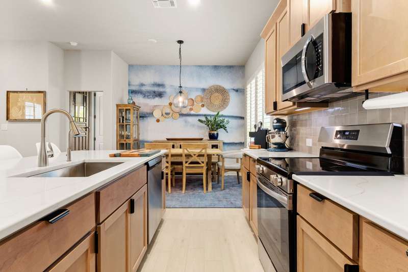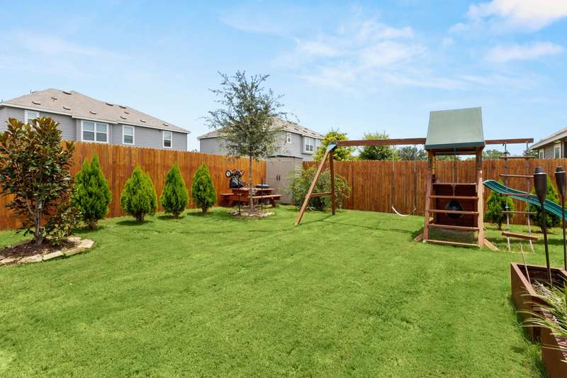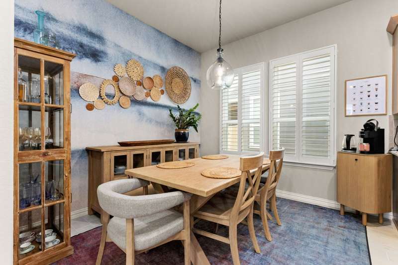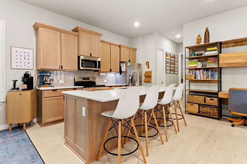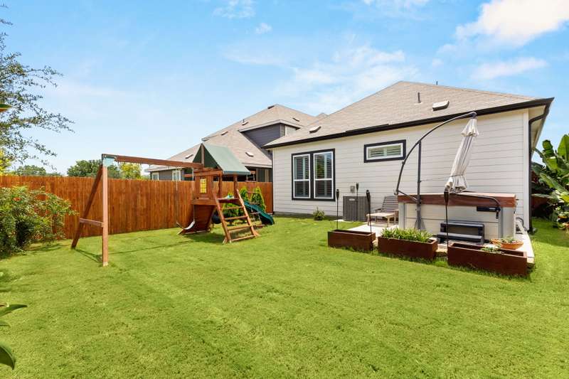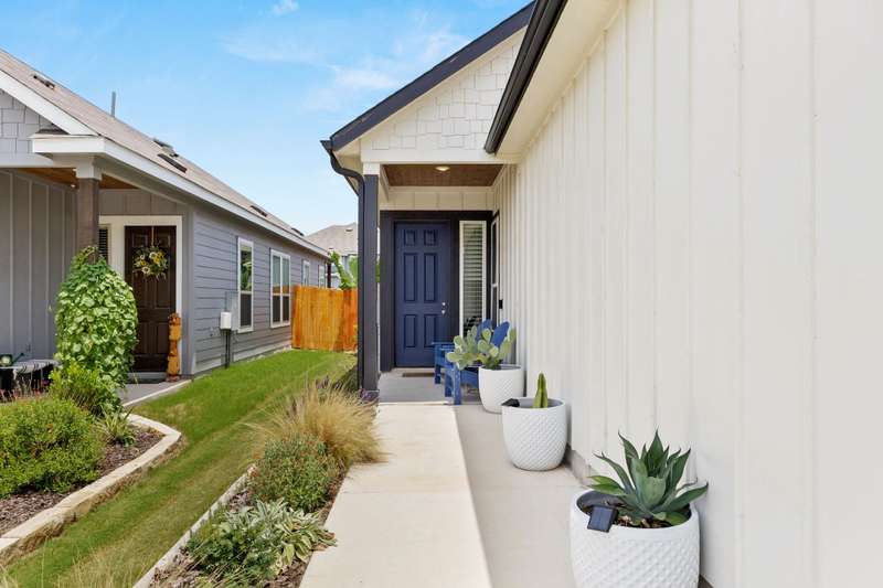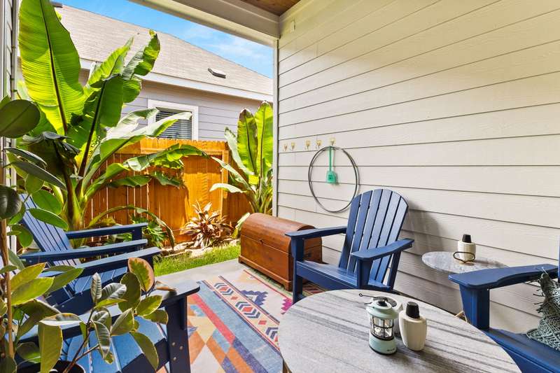 Step into this 1,340 SF single-story home in the Casinas at Gruene. This home features 8' interior doors, an airy open-concept layout, and designer finishes throughout. The spacious kitchen is a true centerpiece, offering 42" cabinetry, a large center island with a farmhouse sink. The dining area opens to the living space, where natural light pours in through newly installed plantation shutters and creates a warm, inviting atmosphere. The private owner's suite offers a relaxing retreat with a spa-inspired bathroom featuring an oversized walk-in shower with seating, double vanities, a private water closet, and a generous walk-in closet. The second bedroom is tucked away at the front of the home near the second full bath-ideal for guests or a home office. Enjoy outdoor living in the fully fenced backyard with a covered patio, lush tropical landscaping, and a spa - the perfect space to unwind or play. The front yard is professionally landscaped with charming curb appeal. - 10/2/2025 3:18:23 AM