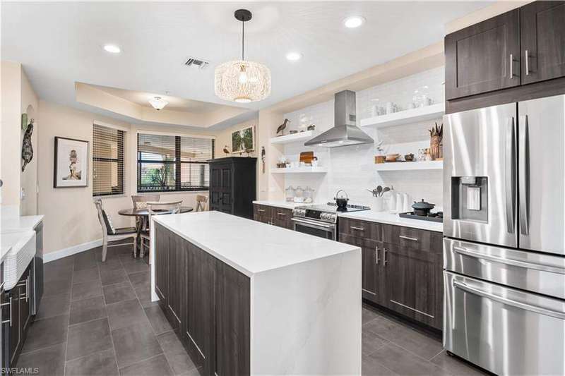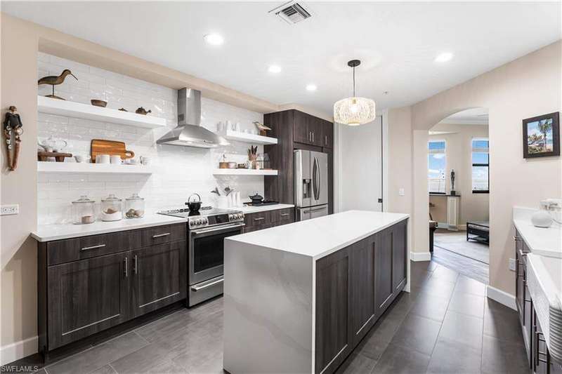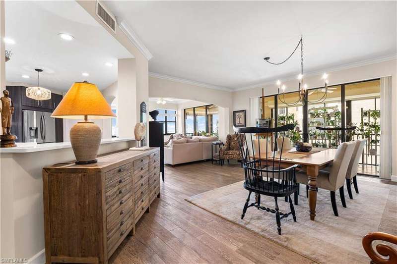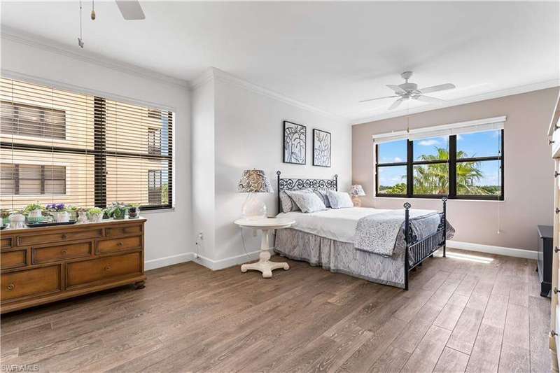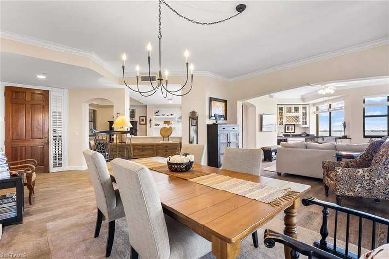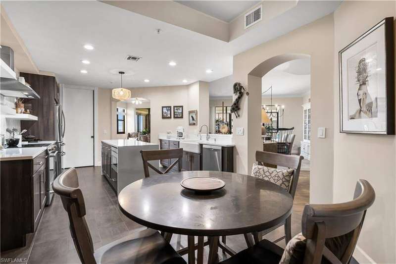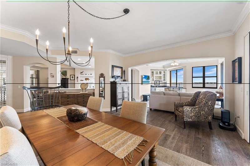 Rarely Available 5th-Floor End Unit | UNOBSTRUCTED RIVER VIEWS-Alhambra II Floorplan Welcome to Palmas Del Sol in the prestigious Gulf Harbour Yacht & Country Club-where luxury high-rise living meets breathtaking views. This remodeled 5th-floor end residence captures sweeping vistas of the Caloosahatchee River, the 3rd fairway, and the downtown skyline. Highlights of this 3-Bedroom, 2.5-Bath Condo: Remodeled Chef's Kitchen - Custom cabinetry, quartz countertops, a center island, and a wet bar with quartz surfaces. Exclusive 2-Car Enclosed Garage under-building, conveniently located on the 2nd level. Expansive Lanai - Perfect for relaxing or entertaining, complete with hurricane shutters for security and peace of mind. Primary Suite Retreat - Features lanai access, a fully remodeled ensuite bath with dual sinks, and a spa-style walk-in shower with dual showerheads. Guest Comforts - Two spacious guest bedrooms with a full bath featuring a shower/tub combination. Elegant Finishes - 8-ft solid core doors, crown molding, and stylish flooring throughout. Community & Building Updates: Newly installed roofs, fresh exterior paint, garage upgrades, and screens-all fully funded and 100% covered by insurance. Resort-style amenities including a sparkling pool and spa, gas grills, a community room, billiards, and a private conference room. Scenic riverfront boardwalks for peaceful evening strolls. This is a rare opportunity to own a highly desirable end unit in one of Gulf Harbour's premier towers. Be sure to watch the amazing walk-through video!