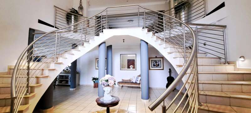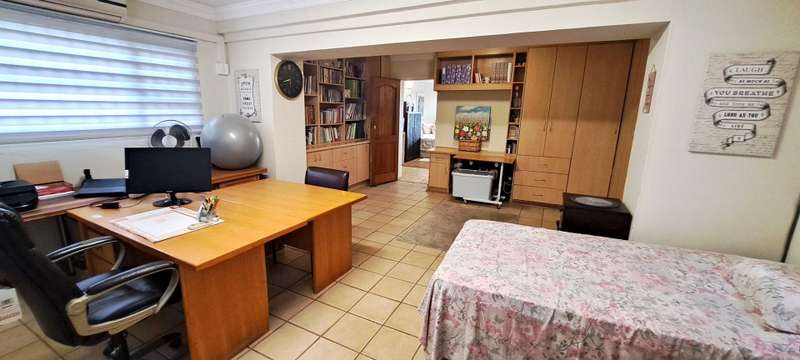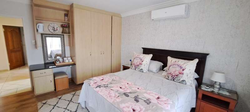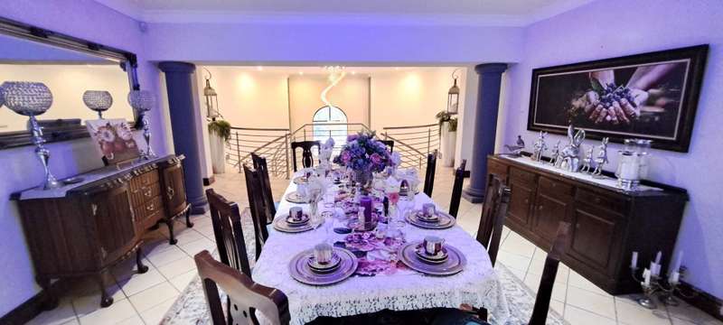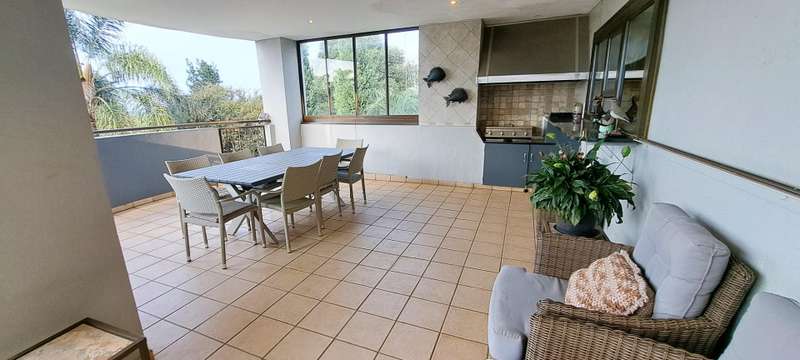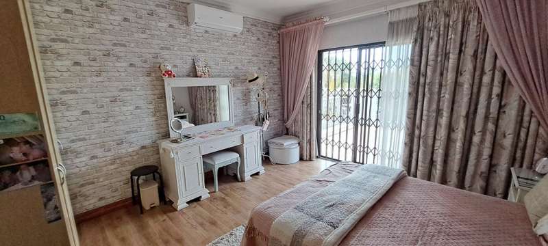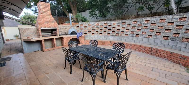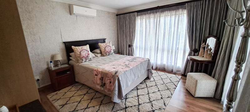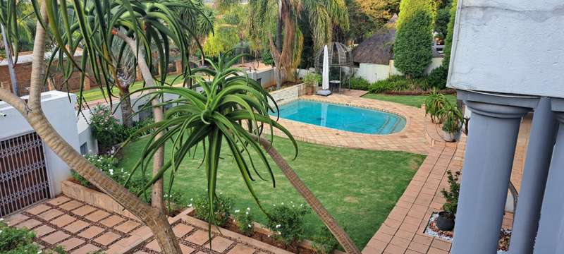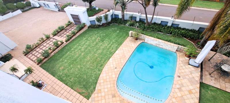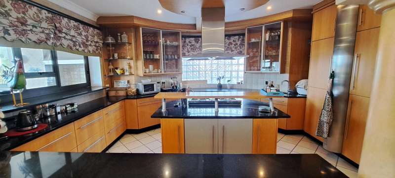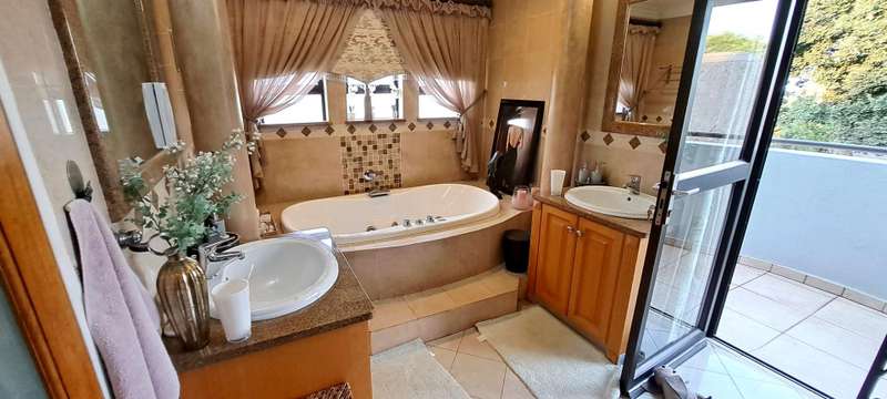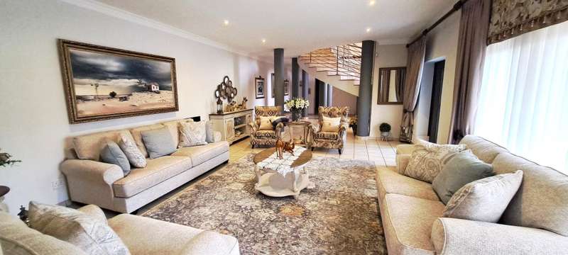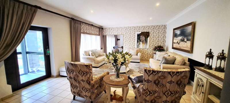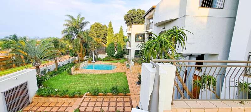 This property is a must see for buyers who are looking for style, comfort and beauty. Stunning home, 3 levels with a lift and swimming pool! 3 Levels with beautiful views and a balcony from every bedroom as well as from the entertainment areas. Beautiful entrance with double staircase. On the ground floor is a living room, bar and wine cellar. There is also a guest toilet and the two double garages have a direct entrance into the house for your convenience. On the first floor is a separate bedroom, two bathrooms, guest toilet, living room and balcony that can easily be used as a flatlet because of the privacy and practicality of it. Down the passageway is a spacious dining room, living room, lounge, cold room with more storage space and the spacious kitchen (with a gas stove), scullery and laundry with a pantry and a servant?ÇÖs quarter at the back (with a separate entrance from outside and consists of a bedroom and bathroom with a bath, toilet and basin). Beautiful balcony with a built-in braai and entertainment area. On the second floor is a beautiful lounge, large study, spacious main bedroom with main-ensuite as well as 2 more bedrooms with bathrooms. Outside is a built-in braai as well as pizza oven, water tanks, a borehole and irrigation system. CCTV cameras, alarm system and electric fencing for added security and comfort. Aircons and gas geyser for your convenience.