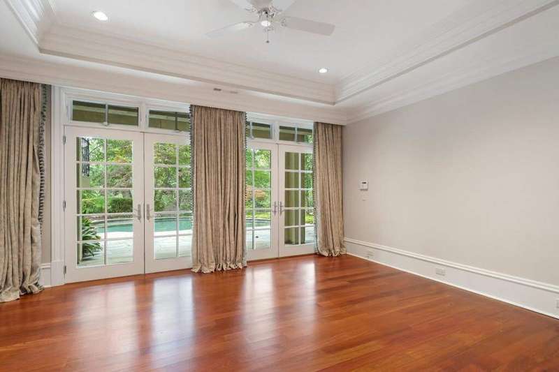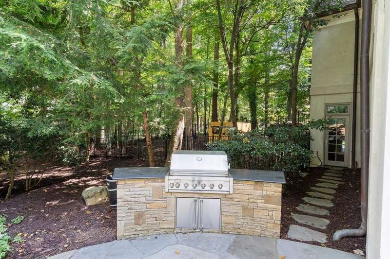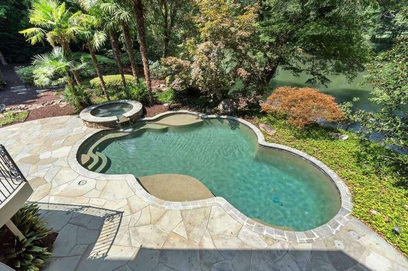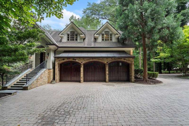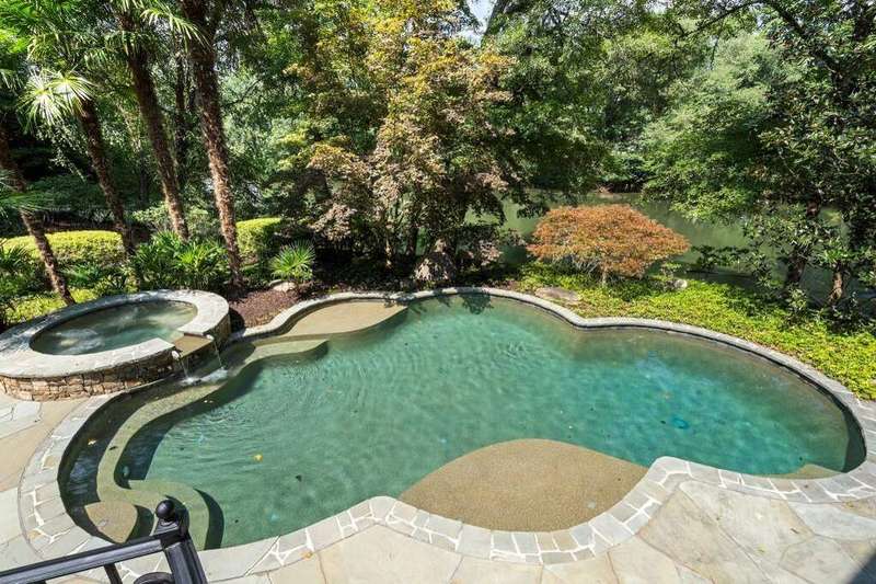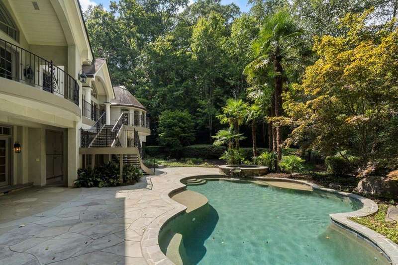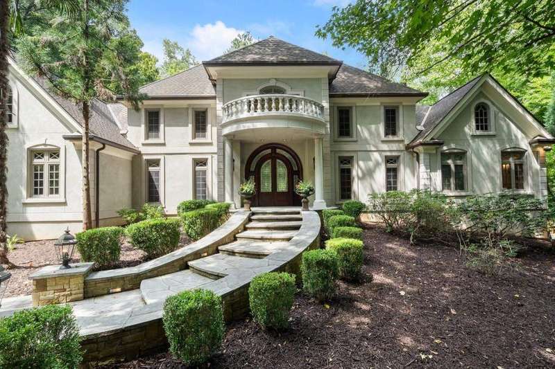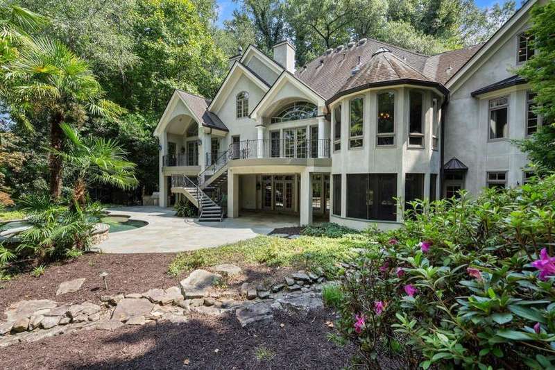 Exquisite European-style 5-Bedroom home nestled off a quiet cul-de-sac on a peaceful stretch of the Chattahoochee River with distant views of a neighboring golf course is not one to miss! Dramatic architectural details throughout including the show-stopping 2-story foyer entry with curved soffits, unique iron work, marble flooring, arched doorways and a fabulous stained glass Rotunda ceiling. The main level features a richly paneled Library with dramatic fireplace, elegant formal Dining Room, and a cozy fireside Family Room with custom built-in's open to the well-appointed Kitchen complete with richly stained custom cabinetry, stone counters, center island, large walk-in pantry, and a suite of premium appliances, and a sunny Breakfast Area. Completing the main level is a sumptuous Primary Suite with beverage bar, gas fireplace, and luxurious Bath featuring separate vanities, jetted tub, double-sized steam shower, uniquely designed flooring with a mosaic tile inlay, and french doors leading to a private balcony with views of the resort-like pool/spa and river. The spacious upper level offers 3 Bedrooms, 2 full Baths, a Bonus Room and laundry. The expertly finished terrace level features every amenity expected in a home of this caliber including a Media Room, Wine Cellar and Bar, private Guest Suite witn en suite Bath, Office, Fitness Room, and additional entertaining space with access to a screened in porch and covered terrace.