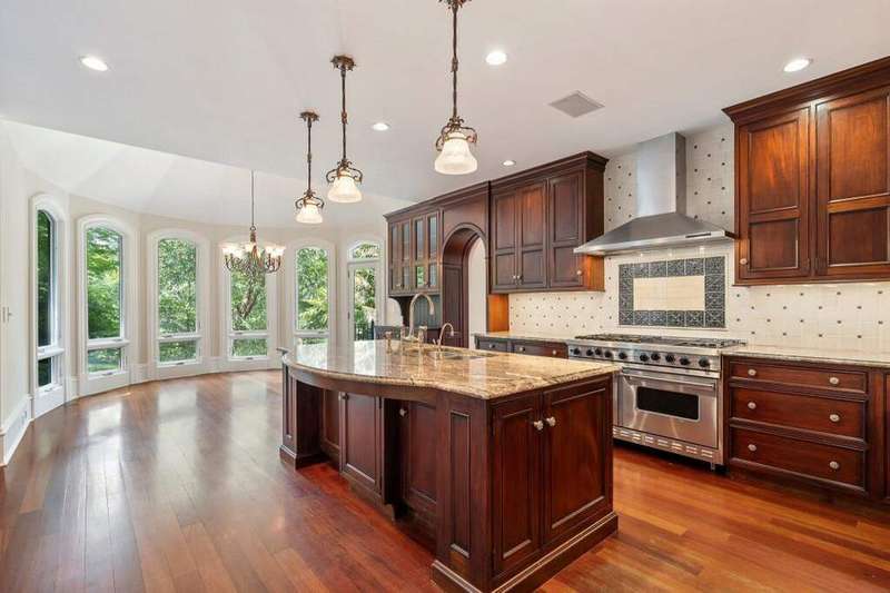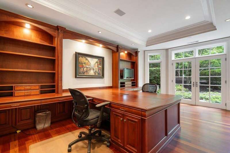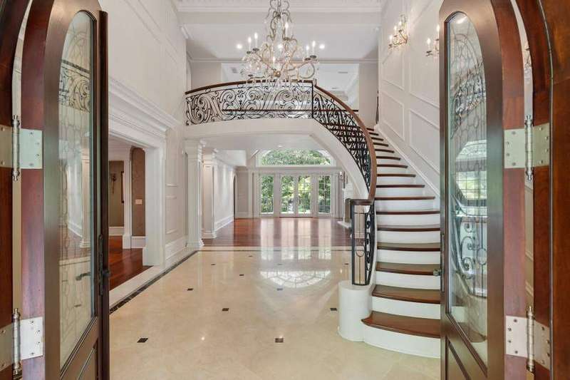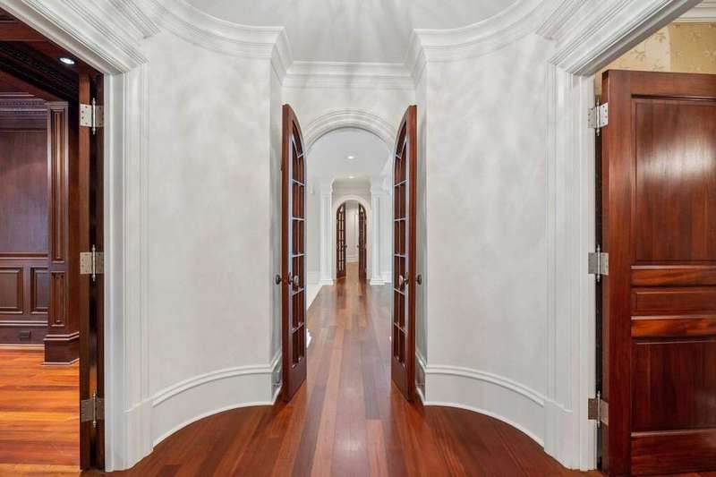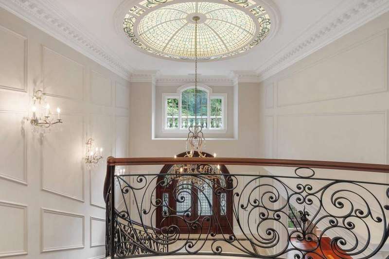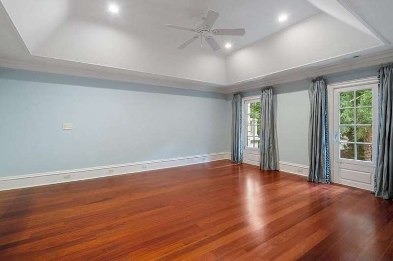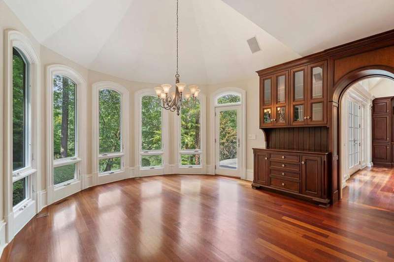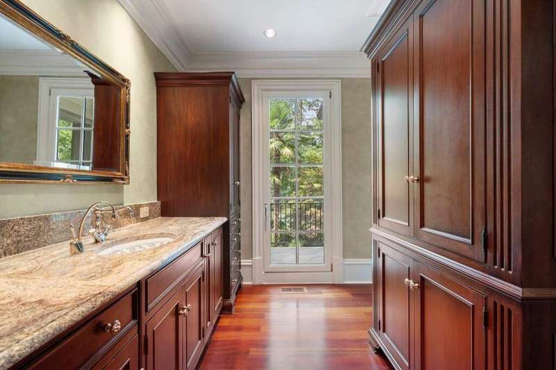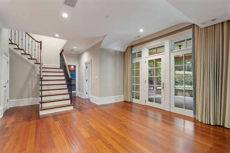 Exquisite European-style 5-Bedroom home nestled off a quiet cul-de-sac on a peaceful stretch of the Chattahoochee River with distant views of a neighboring golf course is not one to miss! Dramatic architectural details throughout including the show-stopping 2-story foyer entry with curved soffits, unique iron work, marble flooring, arched doorways and a fabulous stained glass Rotunda ceiling. The main level features a richly paneled Library with dramatic fireplace, elegant formal Dining Room, and a cozy fireside Family Room with custom built-in's open to the well-appointed Kitchen complete with richly stained custom cabinetry, stone counters, center island, large walk-in pantry, and a suite of premium appliances, and a sunny Breakfast Area. Completing the main level is a sumptuous Primary Suite with beverage bar, gas fireplace, and luxurious Bath featuring separate vanities, jetted tub, double-sized steam shower, uniquely designed flooring with a mosaic tile inlay, and french doors leading to a private balcony with views of the resort-like pool/spa and river. The spacious upper level offers 3 Bedrooms, 2 full Baths, a Bonus Room and laundry. The expertly finished terrace level features every amenity expected in a home of this caliber including a Media Room, Wine Cellar and Bar, private Guest Suite witn en suite Bath, Office, Fitness Room, and additional entertaining space with access to a screened in porch and covered terrace.