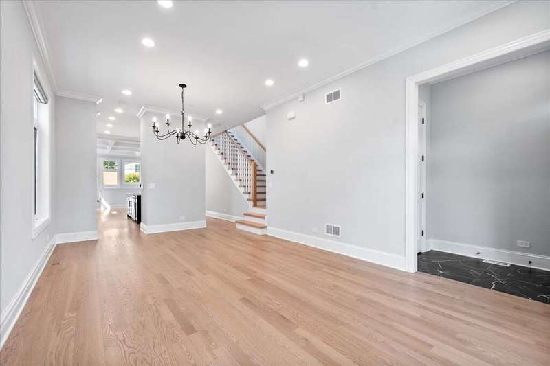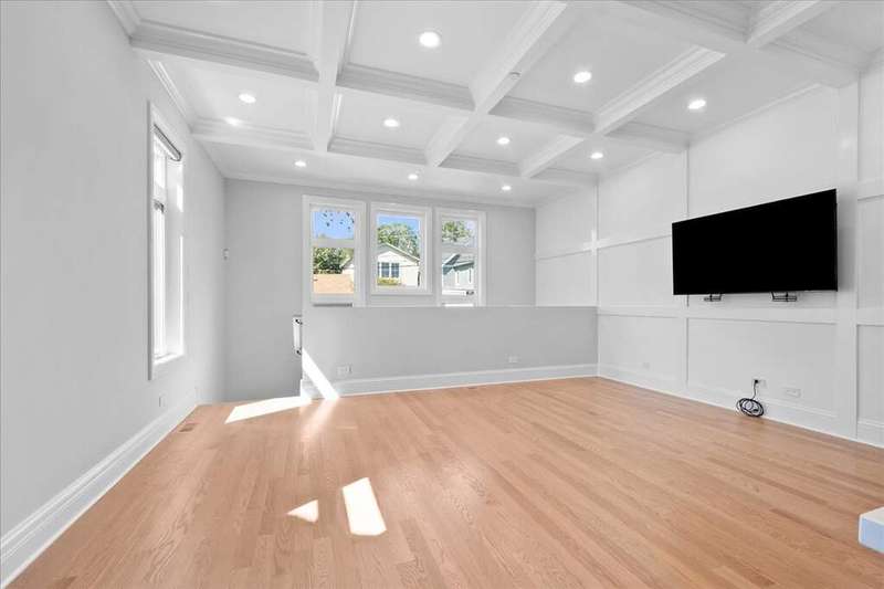 Stunning Newer Construction in Prime Evanston Location Welcome to 2012 Maple, a beautifully crafted single-family home that blends modern design with timeless details. The sharp exterior features board-and-batten siding, black-framed windows, and a charming covered front porch that sets the tone for what's inside. Step into a sun-drenched, open-concept living and dining area-perfect for both everyday living and entertaining. The chef's kitchen is a true showstopper, complete with professional-grade appliances, a large center island, butler's pantry, walk-in pantry, custom white shaker cabinetry with under-cabinet lighting, a herringbone tile backsplash, and sleek quartz countertops. The adjoining family room impresses with a coffered ceiling, custom millwork accent wall, and abundant natural light. A rear mudroom with built-in cubbies keeps everything organized. The second floor is home to a serene primary suite with designer accent wall, bedside sconces, two walk-in closets, and a spa-like bath featuring dual vanities, a spacious glass-enclosed shower, and a freestanding soaking tub. Two additional bedrooms, a full hall bath, and laundry complete this level. The finished lower level offers incredible additional living space with a large recreation room, full wet bar, spacious bedroom, full bath, and convenient laundry room. A two-car parking pad adds to the convenience. All this in an unbeatable location-just steps from the Purple Line, downtown Evanston, shops, groceries, restaurants, the lakefront, and more. 2012 Maple is the perfect blend of style, comfort, and location-ready to welcome you home.