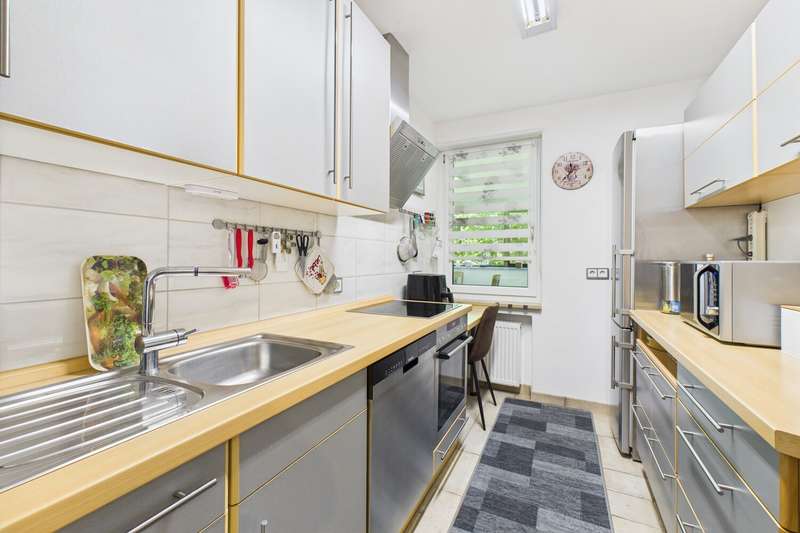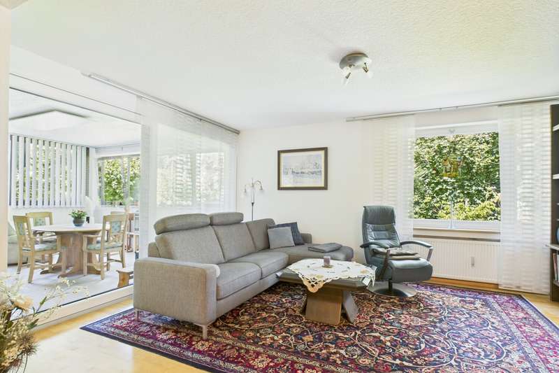 This spacious 3-room raised ground floor apartment in a popular residential area of Göggingen boasts a well thought-out floor plan, well-kept ambience and cozy living character on approx. 97 m² of living space. Together with the adjoining conservatory, the bright living room forms the heart of the apartment and invites you to spend relaxing hours in a light-flooded atmosphere. The separate fitted kitchen is functionally equipped and blends harmoniously into the room concept. The quiet bedroom and a further room, which can be used flexibly as a children's room, guest room or study, offer a wide range of possibilities. The bathroom is equipped with a shower, washbasin and WC, while a separate guest WC provides additional convenience. Three practical storage rooms provide plenty of space for tidiness and organization. This attractive offer is rounded off by an underground parking space. See the benefits of this property for yourself - we look forward to hearing from you.