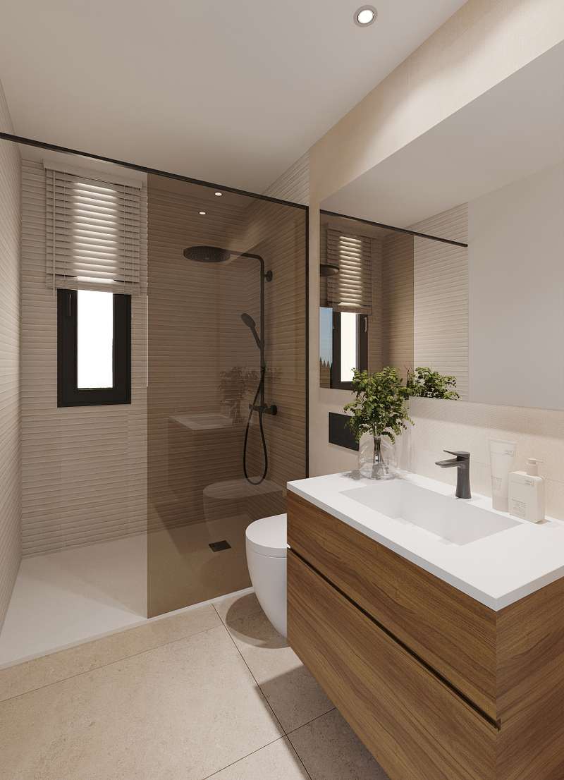 These sophisticated single-family villas offer 105.40 m² of living space on a generous 550 m² plot. Designed for comfort and elegance, the villas feature three spacious bedrooms and two modern bathrooms. The open-plan living and dining area is bright and inviting, seamlessly integrating with a contemporary kitchen furnished with high-quality materials. Large windows offer abundant natural light and open to a covered porch and a beautifully landscaped garden, creating a perfect indoor-outdoor living experience. The villas also include a private swimming pool, a large solarium with panoramic views, and a garage. Additional features such as pre-installation for air conditioning and premium finishes throughout enhance the villa’s modern appeal.