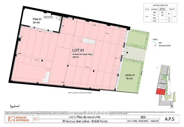 Ideally located within the Golden Triangle, between Pantin Church and the Canal de l'Ourcq, this 601 m2 unfinished space is the result of the renovation of a former distillery.
