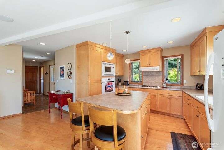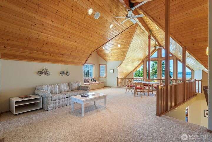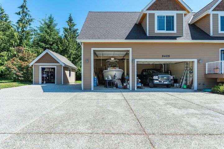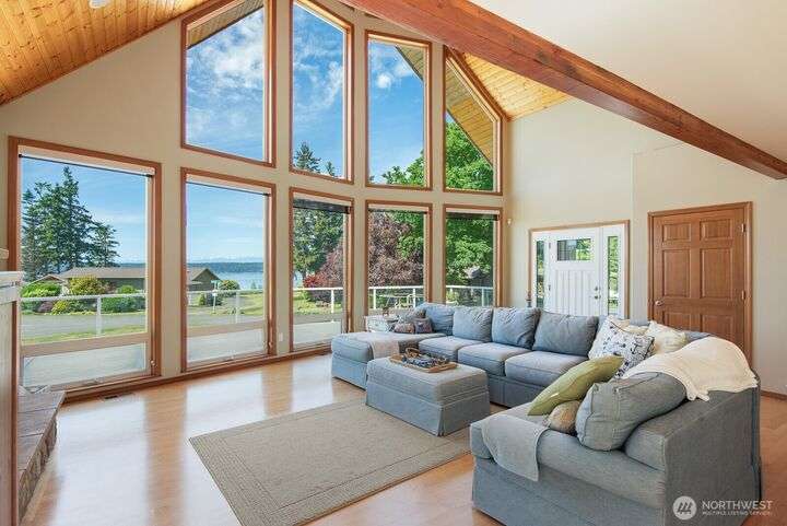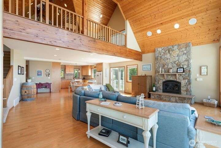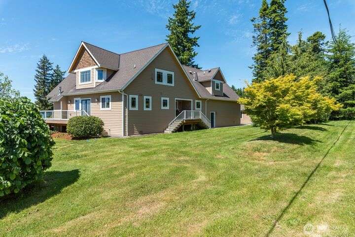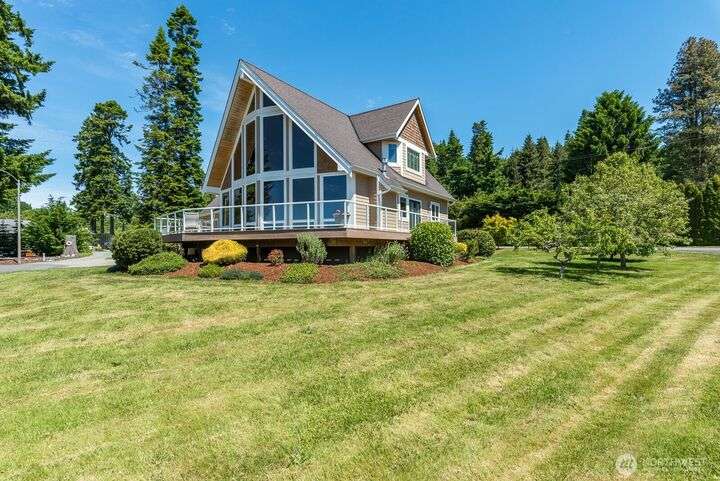 First time on market! Custom built home on level 1/2 acres and sweeping SW/Westerly ocean, mountain & sunset views. Great Room greets you w/soaring vaulted ceilings, wall of Milgard low-E windows, maple hardwoods, Lopi gas F/P wrapped in rock hearth. Kitchen features SS appliances, island & tons of space. Quiet ceiling fans, hard-wired speakers, built-in vacuum, wired for generator. Covered crab/fish cleaning & grilling station on back deck. Main floor Master w/en suite bath. Bright & spacious upstairs w/ocean view loft, 2 sizable BDRs & Game room. Wrapped Trex deck ideal for parties/dining/whale watching! Huge 30' deep 2-bay/3-car garage. Detached shop/storage. Firepit & garden space. Trail to beach & close to state parks...and no ferries!