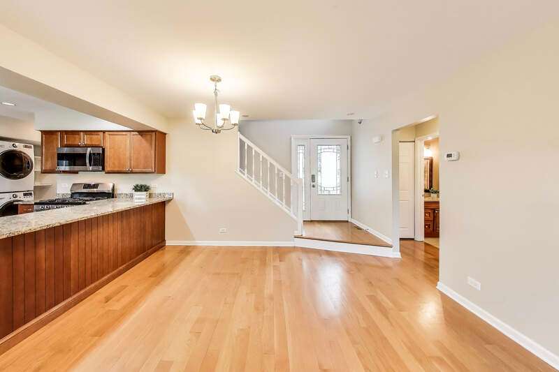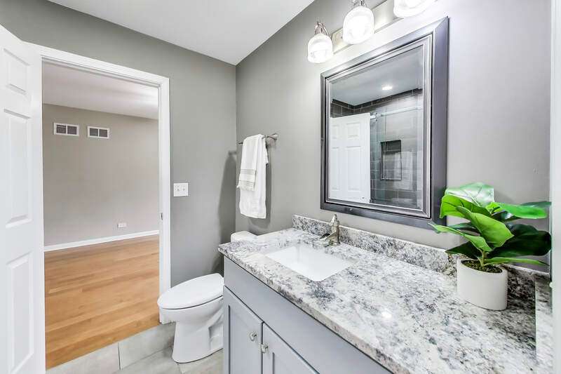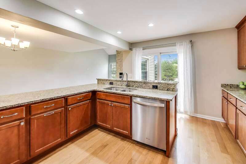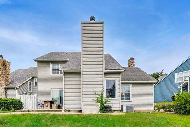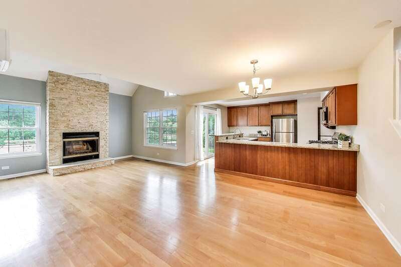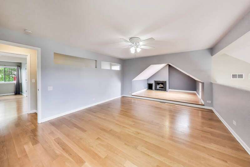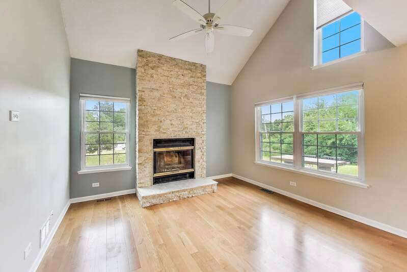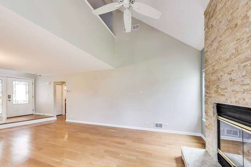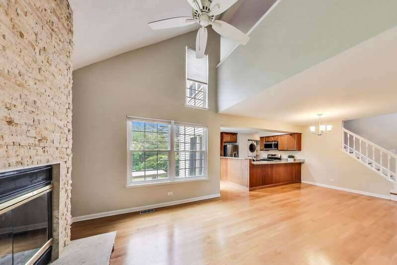 Beautifully updated 3 bedroom, 2 full bath, 2-car garage home in desirable Heather Ridge community, perfectly situated on a cul-de-sac. This sun-filled home features a first-floor bedroom and full bath, soaring vaulted ceilings, and an open layout ideal for entertaining. The spacious living and dining room combo with hardwood floors flows seamlessly into the kitchen, complete with a cozy fireplace-perfect for relaxing or hosting guests. The remodeled kitchen is a showstopper, boasting tall cabinets, granite countertops, and a breakfast bar. A fully remodeled bath and bedroom complete the perfect first floor. Upstairs, you'll find two oversized bedrooms with WIC, a remodeled bathroom and a wood- burning fireplace. The finished basement offers a versatile recreation room that can serve as a play area, office, or fitness space. Enjoy all the amenities of the Heather Ridge community, including 24-hour security, golf course, swimming pool, and clubhouse. Conveniently located near shopping, dining, and the interstate-this move-in-ready home is a must-see!