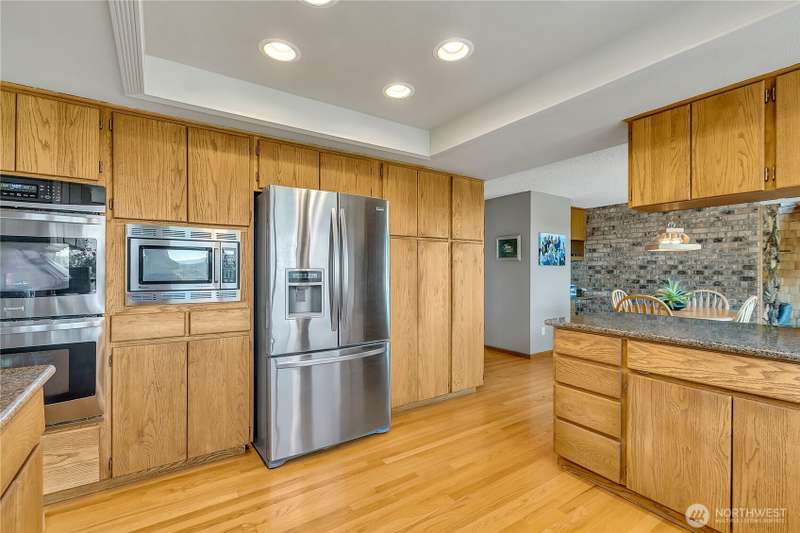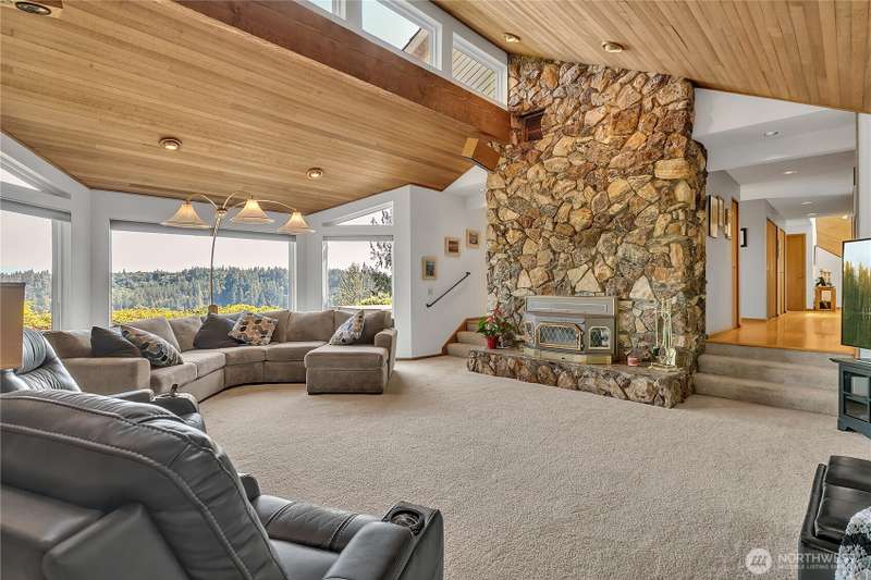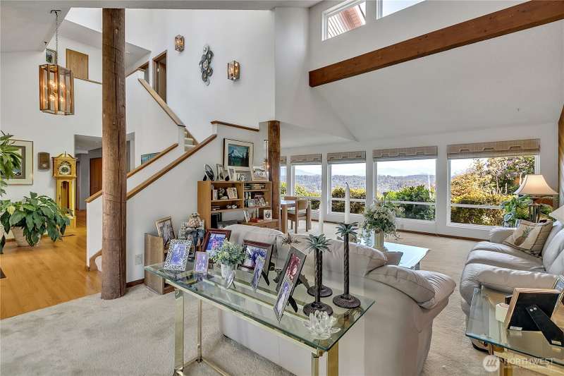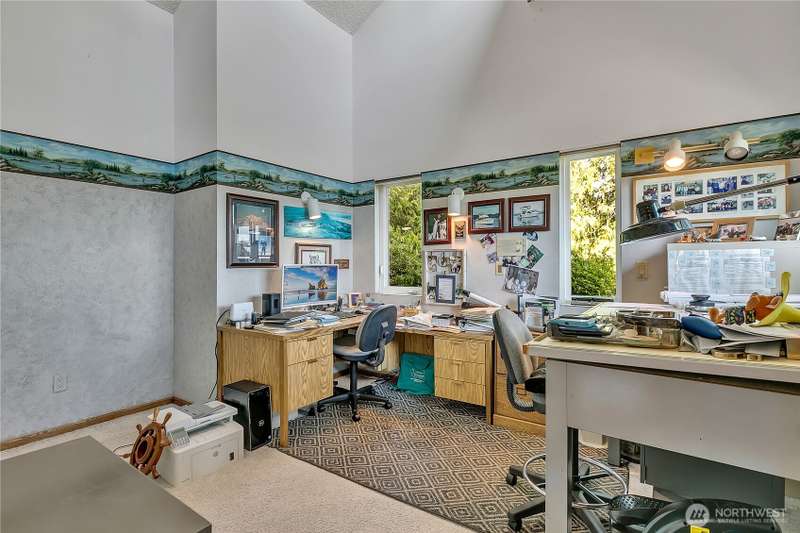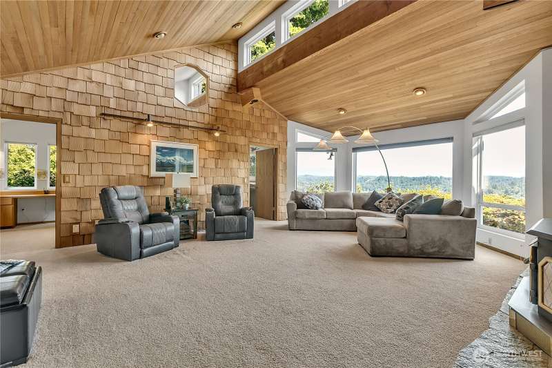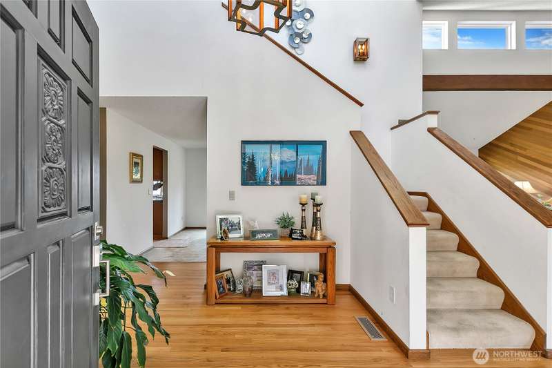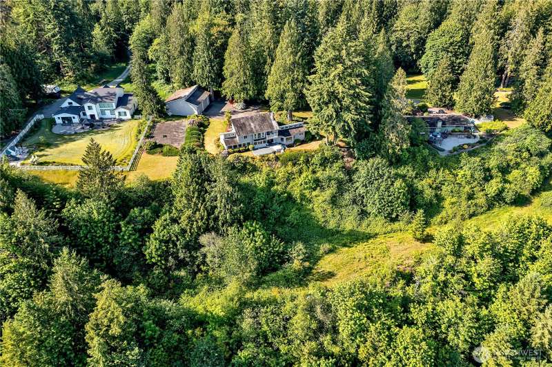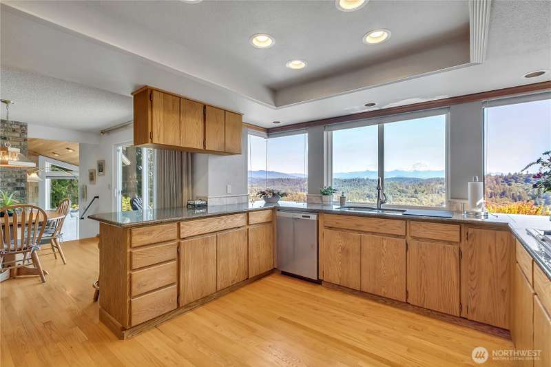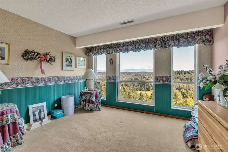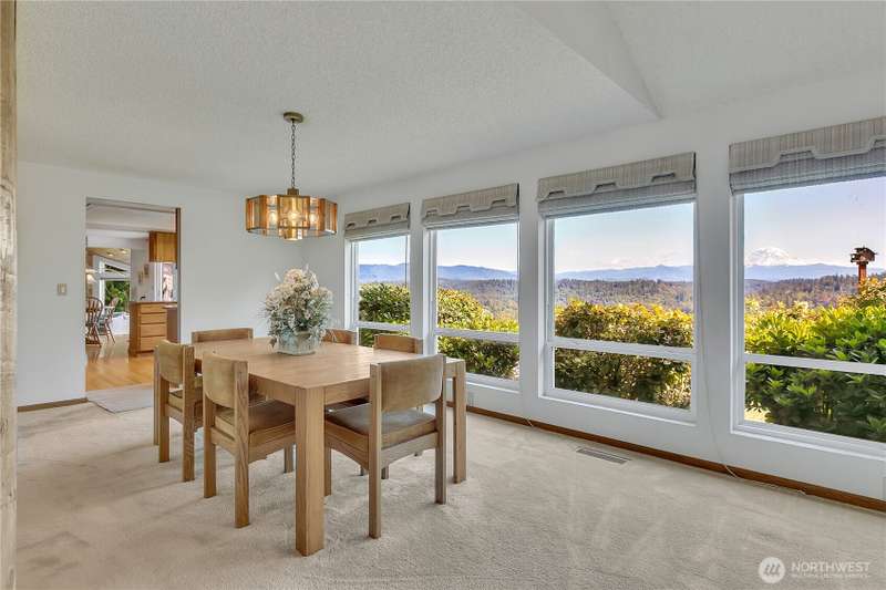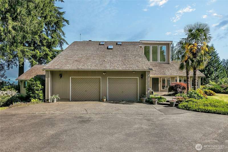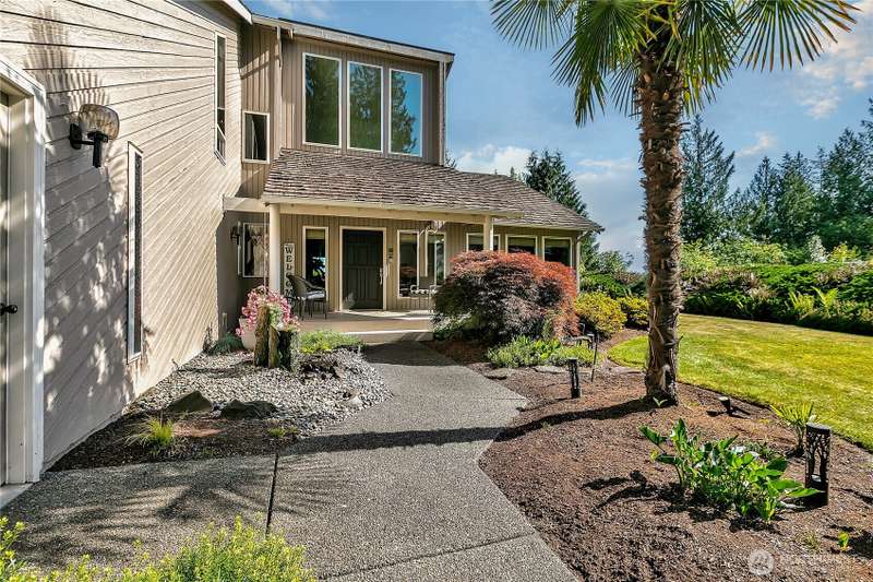 Experience Serene Luxury with Unparalleled Mt. Rainier Views. Nestled on a private 2.62-acre lot, 4-bedroom, 2.75-bath custom home. Vaulted ceilings welcome you into the formal living and dining areas. Expansive kitchen, complete with a cozy breakfast nook, provides ample space for culinary creations and entertaining. Adjacent to the spacious family room are two dedicated offices, perfect for remote work. The primary bedroom features an en-suite bath and a private deck on the second level with breathtaking views of Mt. Rainier. Step outside to the main-level deck with hot tub and meticulously maintained nature-inspired landscaping. Sport court with basketball hoop. Oversized 40'x40' shop for all your toys. Make this your next home!!