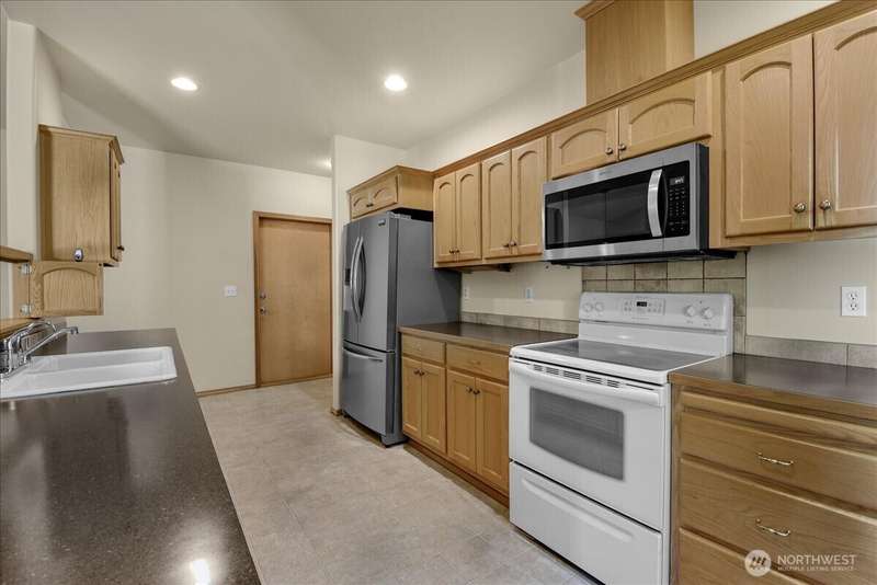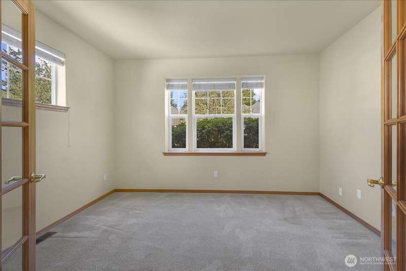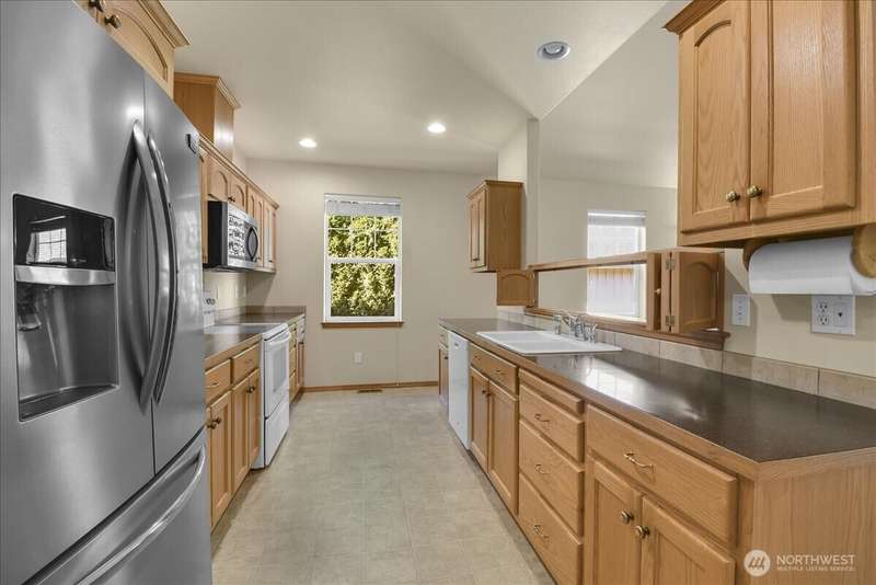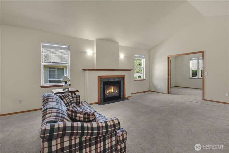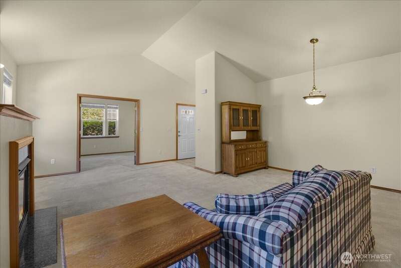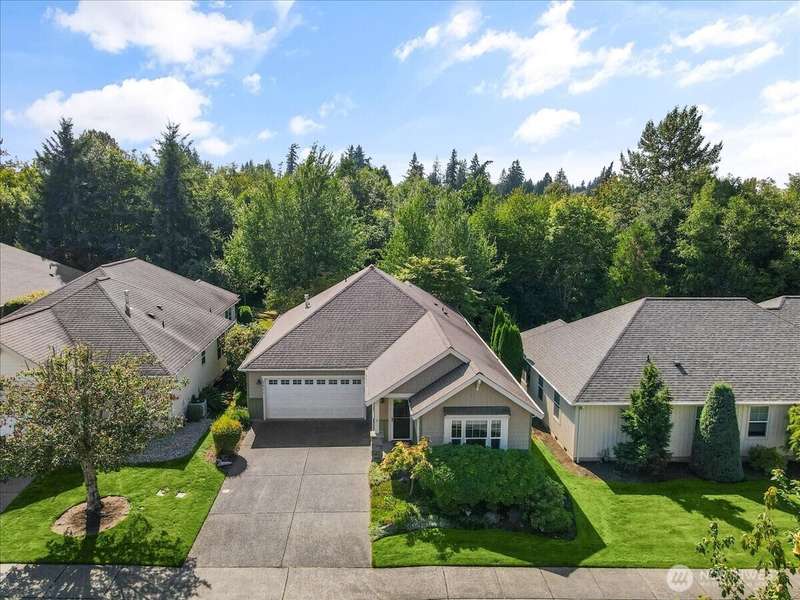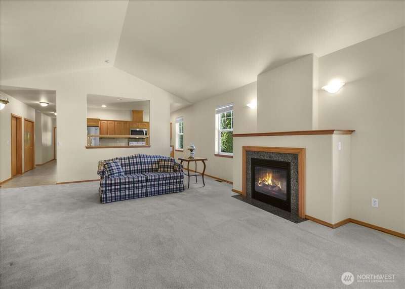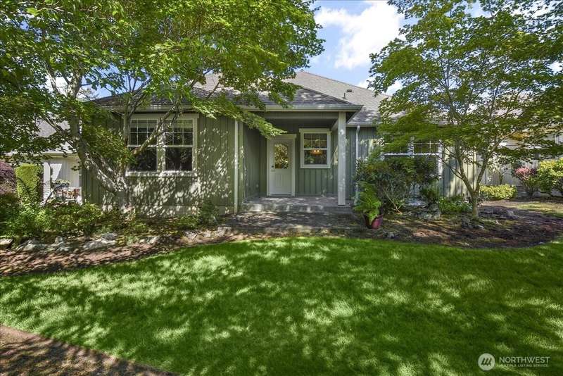 Enjoy peaceful living in this spacious 1710 sq ft 2 bedroom + den, 2 bath home with serene setting fronting a creek in a vibrant and active 55+ community. The open floor plan features vaulted ceilings, gas heat, AC and a cozy gas fireplace. Kitchen has lots of cabinets and counter space. The large primary suite offers a walk-in closet and double vanity. You will appreciate the abundant storage, new hot water tank, 2 car garage and easy care lifestyle - exterior care maintenance included in HOA dues. Move-in ready with peaceful views and tranquil setting.