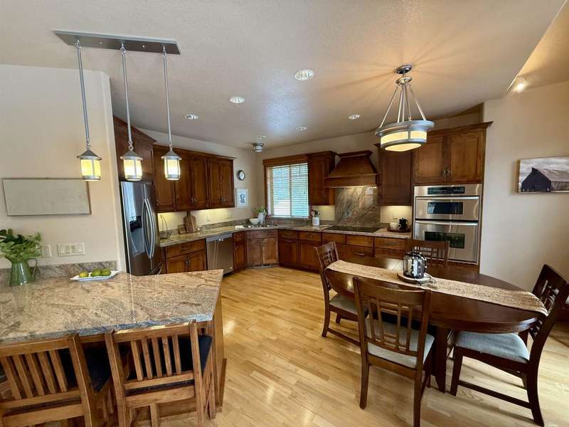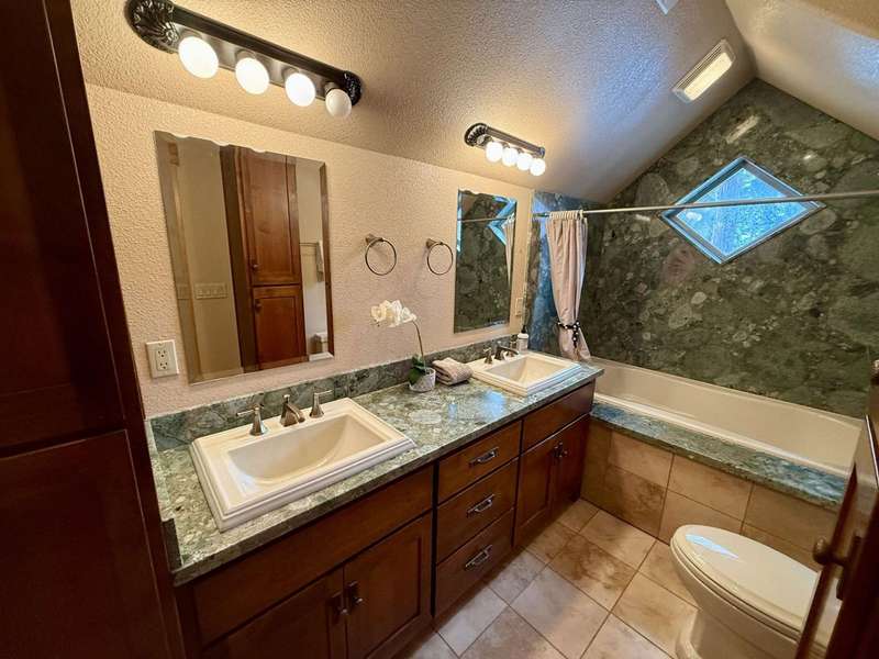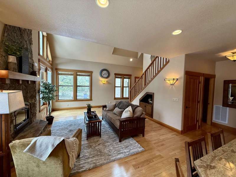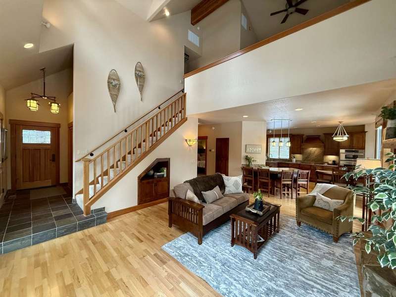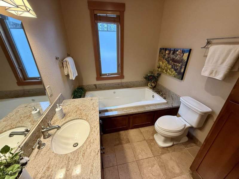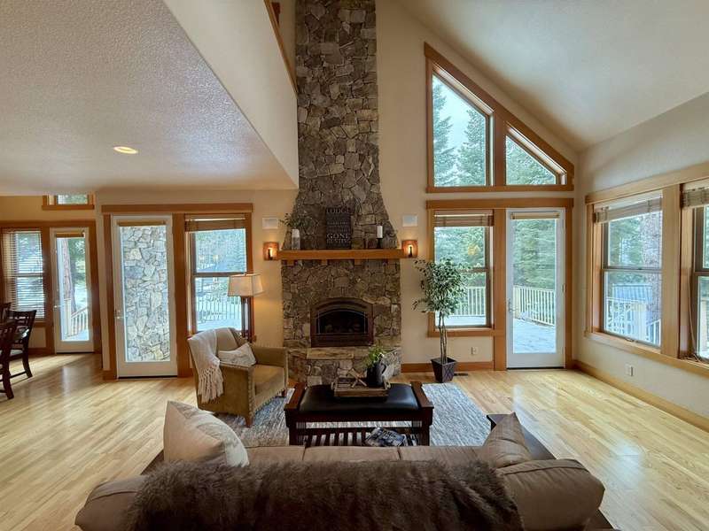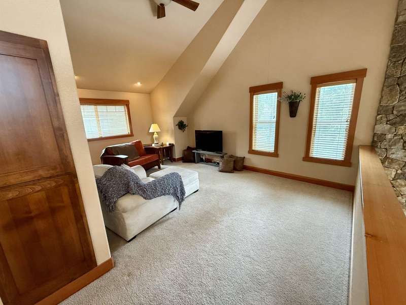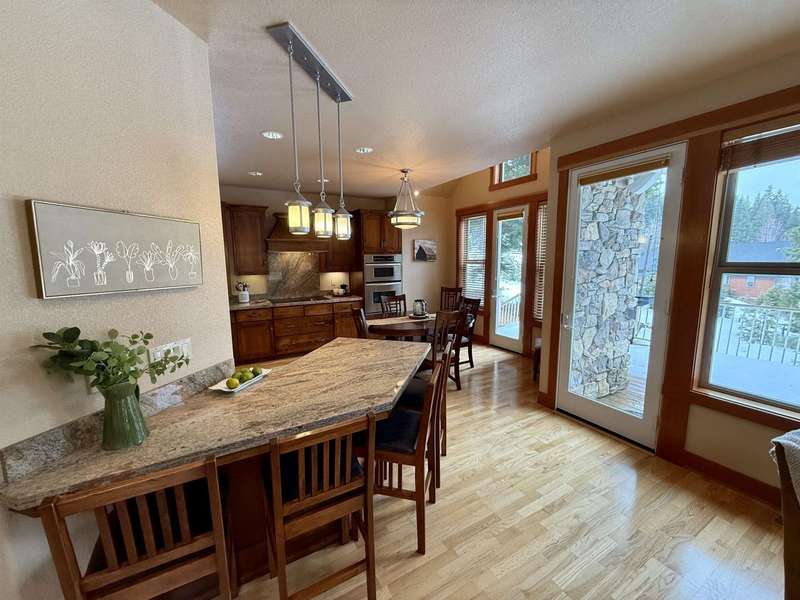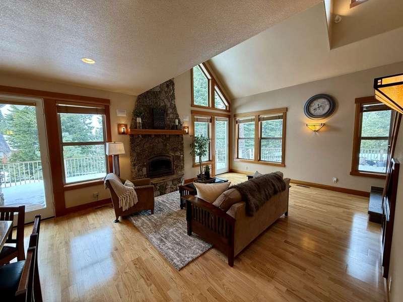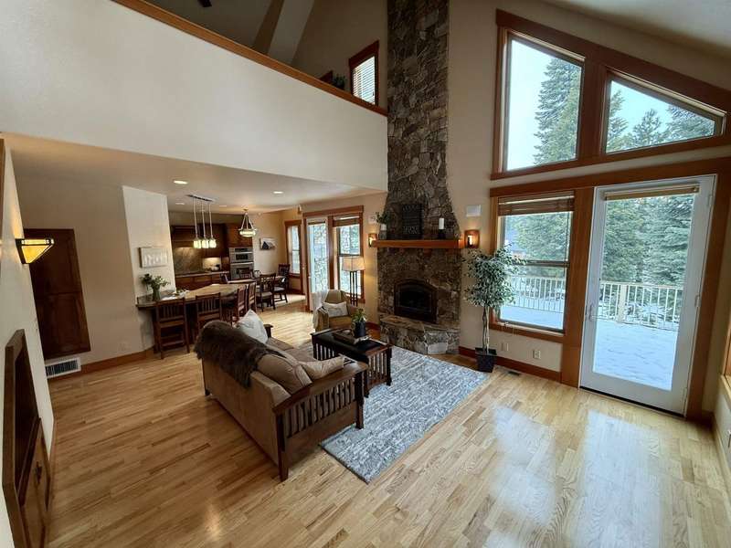 This well appointed Bailey Creek home offers excellent privacy and the finest finishes! As you enter through the slate tiled entry you will find dramatic vaulted ceilings, attractive oak flooring, abundant natural light and a stunning floor to ceiling rock fireplace with wood stove insert. The open floor plan leads to a deluxe kitchen featuring stainless steel appliances, beautiful shaker style cabinetry, granite countertops and a functional dining area. Utilize the upper loft as a fourth sleeping area, a home office, or game room! Both of the full bathrooms offer tiled flooring and granite surfaces. Rich Doug Fir doors and window cases are found throughout. An attached apartment living space over the garage is a great place for overflow sleeping, and serves as the third bedroom or a craft room! The rear deck has wonderful views of the surrounding trees and mountains, and the composite decking makes for low maintenance. This fantastic home also has central air conditioning, a pavered driveway, an auto transfer 22KW generator and an upgraded roof! The adjacent lot to the north may be purchased separately for buffer space or expansion. Relax in style in the mountains just seconds from the first tee at Bailey Creek!