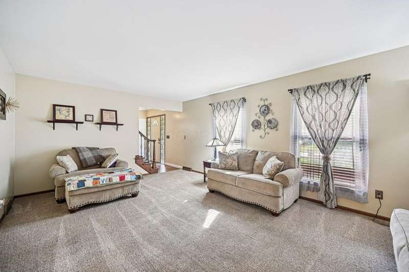 Welcome home to this beautifully maintained 4-bedroom, 2.5-bath two-story that blends comfort, style, and functionality, nestled in a cul de sac in a quiet neighborhood. Thoughtfully updated with fresh paint, updated electrical, modern lighting, and new flooring throughout, this home feels bright, open, and move-in ready. The large, spotless kitchen is the heart of the home, featuring a generous island with seating, abundant counter space, and a seamless flow into the family room, perfect for casual gatherings or quiet evenings in. A formal dining room and additional living area offer flexibility for entertaining or creating cozy, personalized spaces. Upstairs, the spacious primary suite includes a private en-suite bath and plenty of closet space. The finished lower level adds even more versatility, ideal for a home office, recreation room, or additional living area. Step outside to enjoy the shaded patio complete with a charming pergola draped in mature wisteria, an inviting spot for outdoor dining or relaxation. The two-car attached garage adds convenience, and the location can't be beat. Close to neighborhood parks, Easton, Polaris, and The Ohio State University. This home offers the perfect balance of care, character, and convenience.