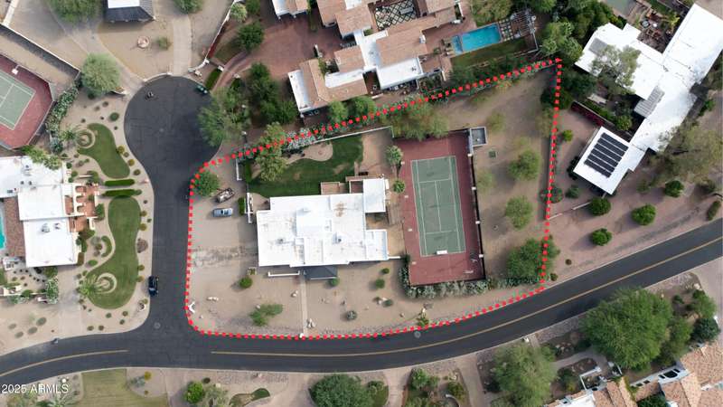 Located in the heart of Paradise Valley, this North/South-facing acre property sits on a quiet street and offers stunning Camelback Mountain views from the backyard. The existing 4,211 sq ft home features 5 bedrooms and 4 bathrooms, including an oversized 375 sq ft guest suite—ideal for a bunk room, office, or media space. The home also includes a large attached bonus room/storage that could be converted to a attached casita - plumbing already in place. Ample outdoor space to create an amazing outdoor experience. Existing tennis court is a full size doubles court measuring 120ft x 60ft. Recent updates to all secondary bathrooms, beautiful vaulted ceilings in the family room, and newer roof and HVAC systems make this a great option for someone looking for a clean, livable home with the opportunity to update and improve over time. For those looking to build or develop, conceptual plans available for a 7,500+ sq ft estate with a detached 2-bedroom casitaoffering significant upside for an investor or end-user seeking to create a larger custom estate.