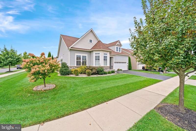 Enjoy the 55+ lifestyle now in The Village of Bayberry. Skip builder delays and construction mess-this sold-out neighborhood is ready today, not years away. Move into a meticulously maintained home filled with upgrades and natural light, offering model-level finishes and high-end upgrades throughout. You'll find 10-ft ceilings, crown molding, and hardwood floors in the main living areas. The great room with gas fireplace opens to a gourmet kitchen with granite counters, double wall ovens, gas cooktop, and an 8-ft island with seating. A large eat-in area flows to a Trex deck with retractable awning - perfect for entertaining or morning coffee. The home offers three bedrooms plus a bonus room for added flexibility - perfect as an office, den, library, or optional fourth bedroom. The primary suite features a 2-ft extension, walk-in closet, and direct deck access. Main-level laundry. Full unfinished basement with rough-in plumbing. Epoxy-floor garage with storage. Corner lot. Enjoy walking trails, open spaces, pool, clubhouse, and a vibrant social calendar - the lifestyle you want is here, ready and waiting for you.