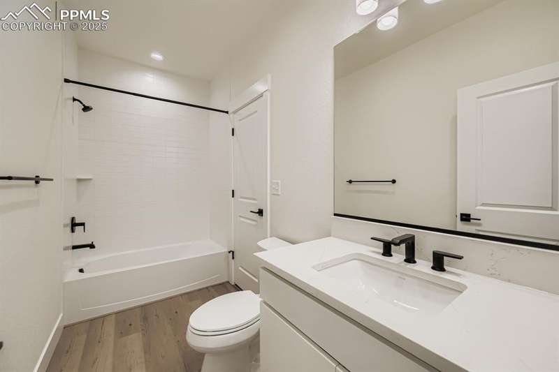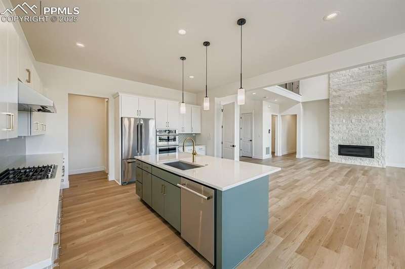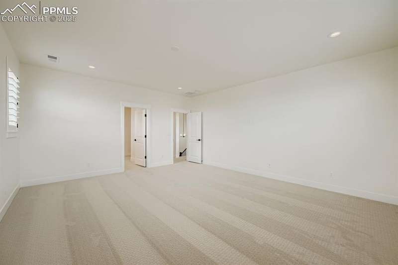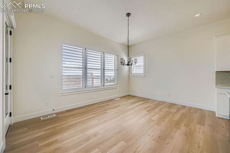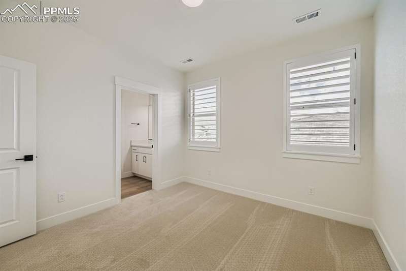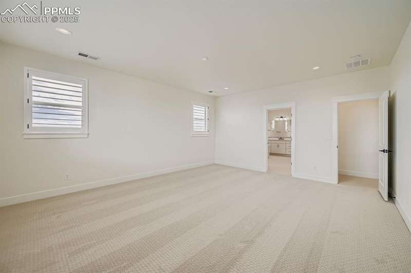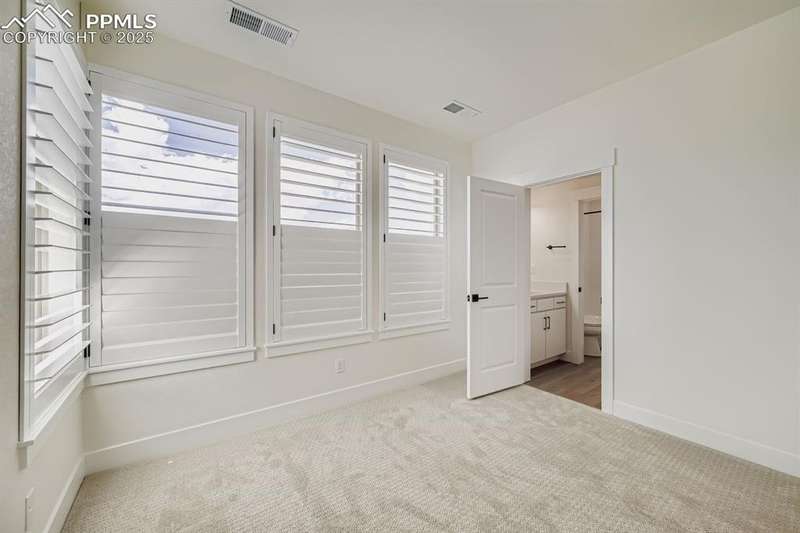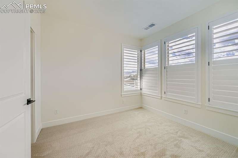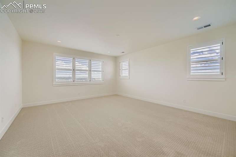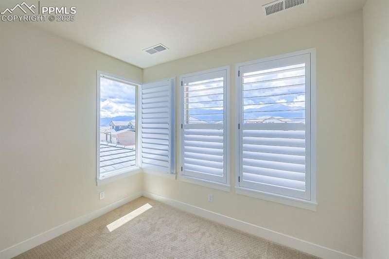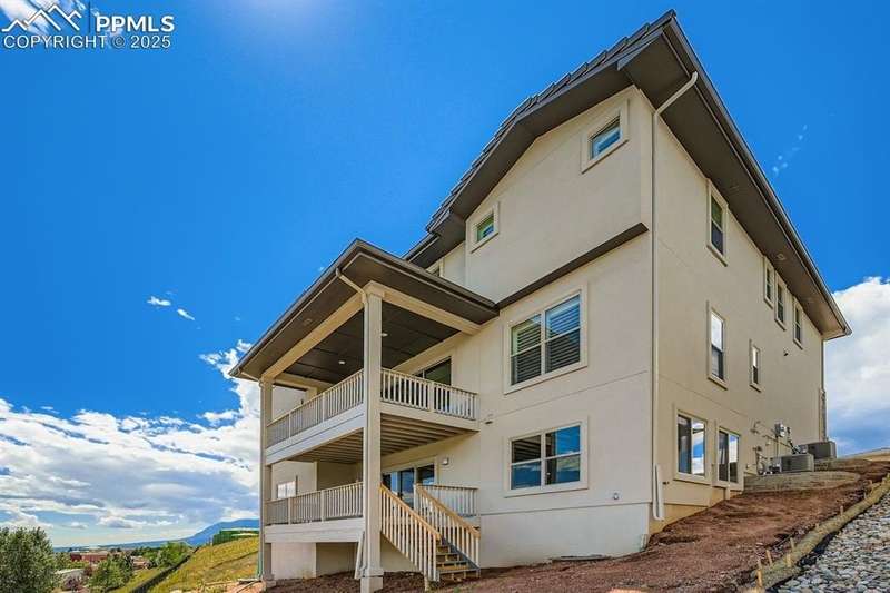 The elegantly crafted Fleetwood Prairie home features a luxurious blend of indoor and outdoor living spaces that are perfect for relaxing and entertaining. The inviting two-story foyer and extended hallway flow past the private office to the grand, two-story great room with alluring views of the city, beyond the expansive covered patio. Don't miss the beautiful Eldorado white elm stone, floor-to-ceiling fireplace! The carefully designed kitchen, overlooking a bright, casual dining area, features JennAir appliances, a sizable walk-in pantry, as well as ample counter and cabinet space that surrounds an oversized center island with a breakfast bar. Highlighting the superb primary bedroom suite is an impressive 16x10 walk-in closet and a primary bath enhanced with dual vanities, a large soaking tub, a luxurious shower, linen storage, and a private water closet. Secondary bedrooms, one with a sizable closet, sharing a hall bath and two with walk-in closets and a private shared bath, are central to a versatile loft space. The second floor also features easily accessible laundry, while another bedroom with Pikes Peak views and bathroom can be found off the loft space. A large unfinished basement offers a separate walkout deck and provides additional room for storage. HOA dues include manned security, snow removal on private streets & trash removal. Walking distance to the Garden of the Gods Resort and Kissing Camels Golf Club, which offers numerous amenities including spa, gym, swimming pools, hot tubs, pickleball & tennis courts, and fine dining, with club membership. Plentiful hiking & biking trails close by. Excellent location only minutes from downtown, Manitou Springs, & Kissing Camels Golf Club. Rare opportunity to acquire a view property in exclusive Red Rock Point at Kissing Camels. One of the last new homes available in Kissing Camels!