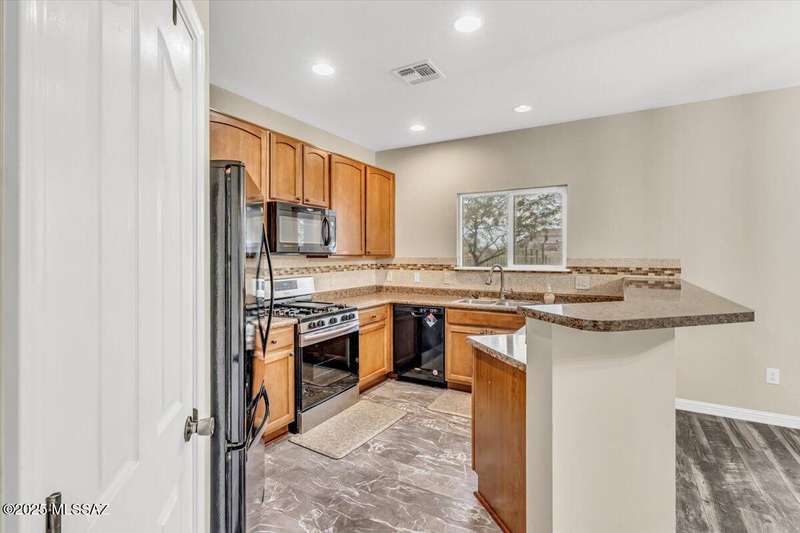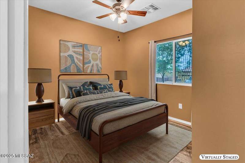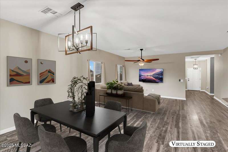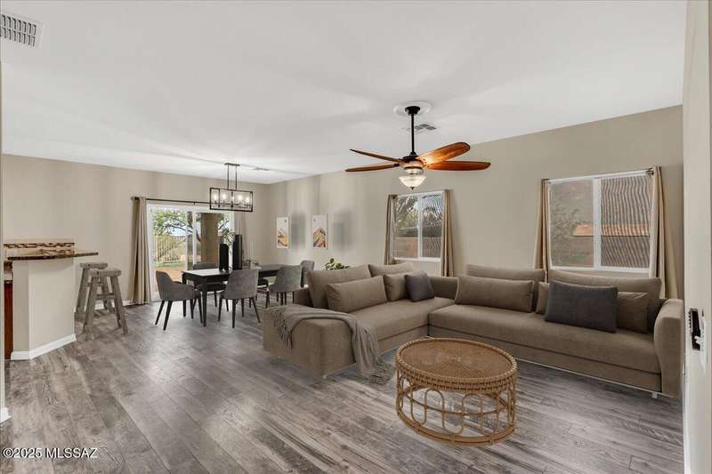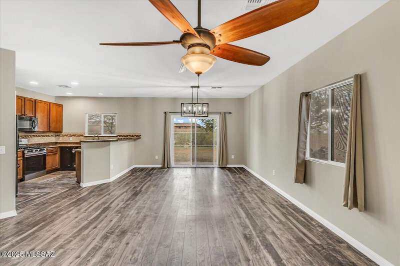 Beautifully maintained 3-bed, 2-bath home with a versatile den offers the ideal blend of comfort, style, and Arizona living. Located in the desirable Vail School District, this property provides the space and features you've been searching for. Enjoy the privacy of no rear neighbors and take in the stunning desert and mountain views through the see-through fencing in the backyard. Whether you're relaxing under the covered patio or entertaining guests, you'll appreciate the peaceful open vistas and the connection to nature right outside your door. Inside, you'll find a bright and welcoming layout with an open-concept living area, a well-equipped kitchen with ample storage, and a spacious primary suite with its own private bath. The additional bedrooms and den offer flexibility for guests.
