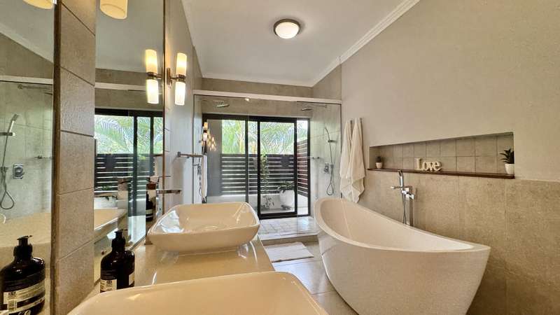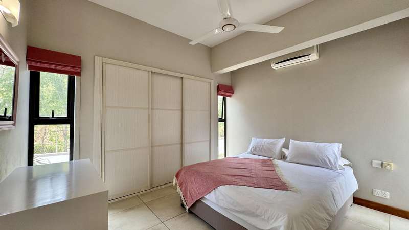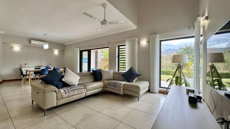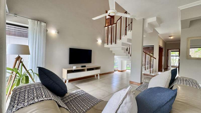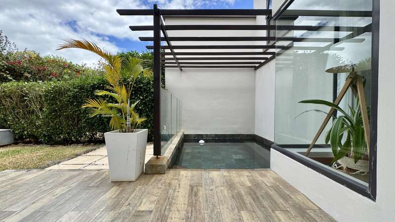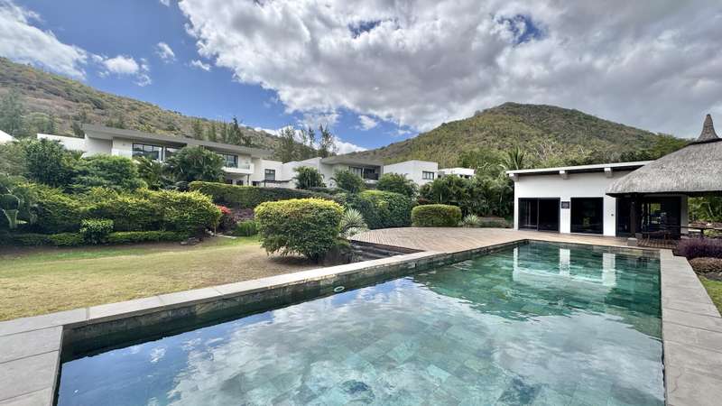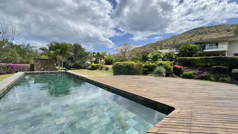 Sheltered by the dramatic peaks of Black River, this semi-detached villa embraces the spirit of Mauritian living. With 309 sqm of refined space, a private pool, and access to lush communal grounds featuring a gym, children’s play area, and additional pool, it offers a lifestyle that balances serenity and sophistication. Stepping inside, tranquility and tropical greenery set the tone. The ground floor revolves around a sun-filled, air-conditioned living area that flows effortlessly onto a covered veranda and a serene terrace ideal for entertaining. The open-plan kitchen is both elegant and practical, complete with a scullery, laundry room, and discreet service courtyard. Upstairs, a bright central landing provides a versatile lounge space for TV, reading, or play. Three additional en-suite bedrooms ensure quiet comfort, including a generous primary suite with private balcony overlooking the garden. Its bathroom is a highlight: double vanity, walk-in shower, soaking tub, and natural light. A hidden storage room, private parking, generator, water tank, and full southern exposure round out the everyday conveniences. The estate is secured and impeccably maintained by a responsive property manager. Available for purchase under the RES scheme . A rare home for those seeking harmony between mountain and sea, minutes from amenities. Contact DIANE WATKINS – Property Consult for a private viewing!
