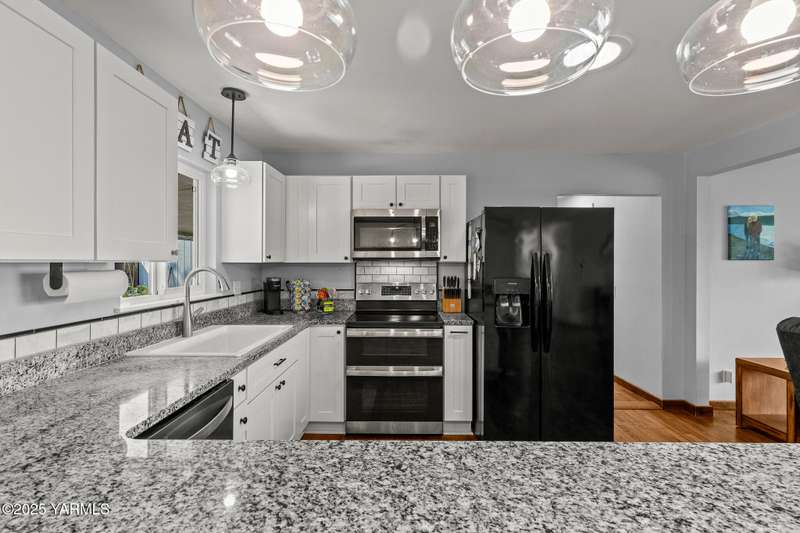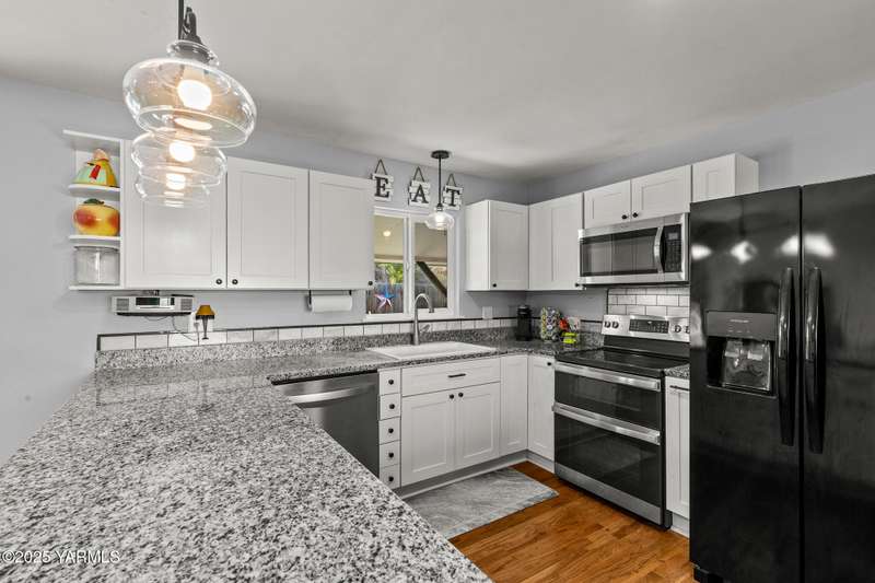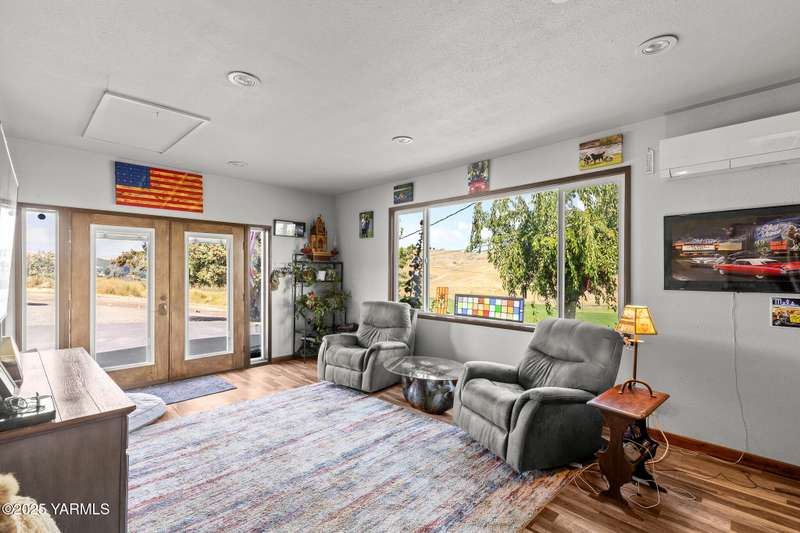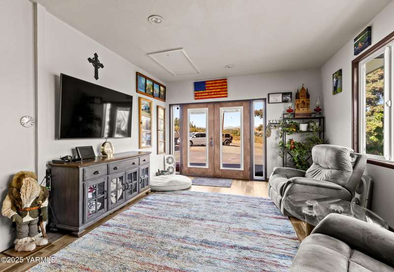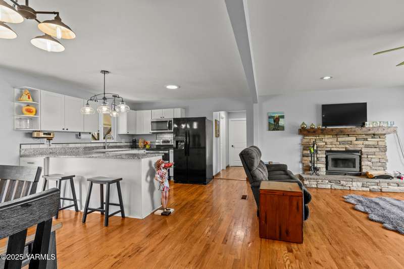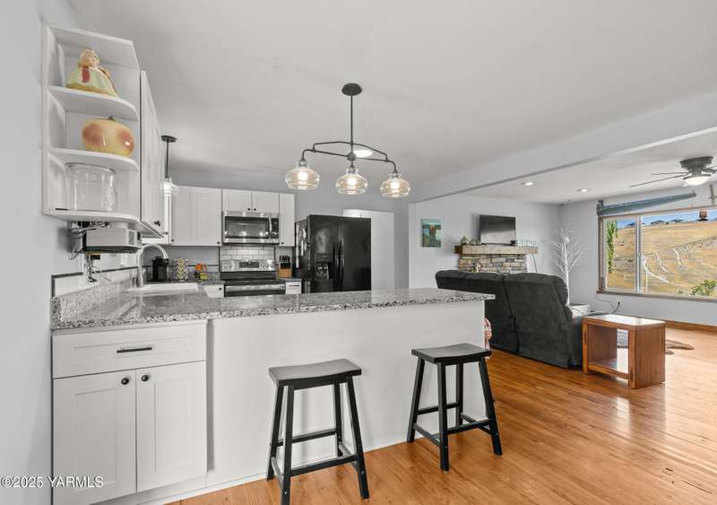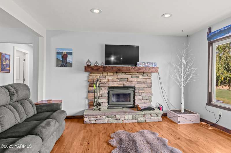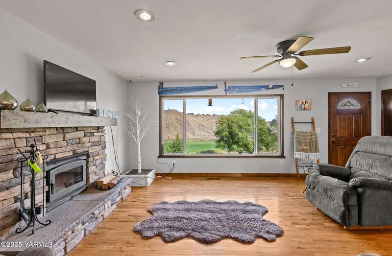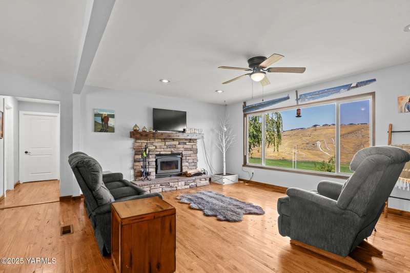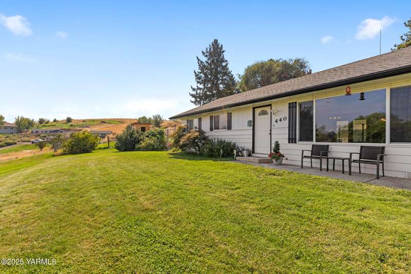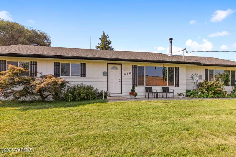 Welcome to 440 Lynwood Lane, a stunningly serene 4-bedroom, 2-bath home perched atop a hill with seemingly endless valley views. This turnkey property is an idyllic sanctuary ready for new owners. Step inside and be captivated by the gleaming wood floors and the natural light that fills the open space. The remodeled kitchen features brand-new appliances, ready for culinary creations. With two separate living rooms, there's ample space for entertaining guests or simply relaxing. Three bedrooms on one end of the home including the private primary ensuite with a completely remodeled bathroom and a custom tile shower. The second full bathroom has also been beautifully updated with its own custom tile shower. The fourth bedroom, located on the opposite end of the house, offers extra privacy, built-in storage, and an additional closet. Outside, the property is an animal lover's dream, with two dedicated, contained spaces perfect for chickens, goats, or other farm animals. The backyard is an entertainer's paradise, fully fenced with a covered deck and a cozy firepit area, all set against the breathtaking backdrop of the valley. This home has been meticulously updated with a brand-new roof, new interior and exterior paint, and a new mini-split HVAC system, ensuring comfort and peace of mind. A large, detached two-bay shop provides plenty of storage and workspace. Located close to everything in Selah, this showstopping home offers the perfect blend of serene country living and convenient access to town. Don't miss your chance to own this extraordinary property.