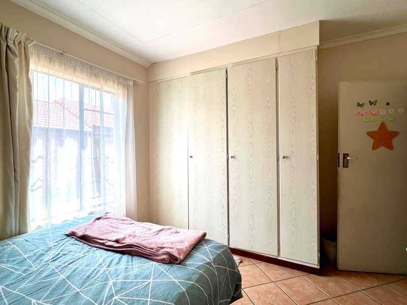 EXCLUSIVE mandate This spacious two bedroom two bathroom simplex in Mooikloof Ridge Estate is a must see!! The property features: A double garage Spacious garden A covered veranda adjacent to the TV room The kitchen already has a gas hob installed - a lovely addition to any kitchen should the power be off The living areas and the kitchen forms part of one large open plan space. Both bedrooms have their own spacious bathroom. Should there ever be the need to invite many friends over, you have to option to make use of the clubhouse, where you'll find: - 2 swimming pools - communal braai facilities - a tennis & volley ball court - more jungle gyms Make contact to arrange a viewing appointment!