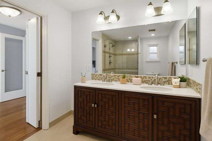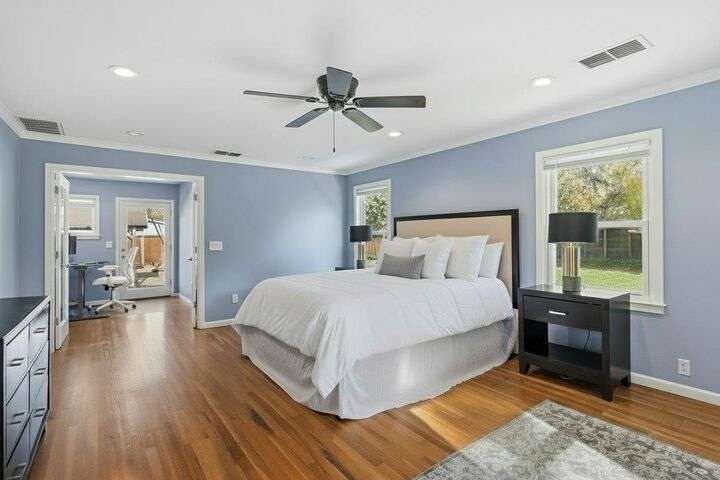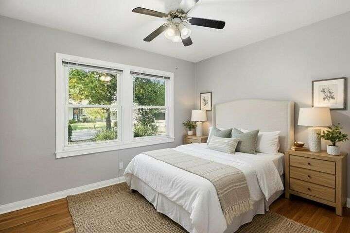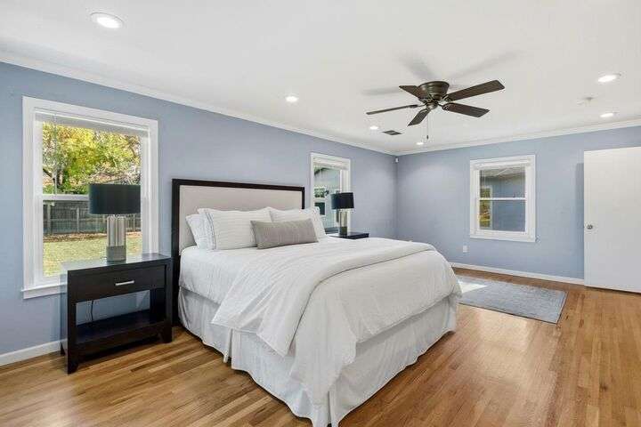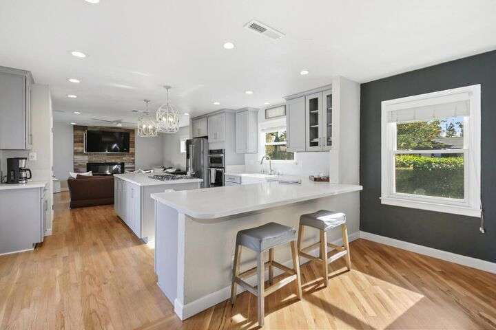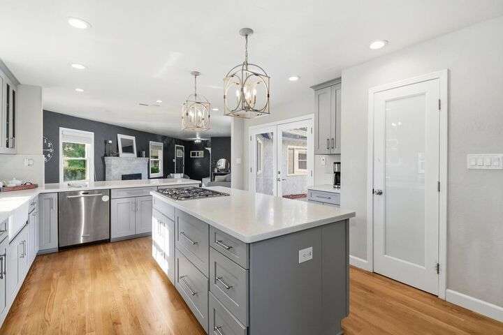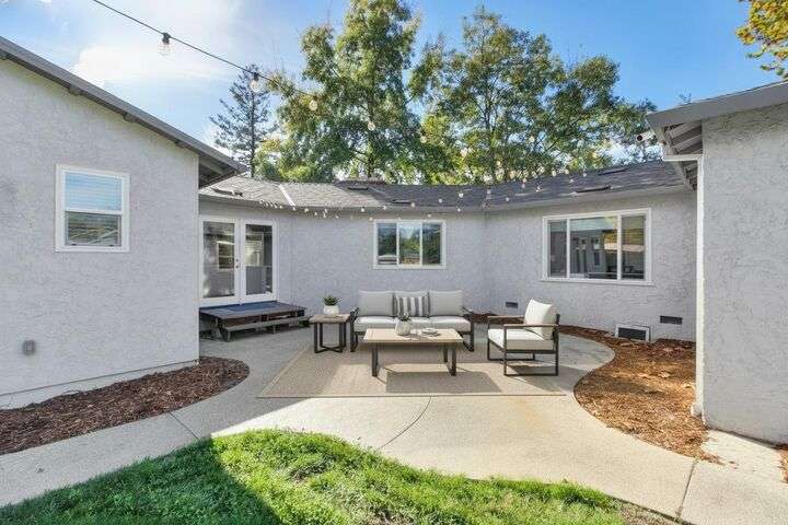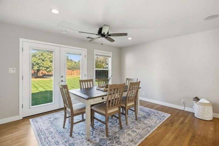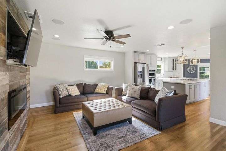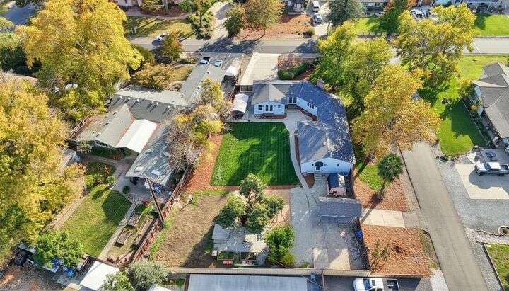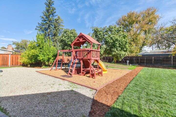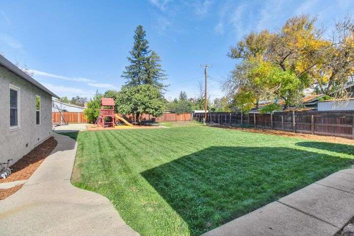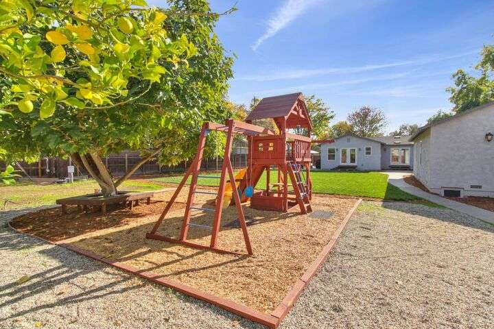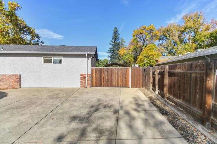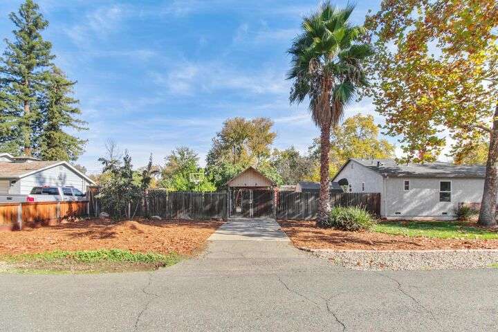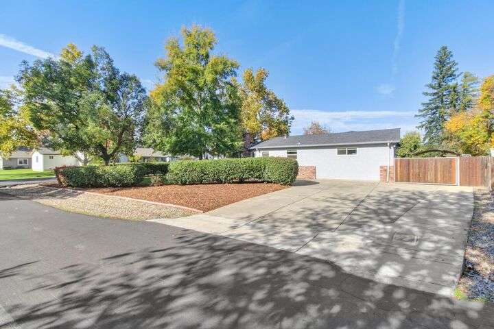 Designed for modern family living, this nearly half acre corner property gives you room to spread out, connect, and grow. In the heart of the home is a kitchen that looks like something out of a House Beautiful Magazine. Both the living room and family room have fireplaces, offering flexible spaces for movie nights, game days, and gatherings. Hardwood floors run throughout, keeping things warm and lovely. With 3 bedrooms, including 2 large primary's, everyone gets comfort and privacy. One of the primary suites offers a space for projects, hobbies, or work from home days. The backyard is built for real life. A large patio for celebrations and BBQ's, a play structure ready for climbing and adventure, and tons of space to add a future pool. Fruit trees, lemon, pomegranate, & fig, bring color and flavor to your backyard and the raised garden beds are ready for you to make your own. Two driveways offer ample parking for guests, RV's and more. All set in an old fashioned neighborhood where people walk their dogs and wave hello. Just around the corner from Del Paso Golf & Country Club. It's a beautiful home with modern comfort and real space where daily life fits. This one really is Home Sweet Home.