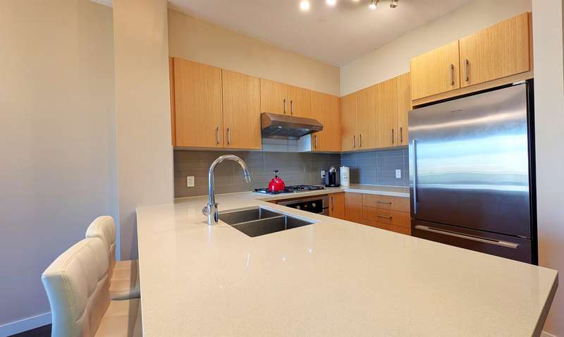 Great opportunity to own this gorgeous 2 bedroom Penthouse built by Polygon, located in Vancouver's River District. This lifestyle change is what you've been waiting for, minutes walk to the boardwalk & open space. A plethora of amenities to walk to for your daily routine from professional services, to grocery shopping or enjoying time with family & friends at your favourite restaurant on the water's edge. Look forward to the new Sports Field with over 250,000sf of activities for the family. This sunny bright home has been meticulously maintained, open floor plan with up to 11' high ceilings, functional built-in shelving in the den & appreciate the finishing with granite counters, laminate flooring, gas stove, stainless steel appliance package & a peek-a-boo water view off your balcony.
