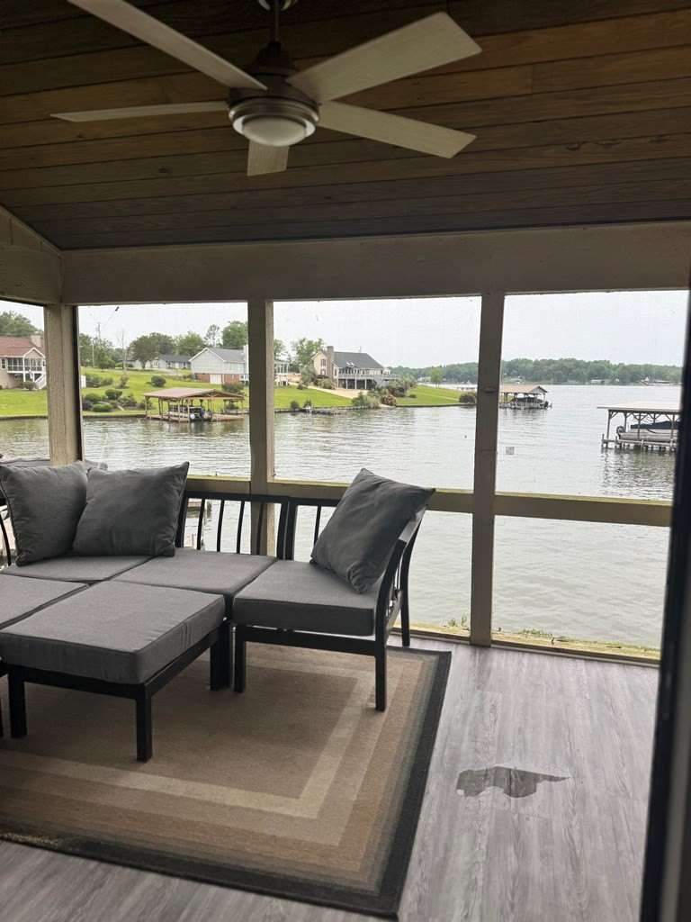 Rare lakefront find within minutes to Greenwood! Low maintenance and remodeled beautifully! This four bedroom , 2.5 baths on three levels gives a spacious floor plan so close to the water, you feel as if you're ON the water! The primary features a private balcony, a rear deck that spans across the living and kitchen , new riverstone shower, and a covered patio just a step from the walk out basement. Gorgeous ample lake views can be seen from almost every room! HOA dues include community boat dock, locked boat storage, boat ramp, pier, and lawn care. Enjoy peaceful lakefront living in this fully remodeled 4-bedroom, 2.5-bath townhome located less than 10 minutes from Greenwood. This end unit townhome offers beautiful lake views, multiple outdoor living areas, and direct access to Lake Greenwood. Interior Highlights: 4 bedrooms / 2.5 bathrooms Fully remodeled interior Stainless steel kitchen appliances Open layout with modern finishes Updated flooring, paint, fixtures, and lighting Outdoor Features: Screened-in porch with lake front view Covered patio on lower level Two-car garage Access to community dock and slips Grass lawn leading to water Location: Desirable Lakefront community 10 minutes to Greenwood Quiet neighborhood with green space and water access, boat storage, boat ramp, and dock.