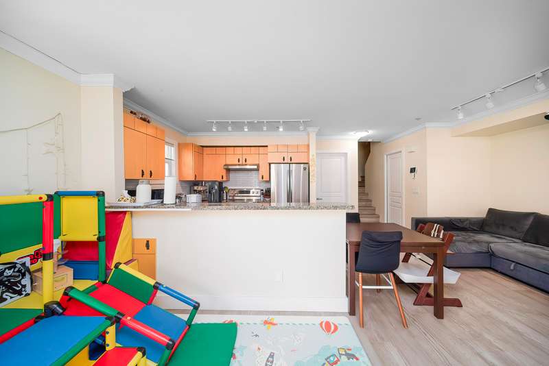 Welcome to Ledgestone 2 built by award winning developer ADERA! MOVE IN CONDITION! This well built complex is a 10 min walk to EDMONDS SKYTRAIN & 5 min to Taylor Park Elementary School w/ playground. Steps to Byrne park, w/ great biking & walking trails. Centrally located 15 yr complex w/ a NEW ROOF! Bright END Unit w/ a variety of RENOVATIONS: NEW ENGINEERED HARDWOOD FLOORING, NEW CABINETS:MASTER EN-SUITE BTH The bright main floor has 9 foot ceilings, crown moldings & Large bdrm. 0PEN CONCEPT kitchen w/ granite counters, breakfast bar, lots of cabinets & NEW SAMSUNG/LG APPLIANCES. 2nd floor has 2 large bdrms w/ master featuring a SPA-LIKE FULL BTH w/ NEW CABINETS, GRANITE COUNTERS! AMAZING ROOF TOP DECK FACING GREENBELT.