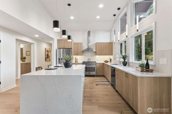 Just blocks from historic downtown Issaquah on Squak Mtn, this stunning home has been dramatically remodeled by its long-time owners w/exceptional care & style. Welcome to a beautiful, massive great room w/engineered hardwoods, anchored by a floor-to-ceiling tiled gas frplc. Expansive new windows frame the beauty of trees & mountain, offering peaceful views & abundant natural light. And the kitchen! You will love cooking, eating together, entertaining & building lasting memories in this incredible space! Gorgeous main-level primary suite features huge walk-in closet & lux new bath w/wall-hung vanity + quartz, soaking tub & gorgeous tiled walk-in shower.LL w/large office + family rm w/built in cabinetry & wet bar.New driveway & so much more!