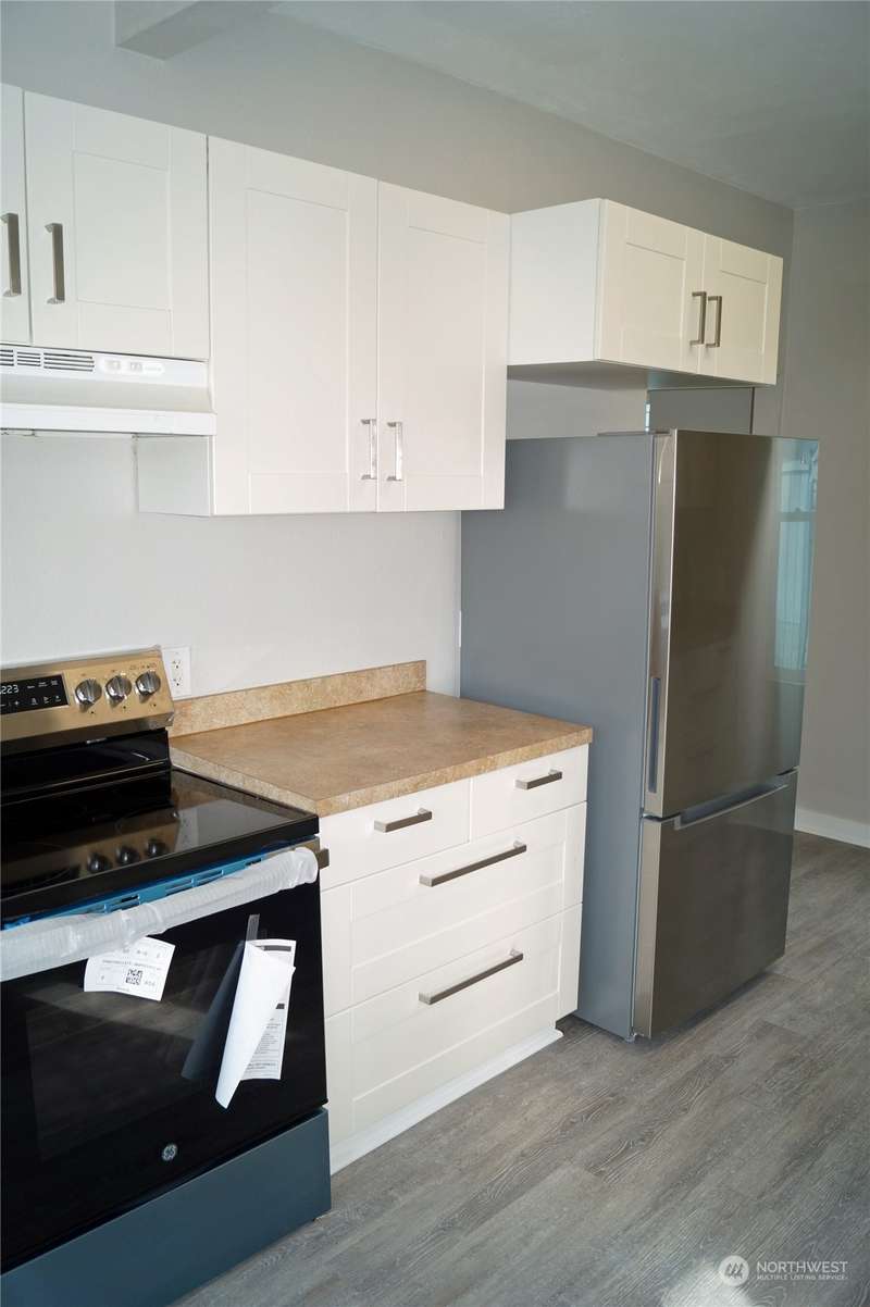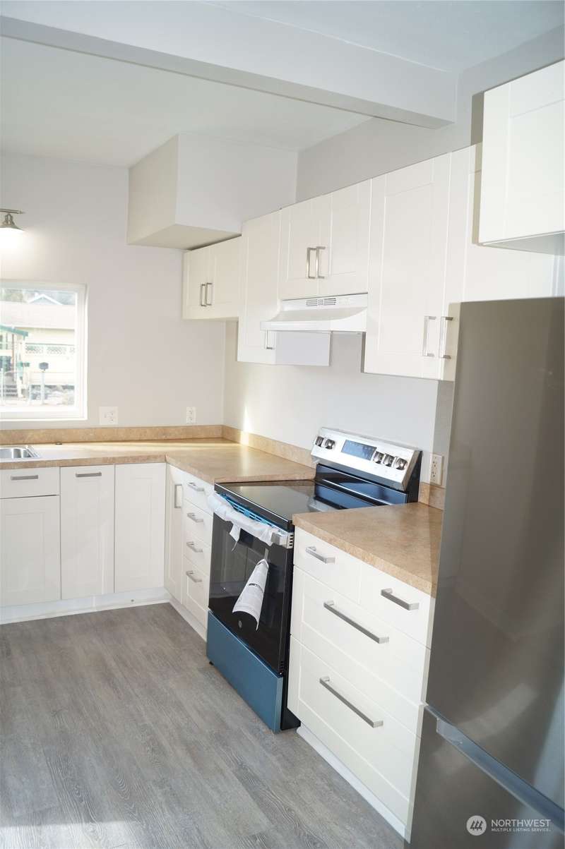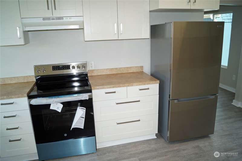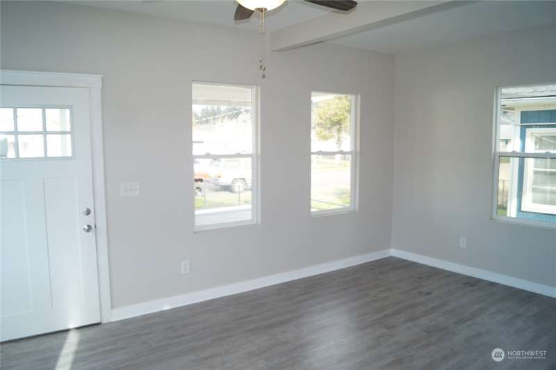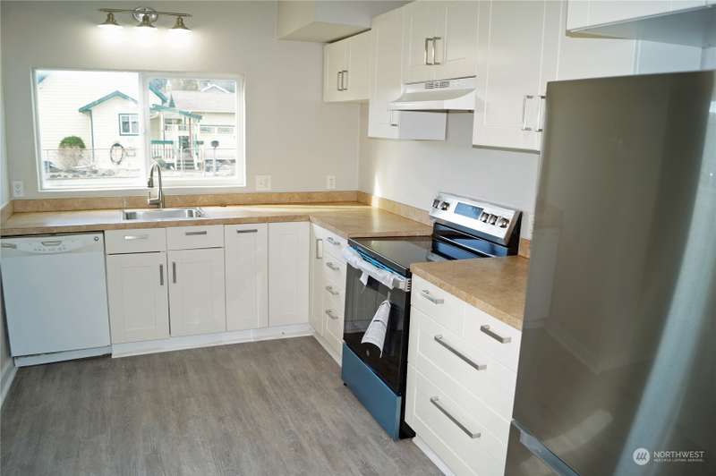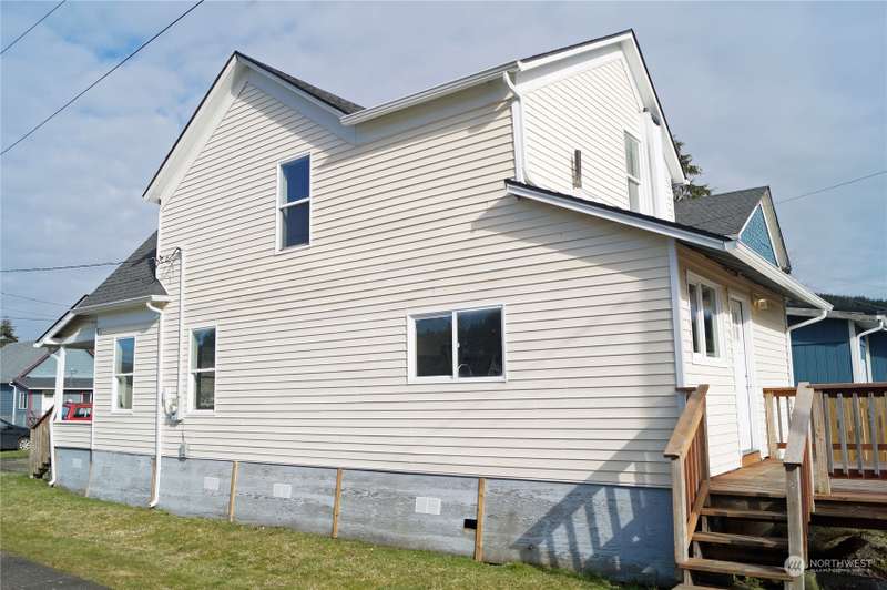 Nicely remodeled 3 bedroom, 1.5 bath home in Hoquiam. Brand new kitchen stove and refrigerator. Newer windows; kitchen cabinets; lights; paint. Corner lot with covered front porch. Alley access. New backyard lawn installed 4-10-2025.
