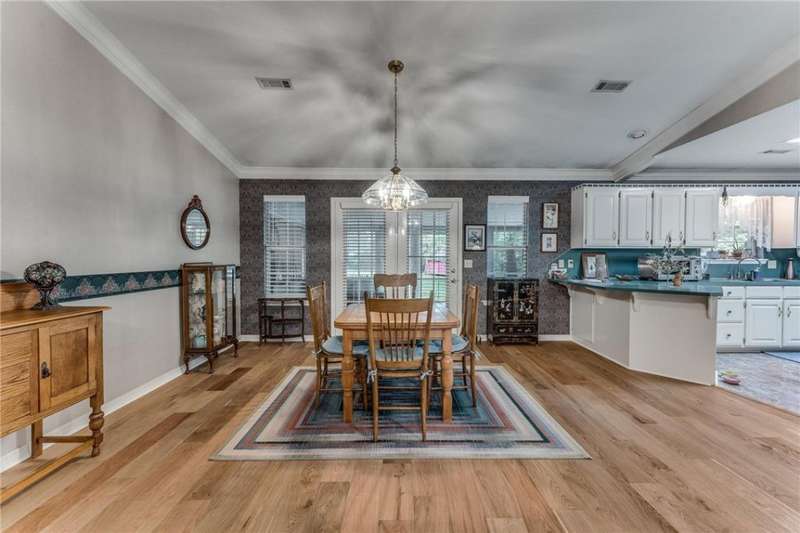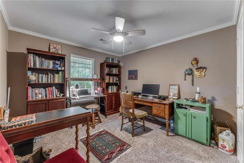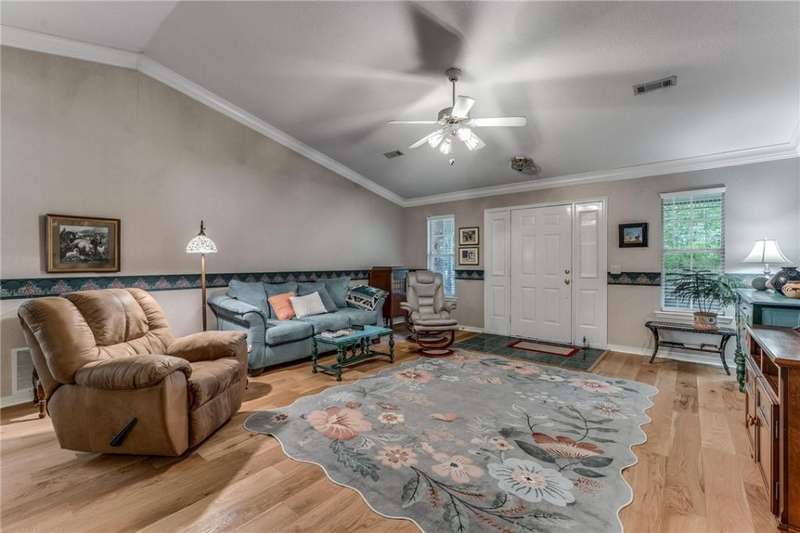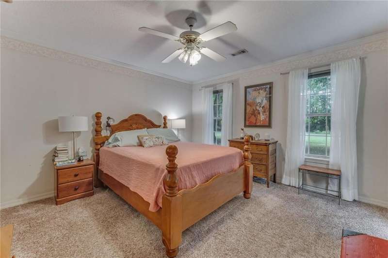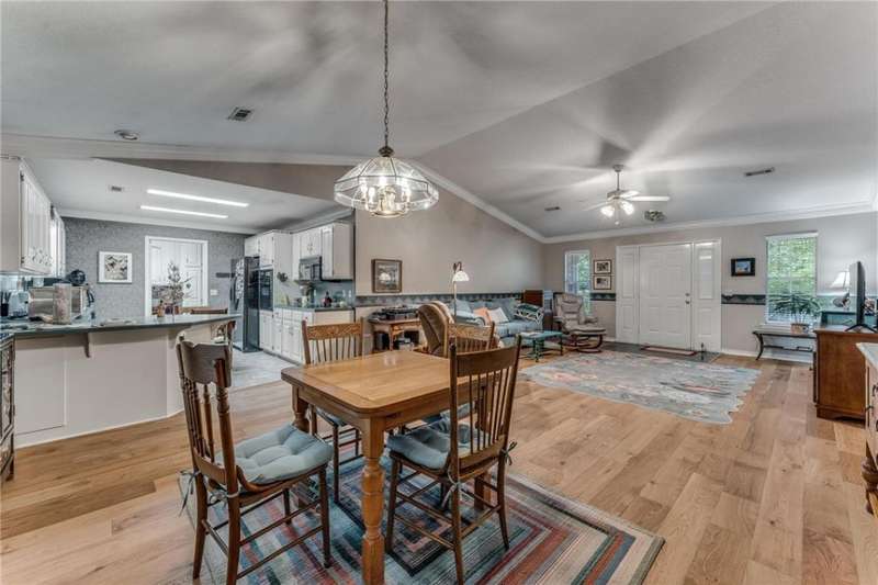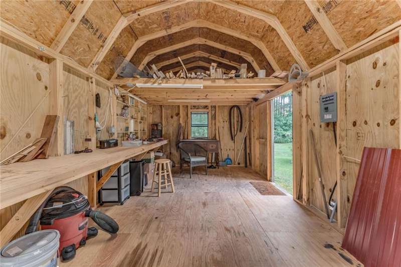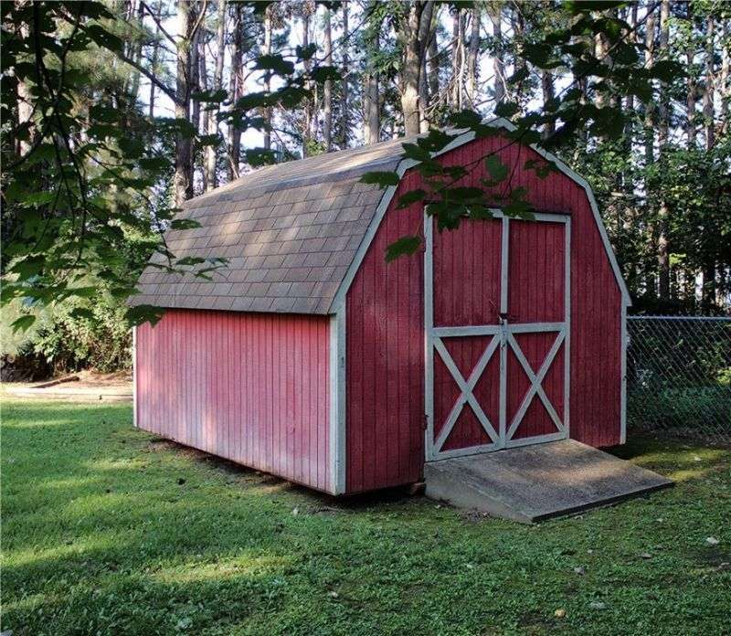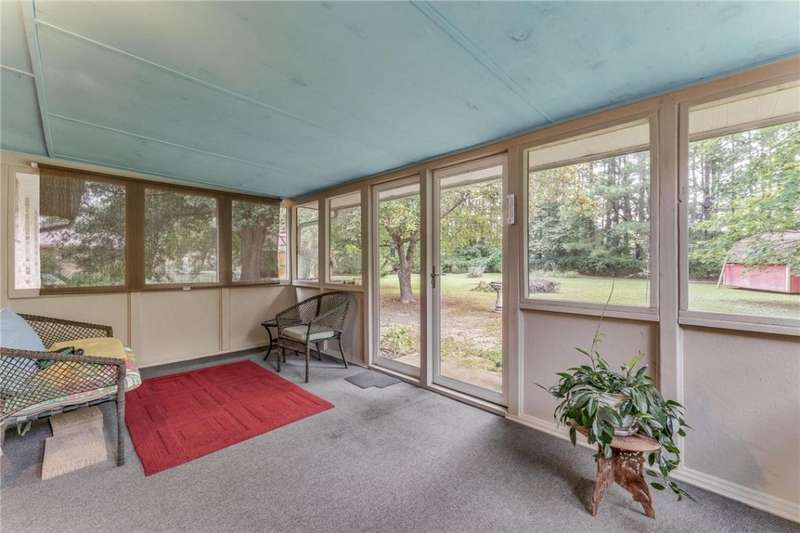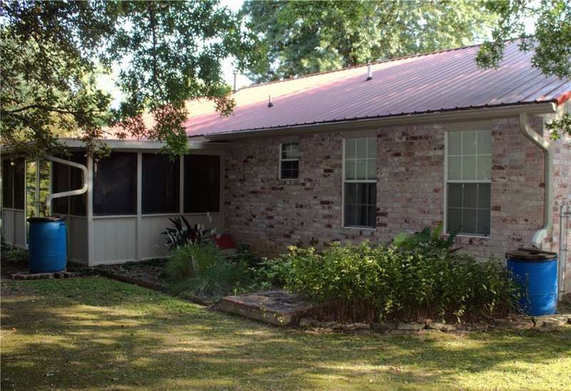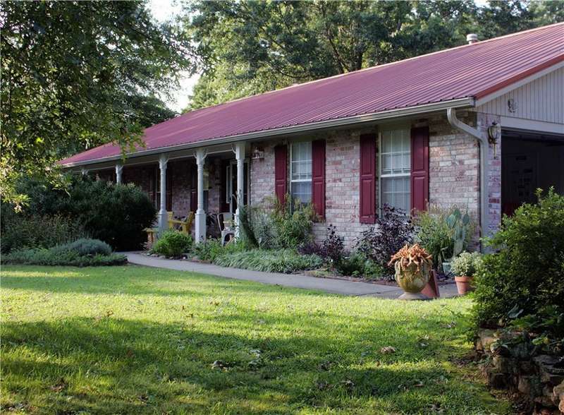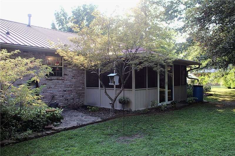 Charming Dollhouse: Tucked away behind towering mature trees, this one-level 3 bedroom, 2 bath home (plus a bonus shower in the mudroom) offers both charm and modern updates. Sitting on nearly an acre of park-like grounds, it the perfect blend of comfort and functionality. Step inside to an open floor plan where the living, dining and kitchen flow seamlessly together, ideal for everyday living or entertaining. There is a screened porch off the dining area. The brick exterior is complemented by a new metal roof, new gutters w/ leaf guards, HVAC and water heater. Outside, you'll find a shop w/ electricity, plus two greenhouses, one is powered and ready for your projects or gardening dreams, and a storage building for mower & equipment. Washer, dryer and refrigerator and wardrobe in primary bedroom all convey w/ acceptable offer, making this home move-in ready. With its private setting, modern upgrades, and versatile outdoor spaces, this home is truly a MUST SEE!