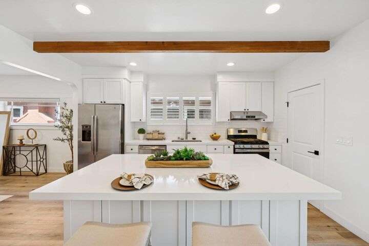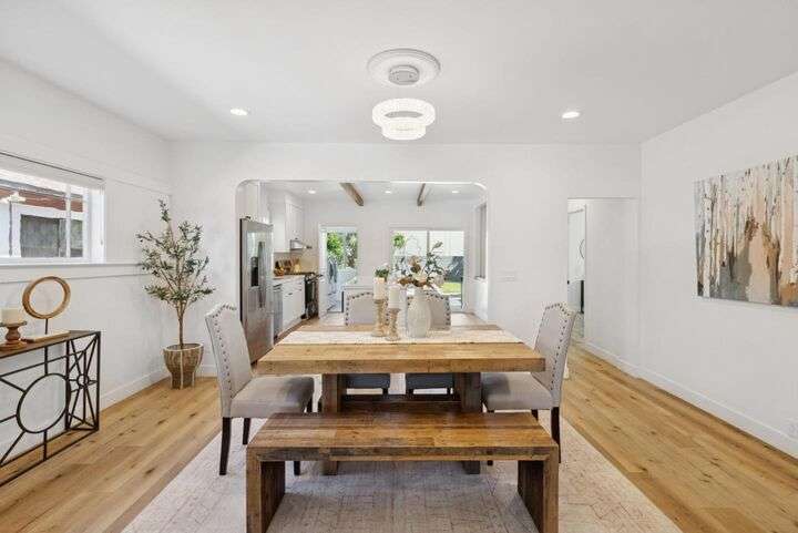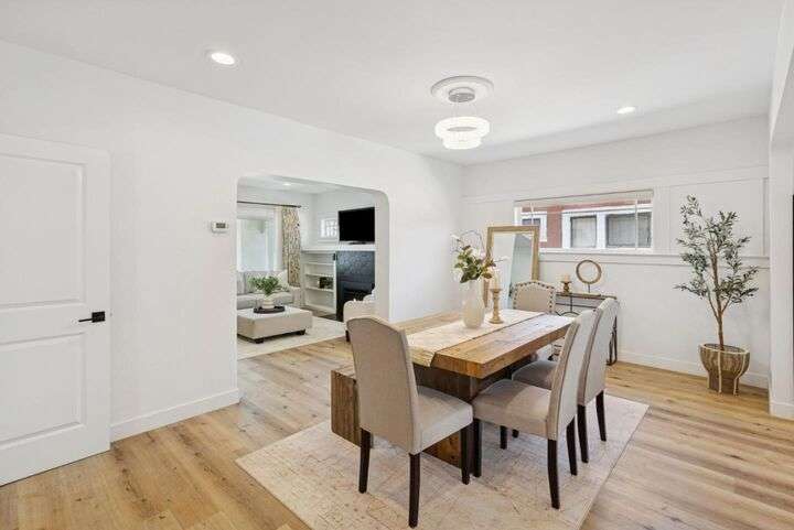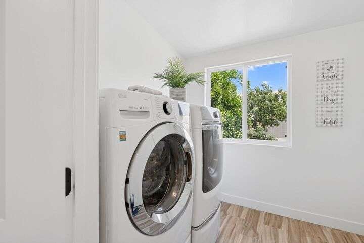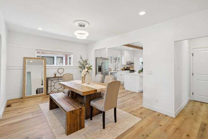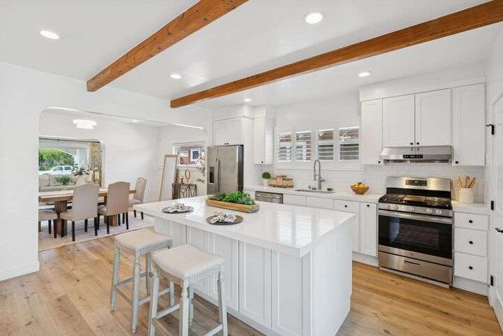Beautifully remodeled single-story home in the heart of Silicon Valley! This 3-bedroom, 2-bath residence offers an open and inviting floor plan with 1,470 sq ft of stylish living space. The contemporary kitchen features white shaker cabinets, sleek quartz countertops, and stainless steel appliances, perfect for both everyday living and entertaining. Enjoy modern upgrades throughout, including laminate flooring, recessed lighting, central AC and heat, and tastefully updated bathrooms. A separate laundry room with washer and dryer adds convenience, and the bonus basement provides extra storage or creative space. Step outside to a spacious backyard with low-maintenance landscaping, ideal for relaxing or hosting guests. Situated just minutes from Downtown San Jose, SJSU, SAP Center, and major tech employers including the proposed Google campus. This turnkey home is move-in ready and waiting for its next owner!