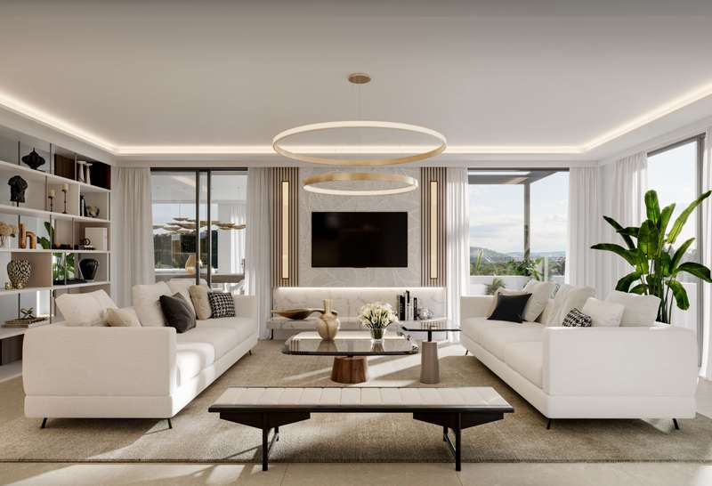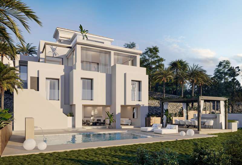 Located in the beautiful grounds of Los Naranjos Hill Club, this stunning newly developed Andalusian style villa stands out from the crowd. Ultimate privacy is ensured in this privileged location, where the home is set in a gated complex of villas, in a secure and blissful environment. Inside the home, a fresh and inviting atmosphere runs throughout, where warm tones create a cosy atmosphere with masses of natural light. A double living area makes for the perfect entertaining space, or a place to unwind with your loved ones. 5 bedrooms, each of which has its own ensuite bathroom with underfloor heating, ensuring privacy for each individual in the home. There is also an additional studio bedroom, which has its own independent access. The master bedroom is something to behold. With 47sqm of private terrace space, enjoy your morning coffee here while the sun rises, and watch the ocean glisten in the distance. This is the most peaceful of master suites, somewhere where anyone will lo