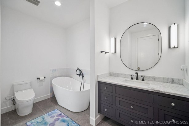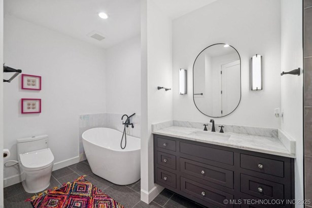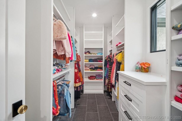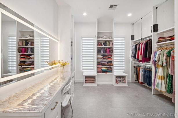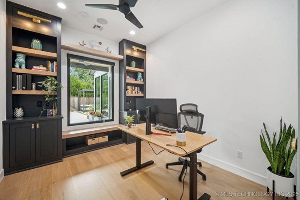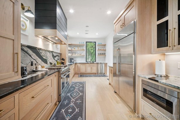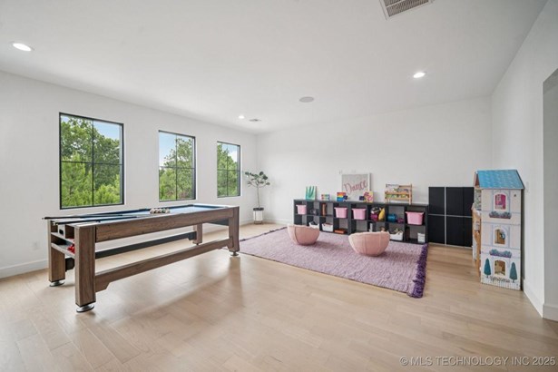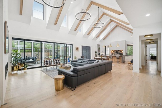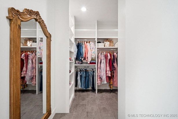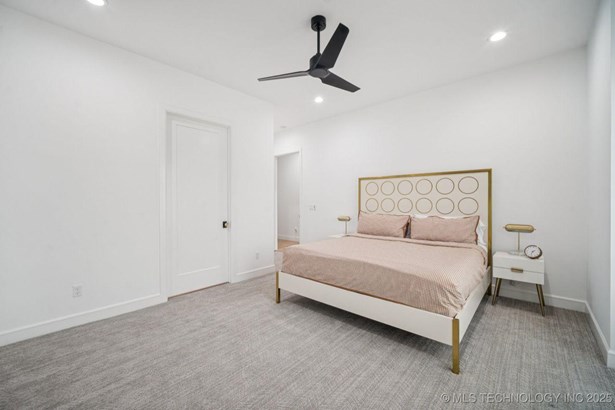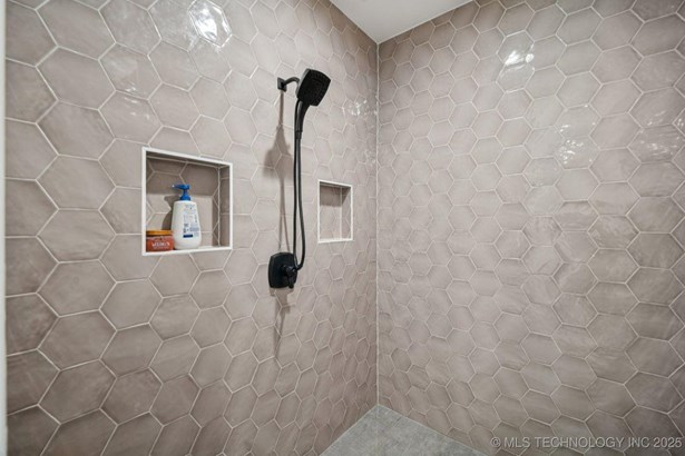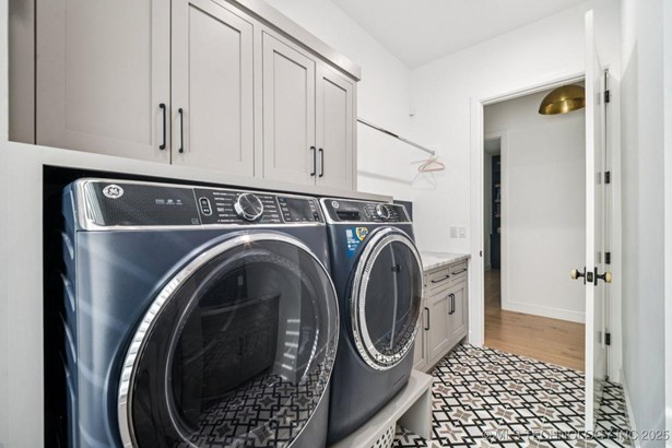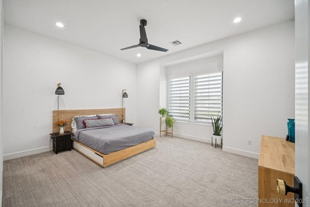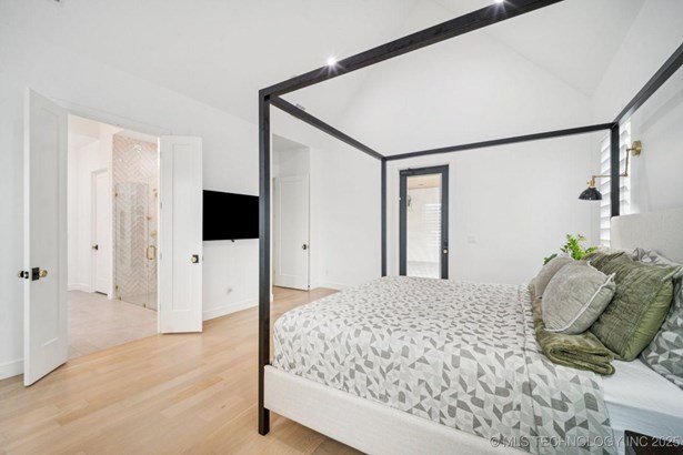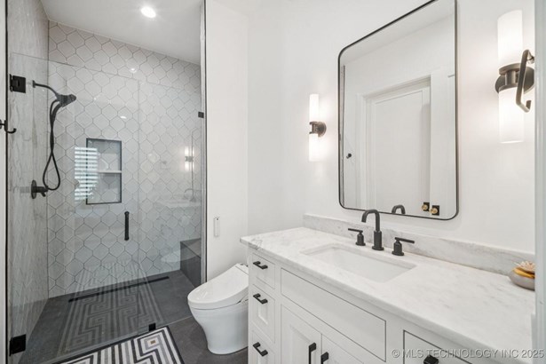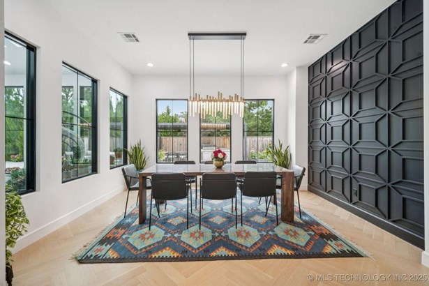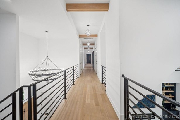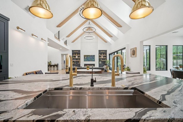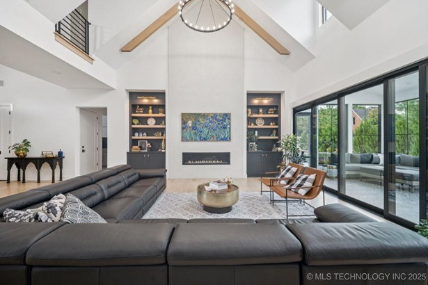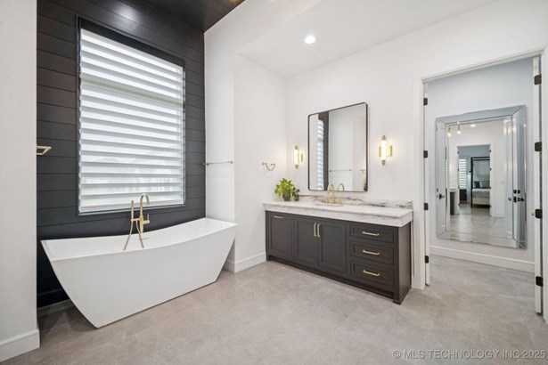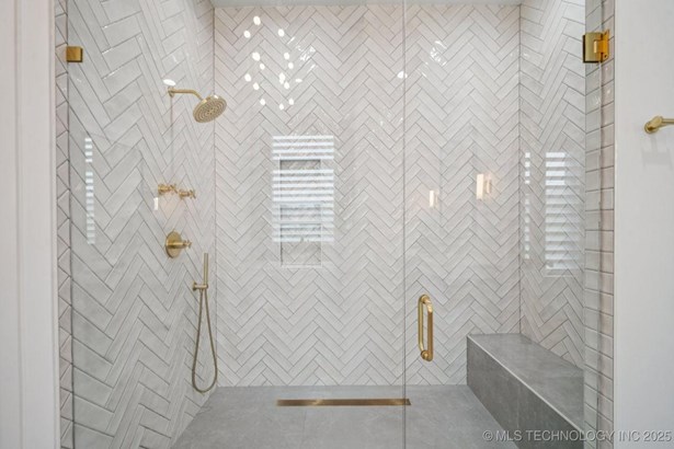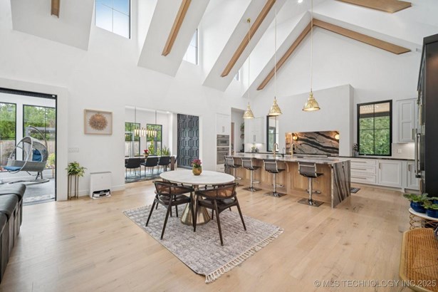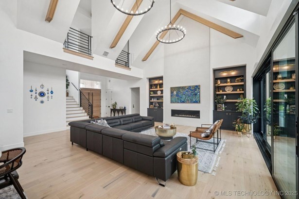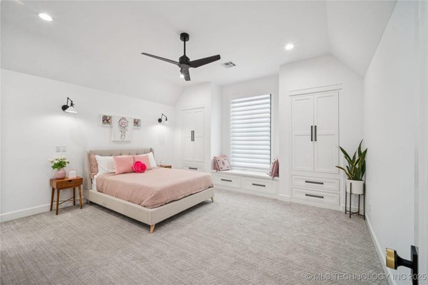 Modern Eco-Luxury Smart Home with Solar, Tesla Powerwall, Pool & Resort-Style Outdoor Living. Built in 2023, this modern estate combines contemporary elegance, energy efficiency, and future-ready technology. A striking exterior and lush evergreen landscaping welcome you inside, where soaring ceilings and floor-to-ceiling windows fill the home with light. The main level offers a designer kitchen with Thermador appliances, prep pantry, and reverse osmosis system-perfect for both everyday living and entertaining. Flexible living spaces include 5 bedrooms (all with ensuite baths + walk-in closets), 6 bathrooms, office, gym, enclosed sunroom, theater with wet bar, game room, hobby room, and dual laundries. A future elevator shaft and storm shelter add comfort and peace of mind. Step outdoors to a private resort retreat: sleek pool with spa, shaded pergolas, outdoor kitchen, covered patios (including a private patio off the primary suite), mature oak trees, raised garden beds, fruit trees, and drip irrigation. Smart features include rooftop solar panels, Tesla Powerwall, whole-home audio, integrated security with surveillance, motorized shades, wall iPorts, and EV-ready outlets in the oversized epoxy-finished 4-car garage. Located in the award-winning Bixby School District, this property blends sustainability, innovation, and luxury into one lifestyle. Special Features: Solar Panels Tesla Powerwall EV Charging / 4 car Smart Home Whole-Home Audio Motorized Shades Chef's Kitchen + Full Prep Kitchen / Pantry Theater Gym Sleek Pool & Spa Outdoor Kitchen Pergolas Seamless Indoor / Outdoor living Storm Shelter Future Elevator Shaft Dual Laundry Irrigated Raised Gardens Private Primary Patio. Be sure to view the video (https://iframe.videodelivery.net/5d62837dbdb4c3eabbff880f08a89753)