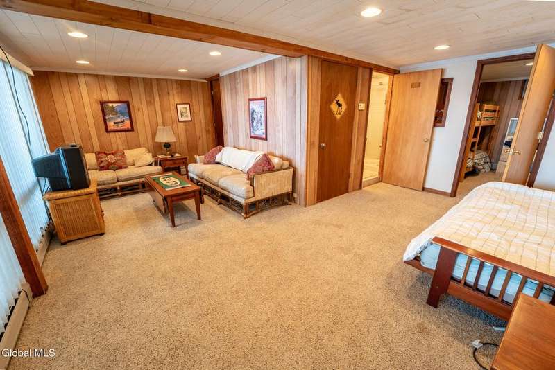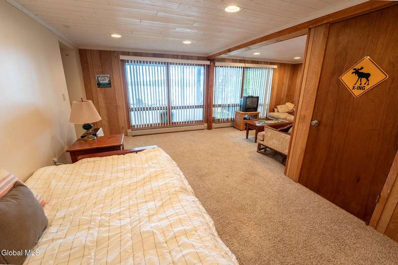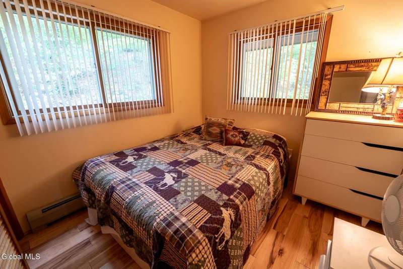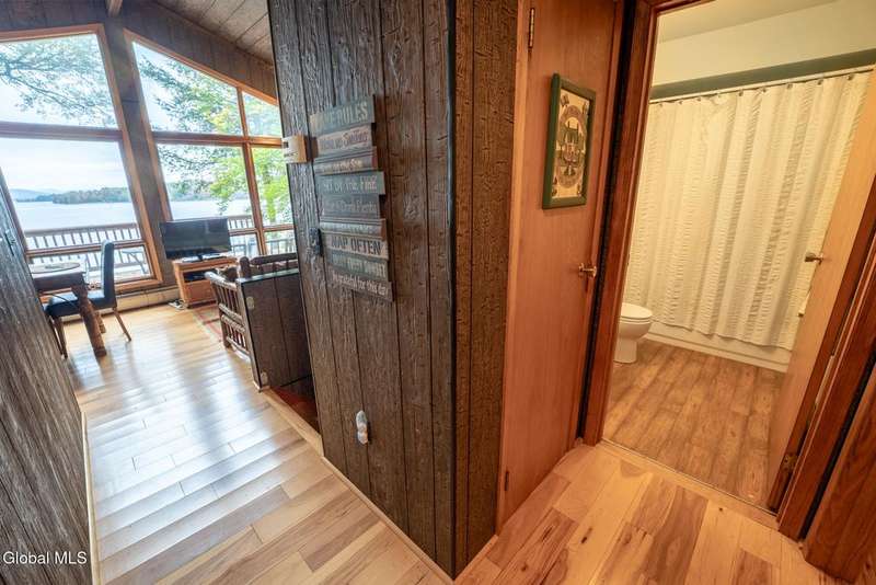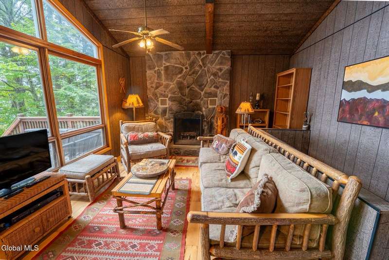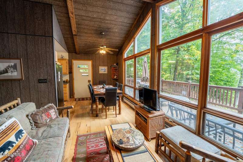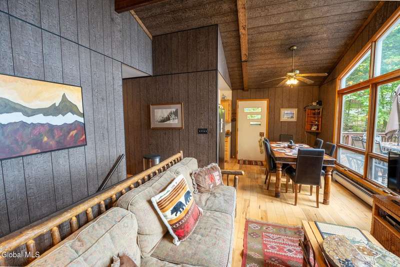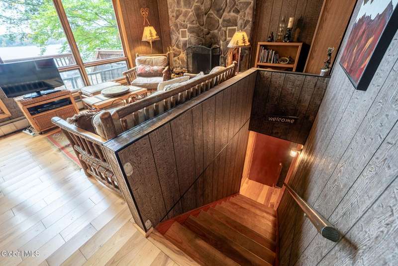 Nestled on the shores of Lake Pleasant, this year round 3-bedroom, 2-bath cabin offers 120 feet of direct waterfront, including sandy beach and an aluminum dock. The home features an open floor plan with wall to wall glass on the lake side and a spacious wraparound deck with abundant lake and mountain views. Vaulted ceilings, wood floors and a wood-burning fireplace complete the Adirondack charm of this home. The finished walk-out basement expands your living space with a large family room overlooking the water, a second full bath, and a bonus bedroom?perfect for guests or a private office. A paved driveway makes for easy year-round access. Just minutes from the Village of Speculator and Oak Mountain Ski Center, this property offers four-season recreation in a serene, private setting. The area provides easy access to snowmobile and hiking trails throughout the Adirondack Mountains. Whether you're seeking a weekend retreat or a year-round residence, this lakeside classic is a rare opportunity to own a piece of the Adirondacks.