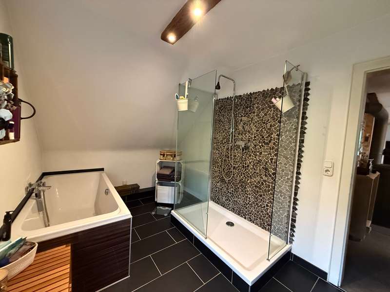 Spacious semi-detached house with large garden and versatile living space On a spacious plot of around 3,100 m², this well-kept two-family house with an additional vacation apartment offers a wide range of possible uses. The property was built in 1964 and offers plenty of space and flexibility with approx. 270 m² of living space in three separate residential units - an attractive offer for families, multi-generational living or a combination of living and working. The apartment in the main house could easily be combined into one large living unit. A corresponding staircase is available. The house is divided into a total of 11 rooms, including three bedrooms per residential unit as well as additional work and recreation rooms. Three daylight bathrooms are available, one of which was renovated in 2015 and meets modern requirements in terms of comfort and equipment. The two main apartments are in good, well-kept condition, while the separate vacation apartment is in need of recent renovation work and offers space for individual design ideas. The central residential unit is characterized by its spacious living and dining area, which offers a variety of uses. The kitchens are practically laid out and each has ample storage space. Friendly window fronts allow a pleasant amount of light into all rooms. Further highlights include three separate offices, which can be used for home offices or individual workspaces. The quality of the furnishings in the house corresponds to the "normal" standard. The outbuildings and outdoor facilities are also impressive: an approx. 180 m² hall allows flexible use as a workshop, hobby room or storage area, for example. There are two spacious garages and a smaller garage. They offer ample storage space for vehicles, bicycles or garden tools. The two existing driveways facilitate accessibility and increase convenience - ideal even if the living areas are used separately or for visitors. The spacious garden offers numerous opportunities for leisure activities, playing or relaxing. The extensive areas are also suitable for keeping animals or gardening ambitions. The location of the property combines privacy with good transport links; all the essential facilities for daily needs, schools and shopping facilities are within easy reach. The entire building is heated by an efficient gas central heating system, which was renewed in 2005. This means that a modern, economical heating system is already in place. Overall, the property conveys a well-kept living environment with versatile usage options and a solid building structure. This house combines a generous room layout with practical ancillary areas on a spacious plot. The combination of living space, hall, garages and offices as well as the flexible room layout make this property interesting for larger families, multi-generational living as well as for businesses. We are happy to provide further information and look forward to hearing from you to arrange a viewing. Ms. Keller from Poll Finance will be happy to assist you with your financing.