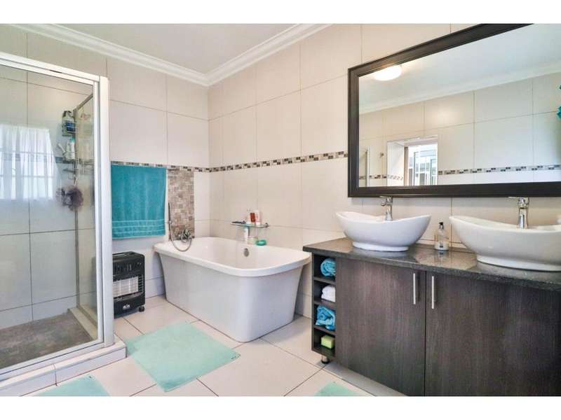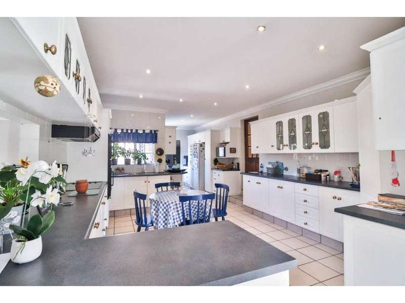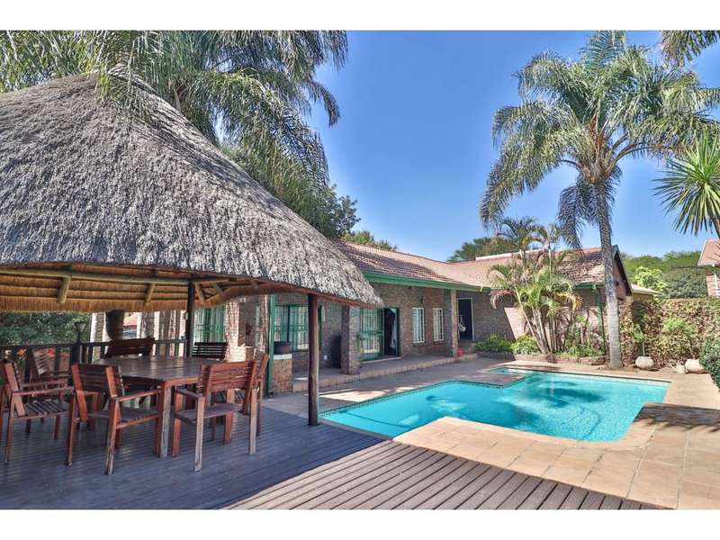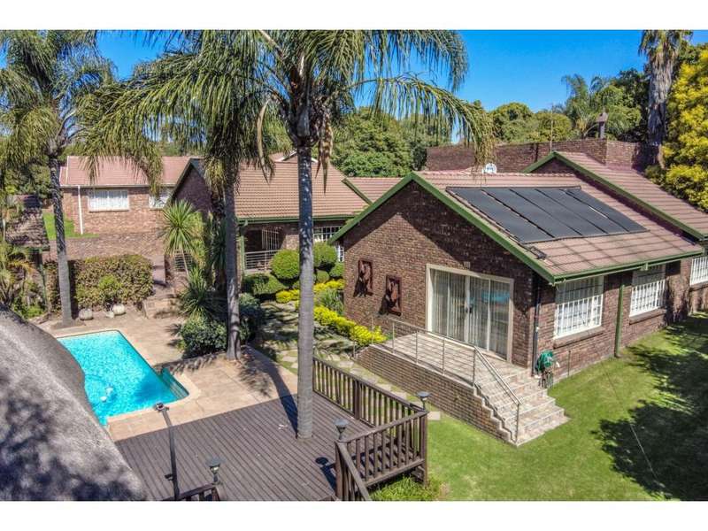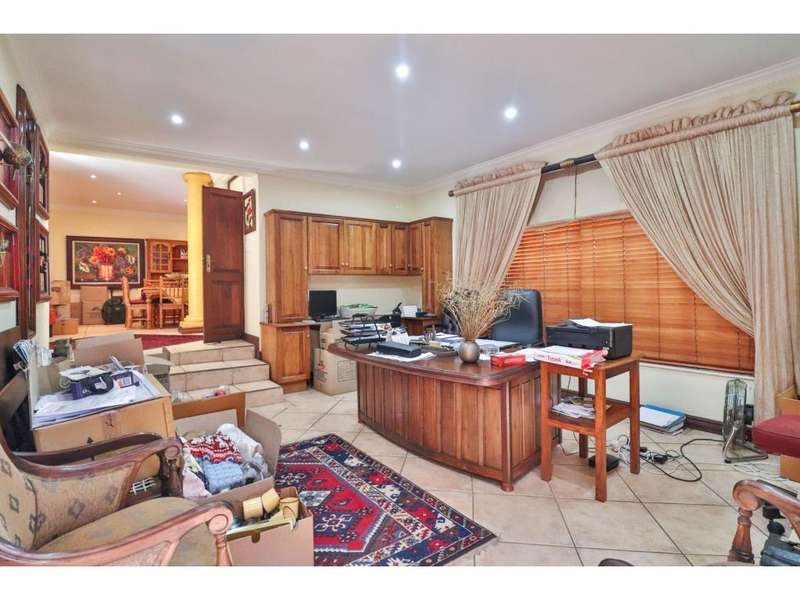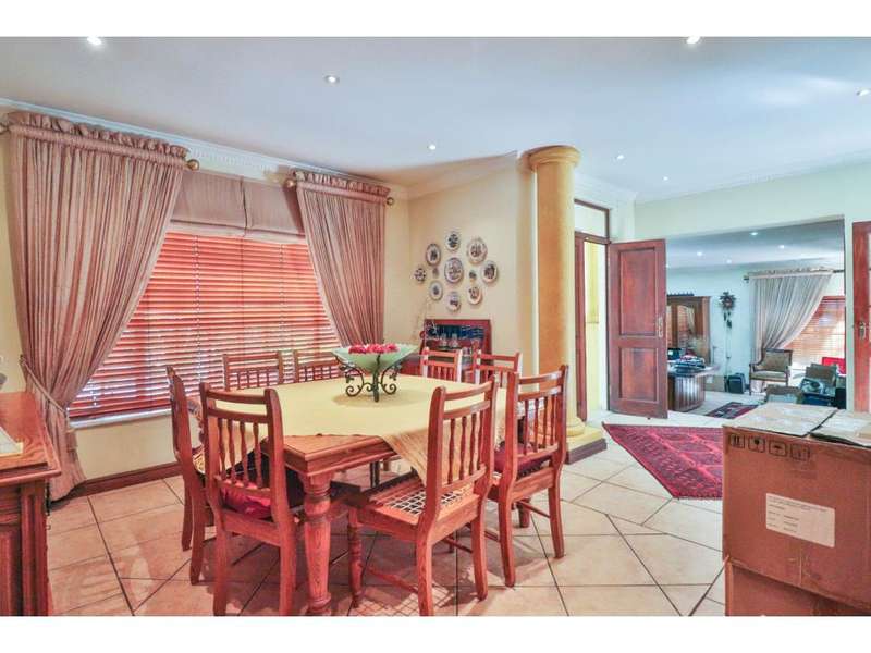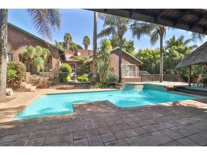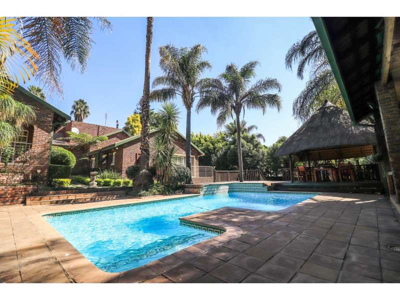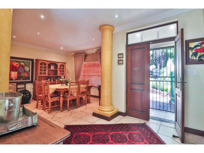 Nestled within the embrace of a well-established suburban enclave, this magnificent family home boasts an impressive 2263 square meter plot of land. Elegance and comfort seamlessly intertwine in this abode, exuding a perfect blend of homeliness and sophistication. The moment you approach this dwelling, you're greeted by the breathtaking beauty of its carefully tended garden. At the heart of this botanical masterpiece lies a majestic fountain, large enough to serve as a splendid backdrop for weddings and other grand celebrations. Stepping through the time-honored wooden doors, you are welcomed into a formal yet cozy dining area, setting the stage for memorable family gatherings and intimate dinners. Adjacent to this, you'll find an expansive study, a room characterized by an abundance of refined charm and class. Descend the stairs, and you'll discover a pristine all-white kitchen, complete with a small laundry area (though the primary laundry facilities are located outside). This kitchen is undoubtedly the heart of the home, inviting families to come together, share laughter, and create culinary delights. Continuing your exploration, you'll find a family room featuring a welcoming fireplace?Çöa perfect sanctuary on chilly days. Additionally, there's a smaller lounge, offering versatility in living space usage. In the heart of it all, a doorway beckons you to the outside, where a stunning garden setting awaits. To one side of this property, a one-bedroom flat beckons, equipped with its own bathroom, lounge, and kitchen, making it an ideal space for guests or extended family members. The main bedroom is a true retreat, offering a seamless connection to a patio that presents sweeping views of the meticulously landscaped garden. Practicality meets luxury as this home enjoys a central location, offering easy access to nearby schools, shopping centers, and major transportation routes. The property further boasts four bedrooms, three bathrooms, two en-suites, a dining room, and an impressive five garages with automated doors. You'll also discover two lounges, an entertainment area complete with a bar and a jacuzzi, making it a haven for social gatherings. Pet lovers will find this property accommodating, as it allows for pets. A shimmering pool, a lapa for outdoor entertainment, staff quarters, and a kitchen equipped with a laundry and pantry enhance the appeal of this home. Modern comforts such as air conditioning and an alarm system ensure peace of mind in this tranquil oasis. In summary, this home is a captivating fusion of charm, sophistication, and family-centered living, offering a wealth of amenities that cater to every desire. It stands as a testament to the art of elegant living within a well-established suburb.