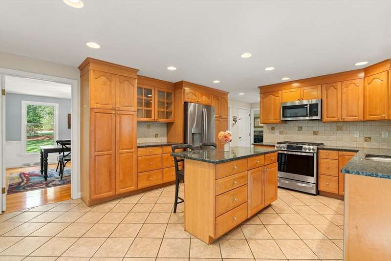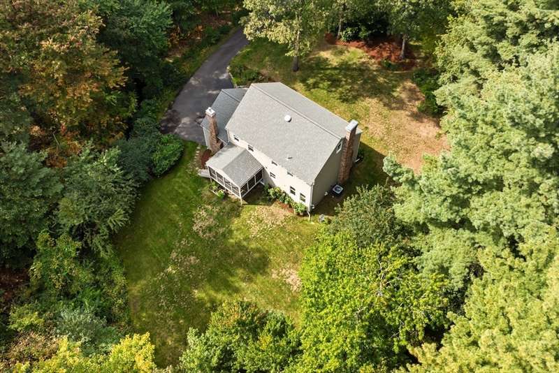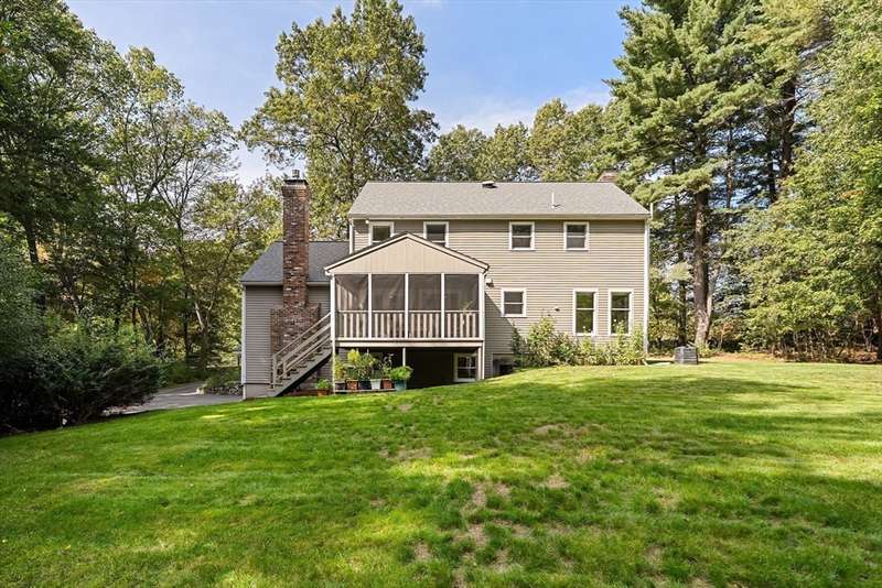 Tucked away in a private cul-de-sac neighborhood, this move-in ready versatile 4+ bed Colonial blends comfort & possibility. A welcoming stone path leads across the cleared grounds. Inside find a thoughtful layout: formal dining room flows to kitchen with granite counters/stainless appliances & spacious family room with cathedral beam ceilings and gas fireplace. Dedicated office provides the ideal work-from-home solution, while the elegant living room sets the stage for memorable gatherings. The highlight is the serene screened-in porch perfect for morning coffee or breezy dinners overlooking the private backyard. Upstairs are 4 generously sized bedrooms & 2 full baths. The walk-up attic offers expansion potential for a luxe primary suite, creative studio, or playroom. The finished basement provides flexibility for a game room or additional bedroom. With timeless architecture, abundant living space & room to grow, this home is a true New England treasure ready for its next chapter.