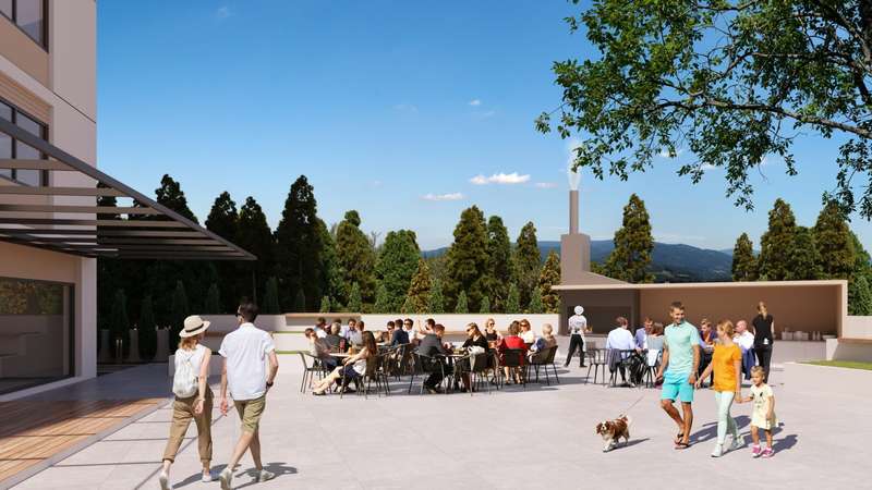 The comprehensive project with 4 blocks and 336 apartments on 16.434 sqm. The project also includes a 56-room hotel. Residents can benefit from the facilities of the hotel at a discount. In addition, the project has an outdoor swimming pool, aquapark, Turkish bath, sauna, gym, karaoke room, barbecue area, camellias, digital game room, indoor-outdoor parking area, on-site walking paths, playground, generator, elevator, 24/7 security, and security cameras.