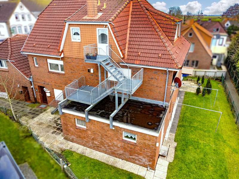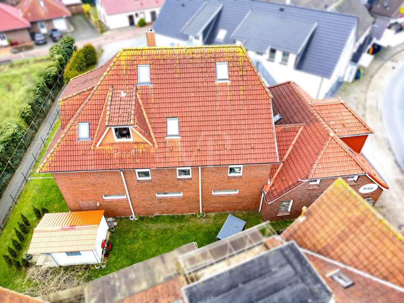 This property represents an attractive investment opportunity in a sought-after tourist region of northern Germany. The residential and commercial building, built around 1900, is centrally located in Carolinensiel and offers both commercial and residential units in a highly frequented location. Due to the high visitor frequency and the stable demand for rental space, the property offers attractive development opportunities. The building comprises a total area of approx. 488 m², divided into a commercial space of approx. 230 m² on the first floor with a wide shop window front and four residential units totaling approx. 258 m². The commercial unit is let on a long-term lease with a current net cold rent of EUR 1,750 per month. The commercial lease runs until 12/2026. The residential units vary in size and furnishings: - Apartment 1 (ground floor): approx. 55 m², 1 room, kitchen, bathroom, rent: 340,- Euro NKM - Apartment 2 (above commercial space): approx. 120 m², 4 rooms, kitchen, bathroom, rent: 620,- Euro NKM, bathroom renovated in 2025, new doors, new floor, renovation work in 2024 - Apartment 3 (attic): approx. 40 m², 1 room, kitchen, bathroom, rent: 295,- Euro NKM - Apartment 4 (attic): approx. 43 m², 1 room, kitchen, bathroom, rent: 300,- Euro NKM The current rental income amounts to 3,305 euros per month or 39,660 euros per year. Carolinensiel is a district of the town of Wittmund in East Frisia and benefits from strong tourist demand. Its location on the North Sea, the museum harbor and numerous events ensure a steady stream of visitors. The central micro-location of the property in Kirchstraße offers excellent visibility and frequent public traffic, which is particularly advantageous for businesses in the retail and gastronomy sectors. The local real estate market is characterized by high demand for vacation apartments, which speaks for long-term stability. The property has been regularly renovated and modernized. In 2020, two gas condensing boilers with 20 kW each were installed for the residential units and a 40 kW boiler for the commercial unit. All apartments have instantaneous water heaters for hot water supply. In addition, extensive refurbishment was carried out in 1993/1994, including insulating the roof truss with 180 mm glass wool, replacing the windows (double-glazed, built in 1993), re-roofing and renewing the brick façade. The only area in need of modernization is the electrical installation, as there are currently no RCDs. This property offers promising development prospects. The combination of long-term rented commercial space, attractive residential space and tourist demand represents a future-proof investment. Due to the high demand from tourists, it is possible to further adjust the rental prices and optimize the yield through modernization measures. In addition, a switch to vacation rentals could generate higher income. On the other hand, possible seasonal fluctuations and the need to renovate some residential units must be taken into account. The property does not have its own parking spaces; parking bays are available for commercial operations directly in front of the retail space. This property offers promising development prospects. The combination of long-term leased commercial space, attractive residential space and tourist demand represents a future-proof investment. We will be happy to provide you with further information or arrange a viewing at any time. Financing options can be discussed via VON POLL Finance. The energy certificate is currently in preparation.