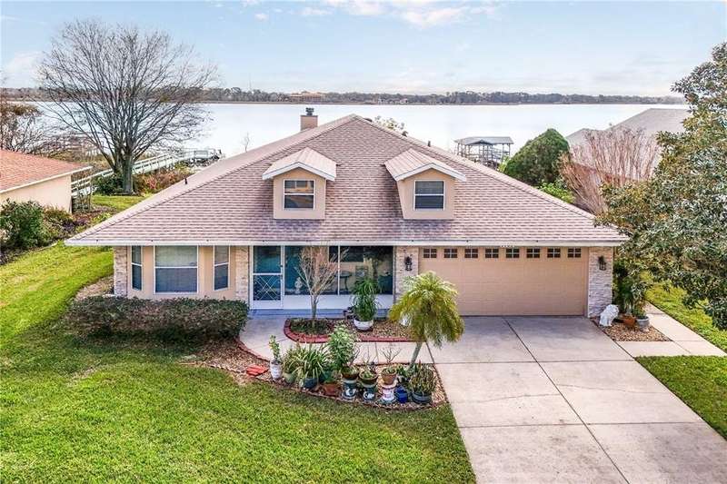 LAKEFRONT LUXURY WITH PRIVATE DOCK IN LAKE SAUNDERS POINTE- Discover the perfect blend of elegance and tranquility in this stunning 3-bedroom, 2-bathroom home with a private den, nestled in the highly sought-after Lake Saunders Pointe community. Offering gorgeous lake view and a long private dock this home is a true waterfront retreat. Step inside to find a spacious, light-filled living area featuring French doors that open onto the screened lanai, inviting in the gentle lake breeze. A wood-burning fireplace creates a cozy ambiance, perfect for cooler evenings. The well-appointed kitchen is an entertaining dream, boasting granite countertops, ample cabinetry, and a breakfast bar, making it the heart of the home. The primary suite is a sanctuary with a jacuzzi tub, separate tiled shower, dual sinks, and a dedicated makeup vanity. A private den with lanai access offers flexibility as a home office, media room, or even a fourth bedroom. Outside, follow the long dock that stretches over the water, leading to the ultimate lakeside retreat???perfect for boating, fishing, or simply soaking in the stunning sunset views. Located just minutes from downtown Tavares and Mount Dora, this home is in the heart of Florida's Golden Triangle, offering easy access to restaurants, shopping, and entertainment. The low HOA fee includes access to the community clubhouse, pool, shuffleboard, and private boat ramp. Don't miss this rare opportunity to own a lakefront paradise in a vibrant yet peaceful neighborhood. Call today for your private tour!