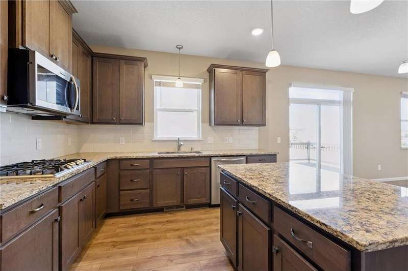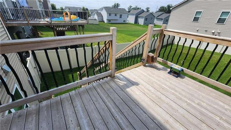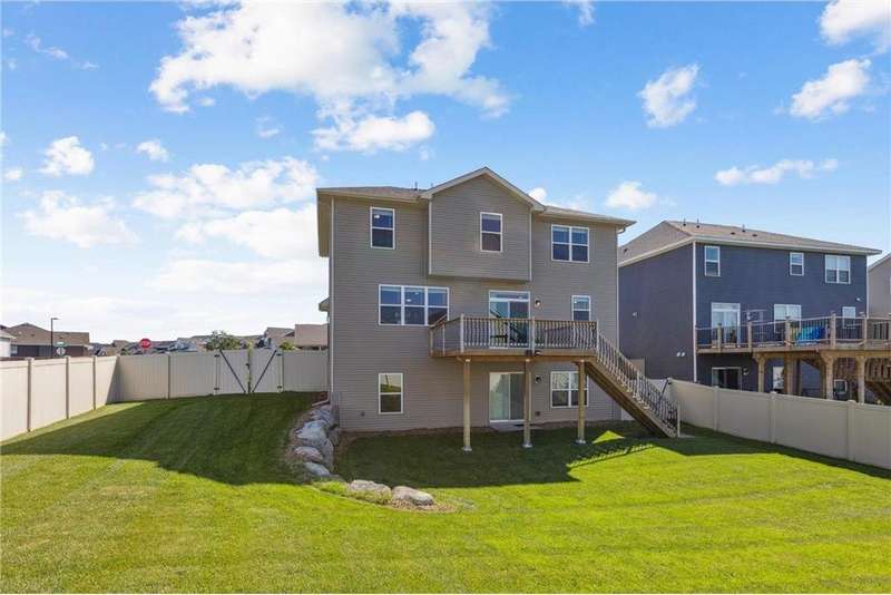Welcome to this stunning modified 2-story in Miske Meadows, built in 2019! This home offers 4 bedrooms on one level plus upper laundry, a spacious owner’s suite with soaking tub and walk-in closet, and a main floor office. The open kitchen features stainless appliances and a walk-in pantry, flowing into the living room with gas fireplace and deck access. Enjoy a finished walkout family room with 2nd fireplace, fenced corner lot, welcoming porch, and 3-car garage—designed for both comfort and convenience.