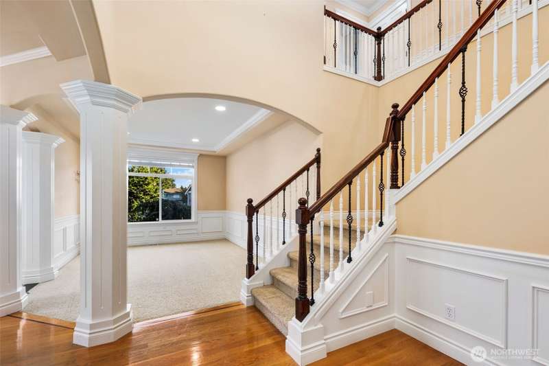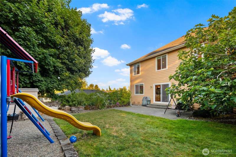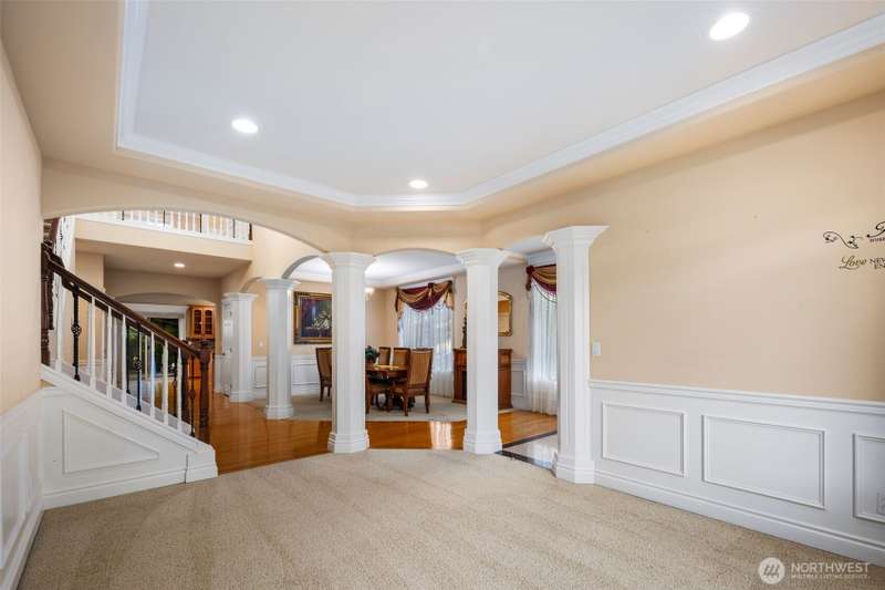 Crafted with elegance and function, this 3,320 sq ft 4 bed, 3.5 bath home in Kent offers refined living just minutes from Lake Meridian shopping centers and major routes. Soaring vaulted ceilings and custom columns create a dramatic first impression in the light-filled living room. The gourmet kitchen flows seamlessly into the dining and family areas, perfect for gatherings. A spacious primary suite features a spa-like bath and walk-in closet. Refresh in the fully landscaped backyard and enjoy the fruit bearing trees and plants. Enjoy a built-in vacuum system, generous bedrooms, and a huge tandem garage with room for 3+ cars, storage, or a workshop, 240V for Tesla or EV. Custom finishes throughout affordable yet luxurious home.